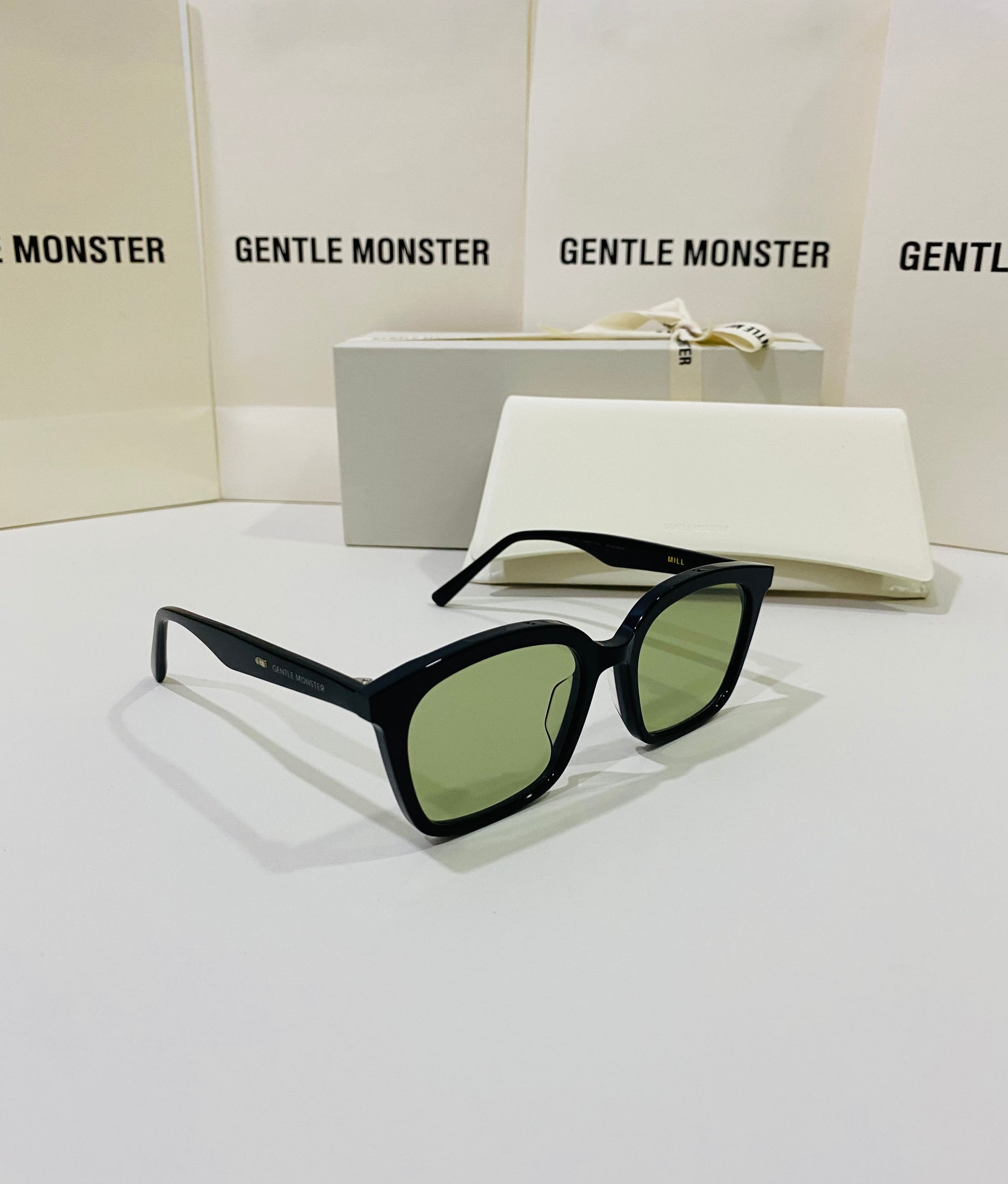 Mill 01(K) is a square silhouetted black acetate frame, fitted with 99.9% UV protected khaki lenses. This sophisticated and versatile design is distinguished by the rounded edges of the corners and metal details on the temples.
