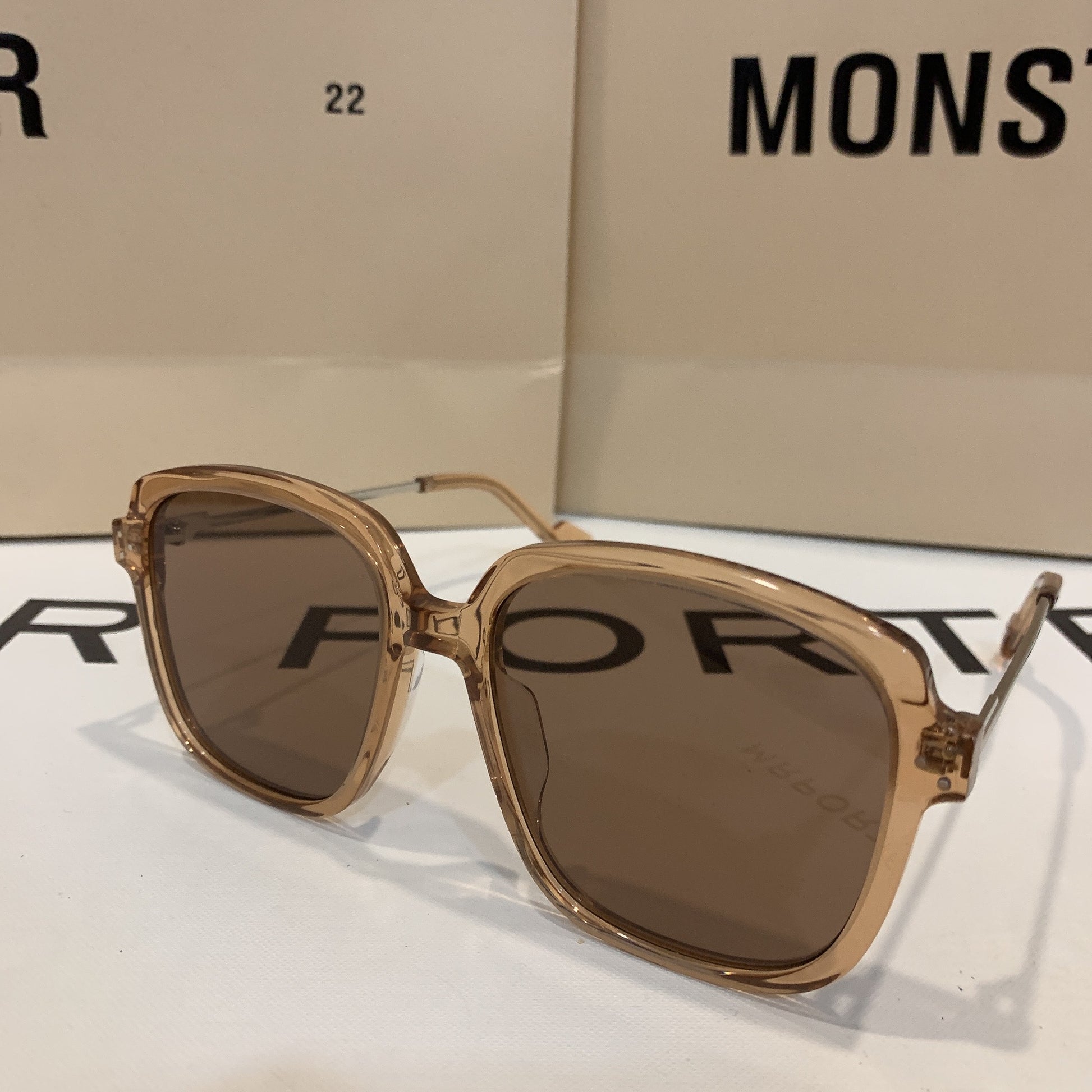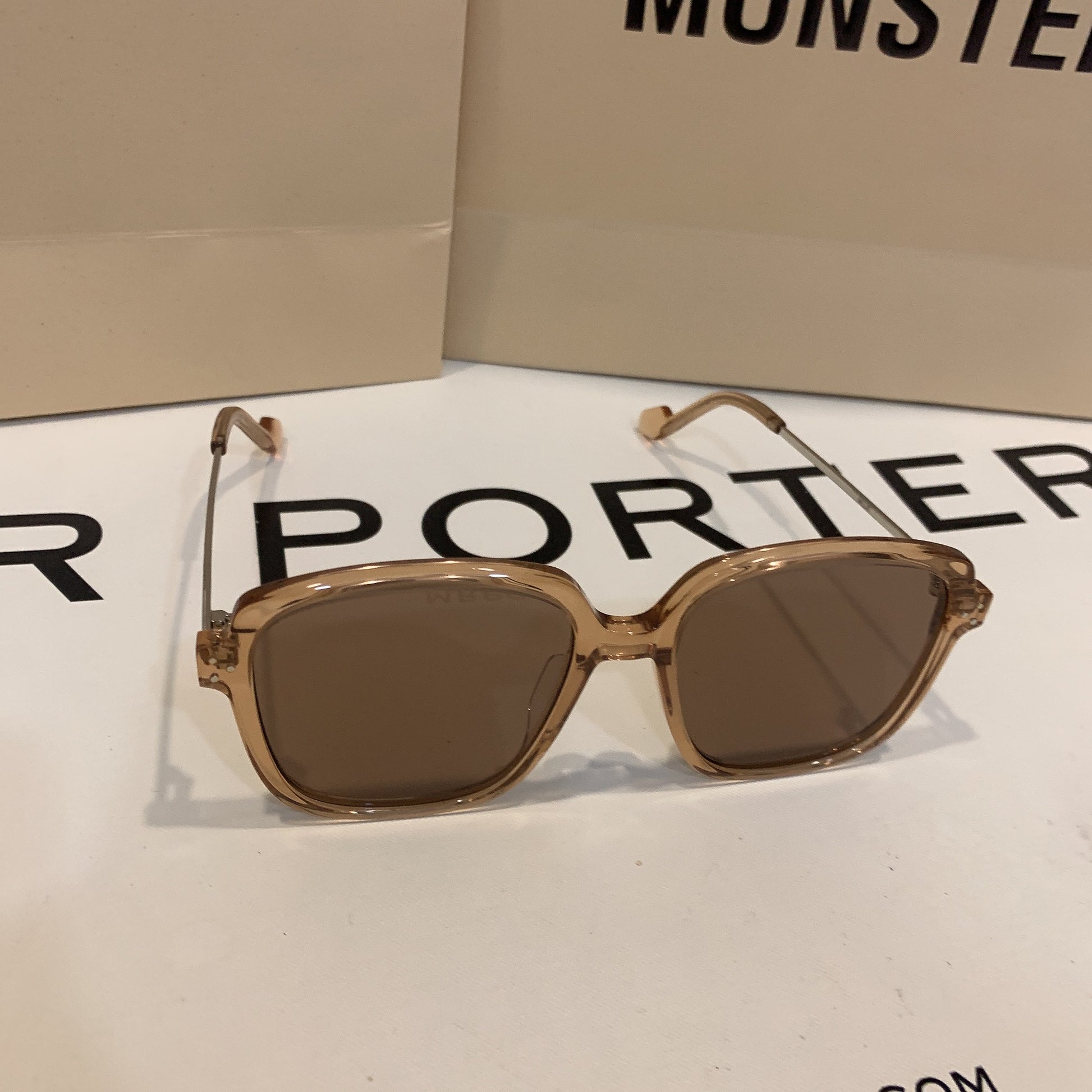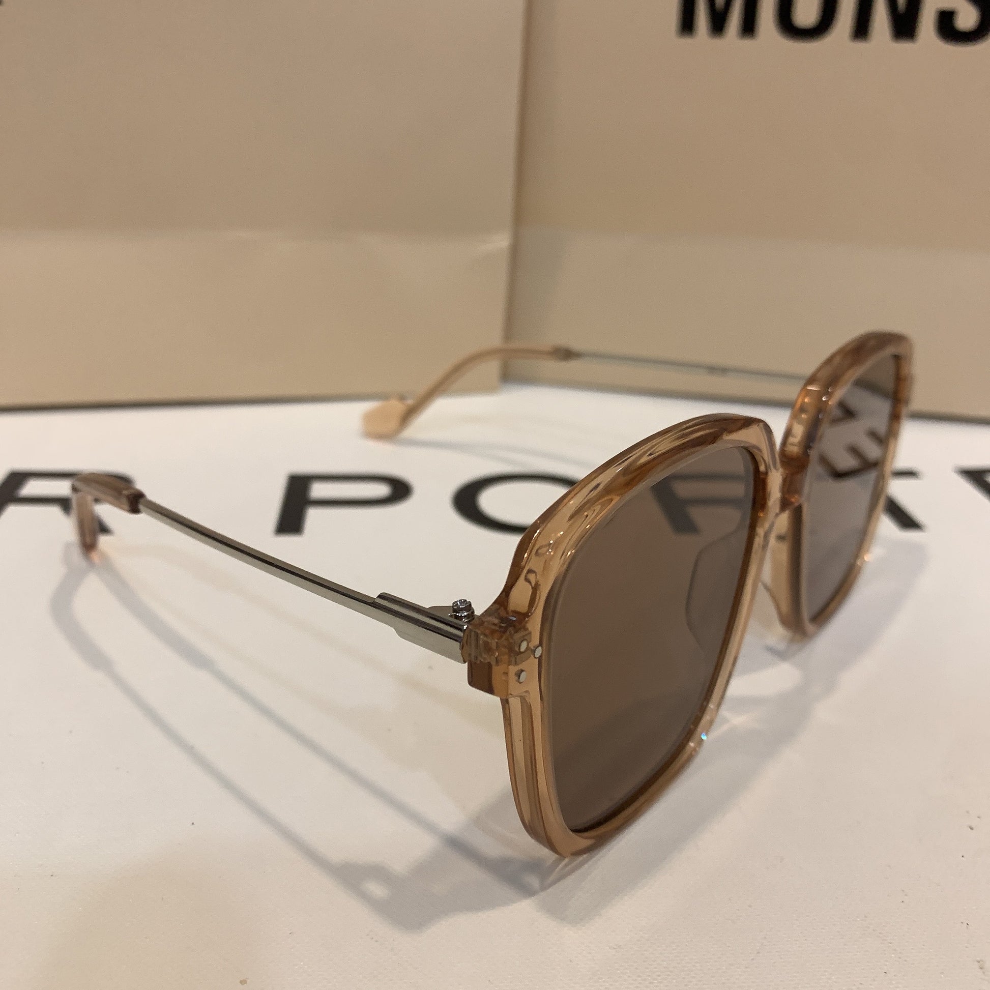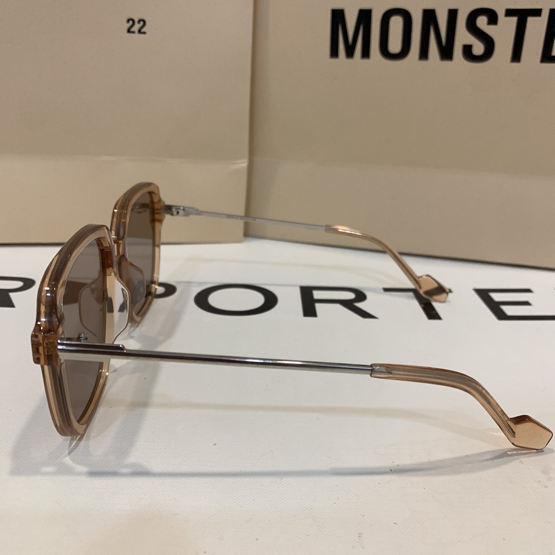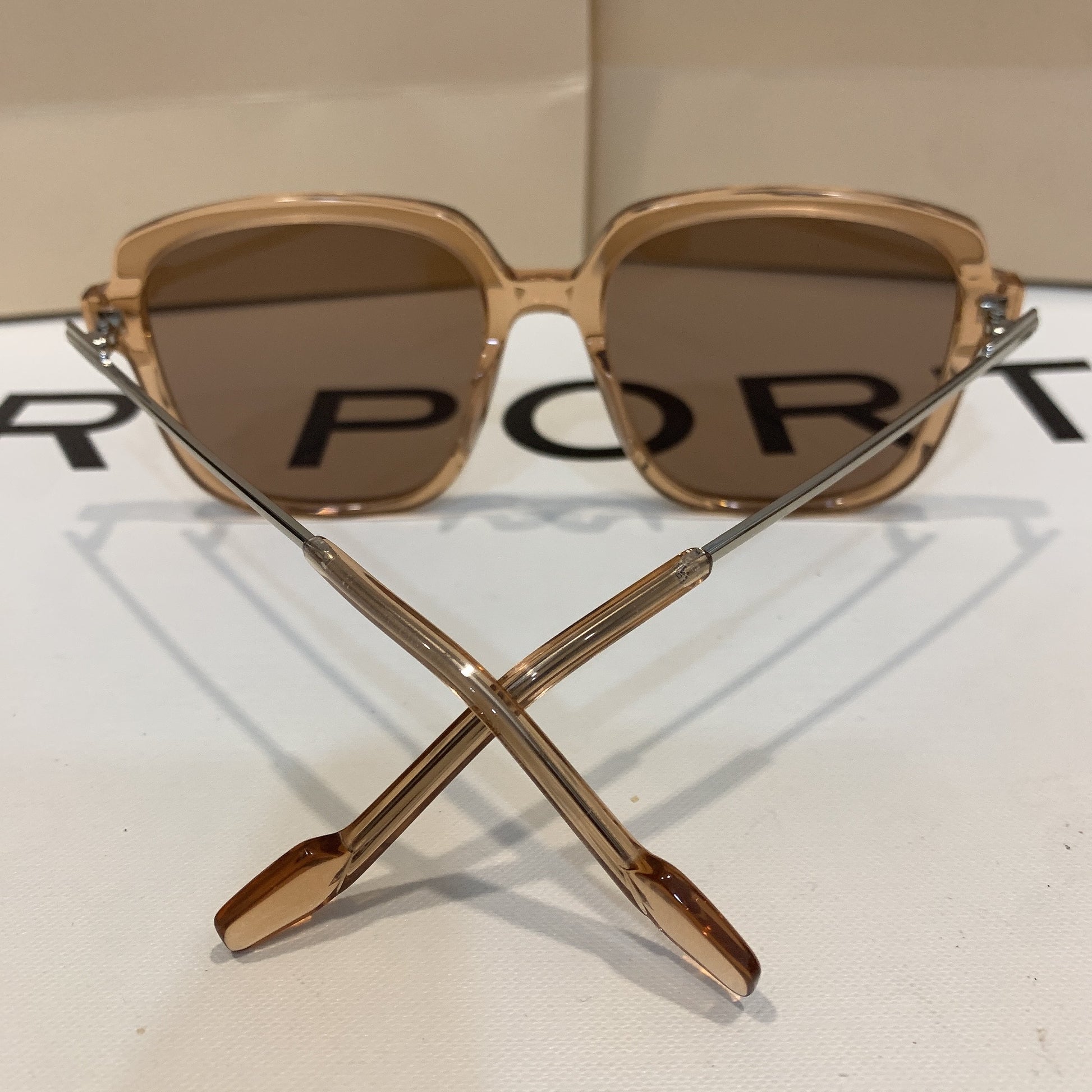 Millie BRC1 is a clear brown frame crafted of acetate and metal. The endpiece is accentuated with three circular studs, complemented by uniquely shaped temple tips and 99.9% UV protected brown lenses.