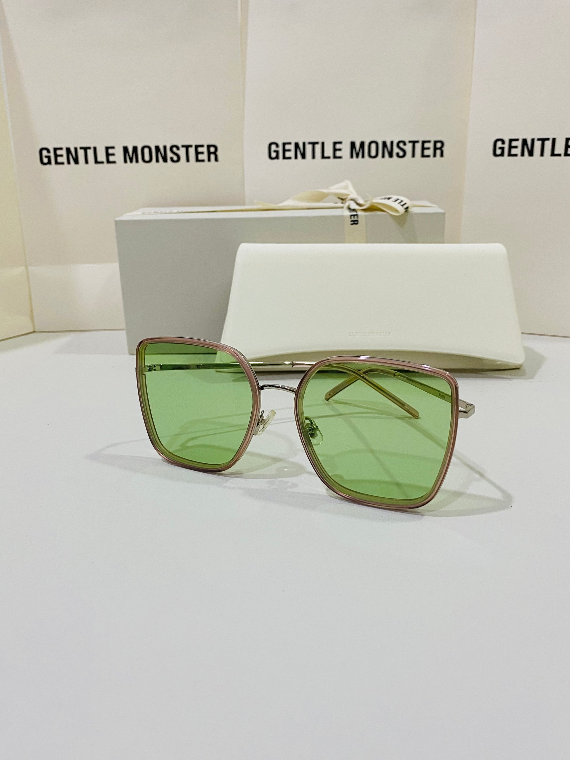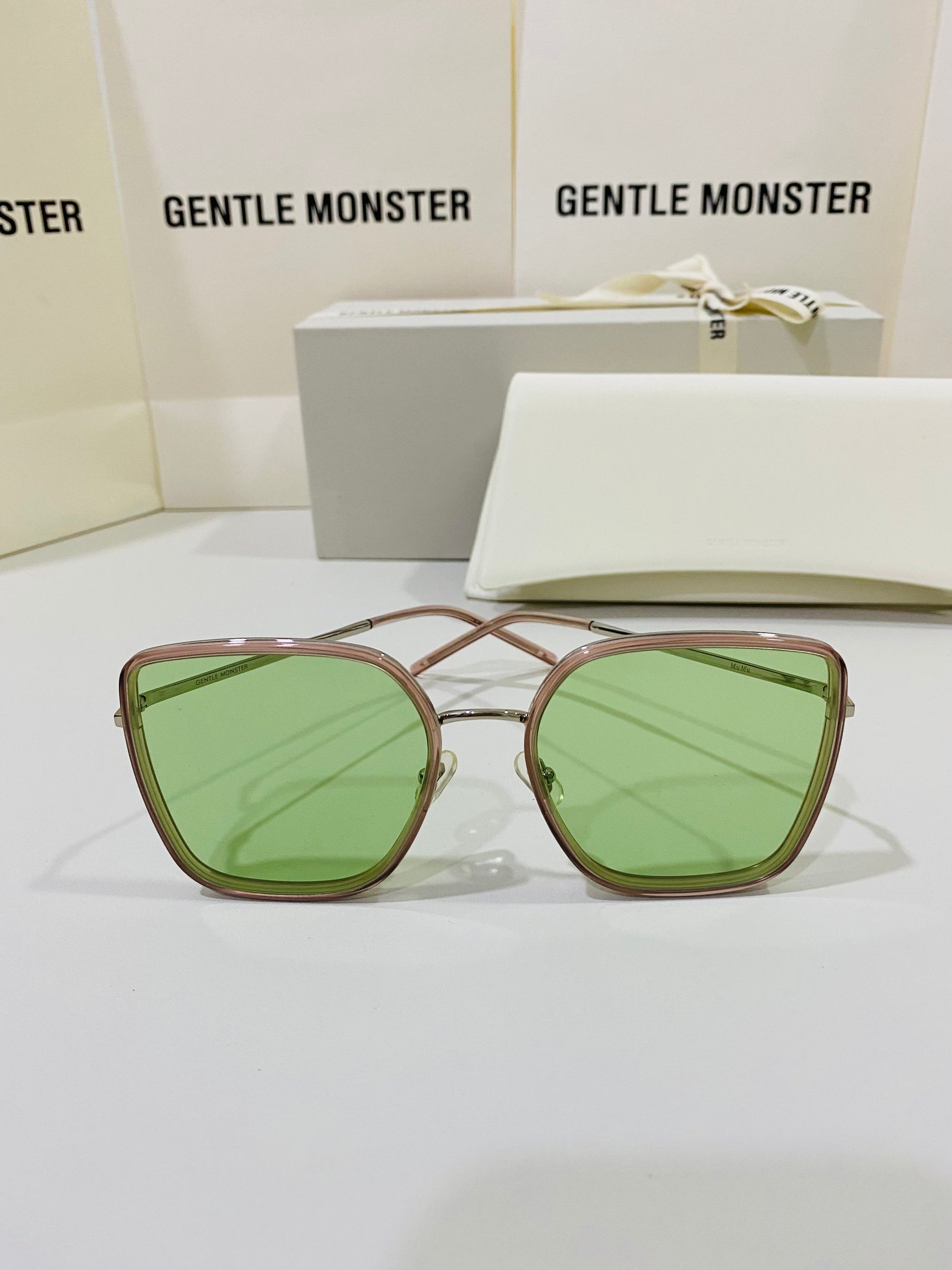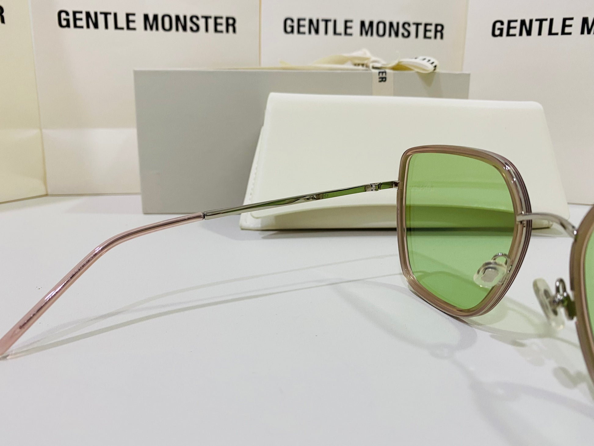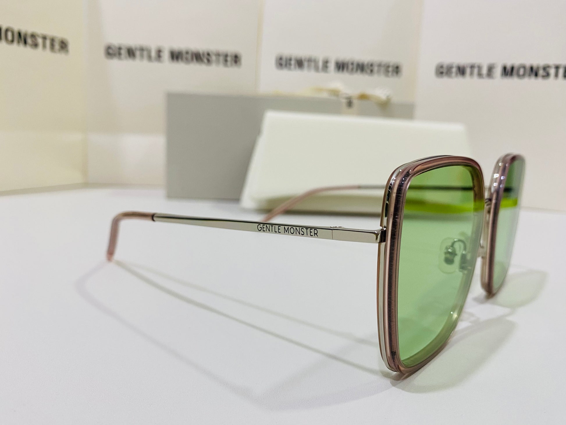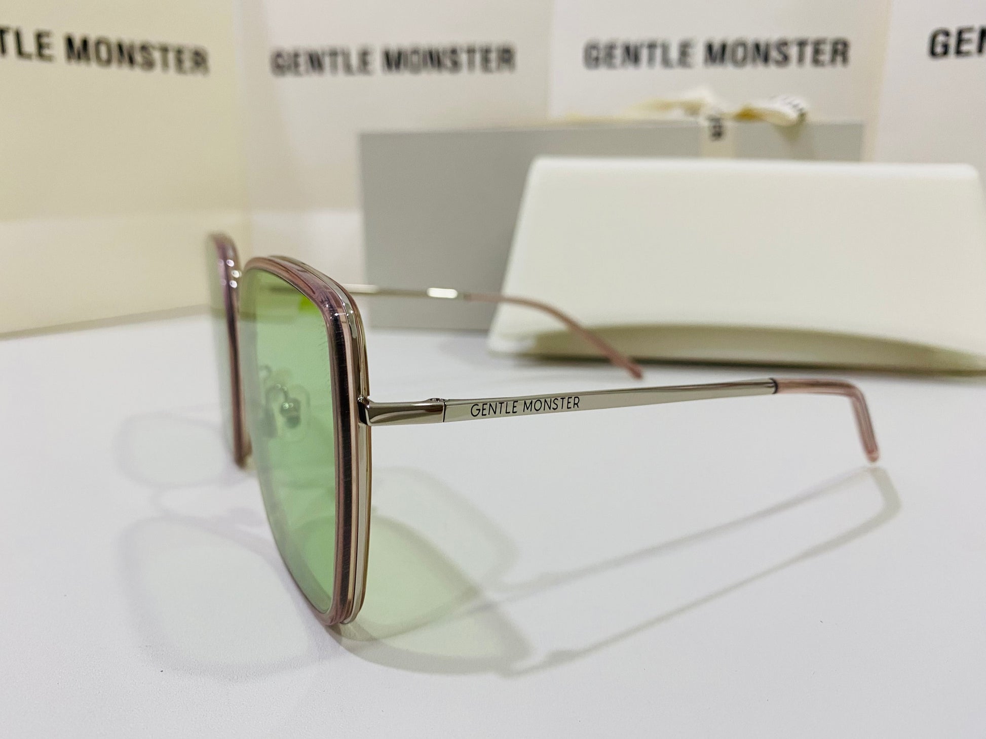 Introducing Mumu PC1, an acetate and metal combination Flatba frame. The oversized pentagon shaped lenses set this frame apart from the rest of the 2020 Eyewear collection. The 99.9% UV protected green lenses and silver metal temples engraved with Gentle Monster complete this frame.