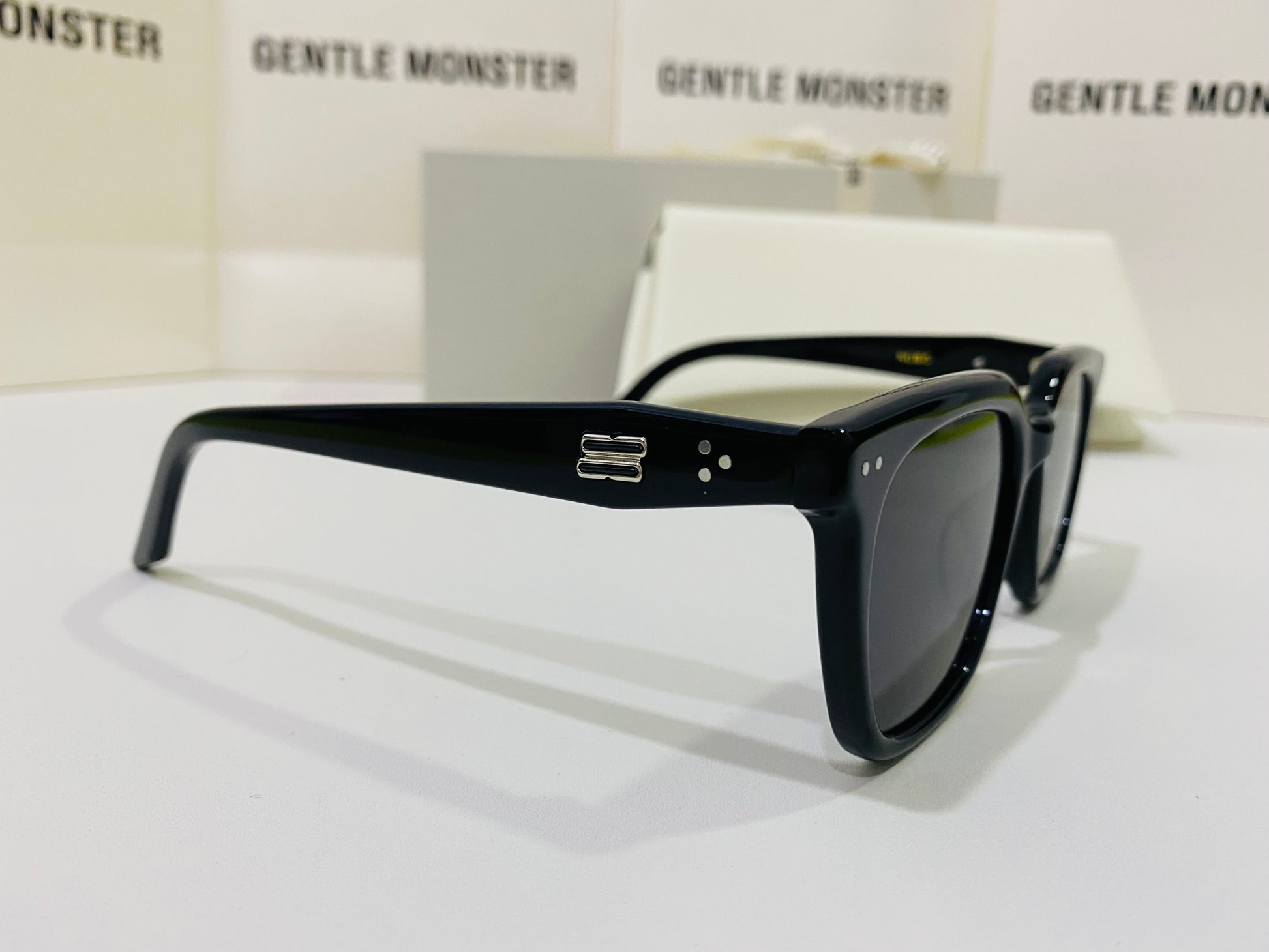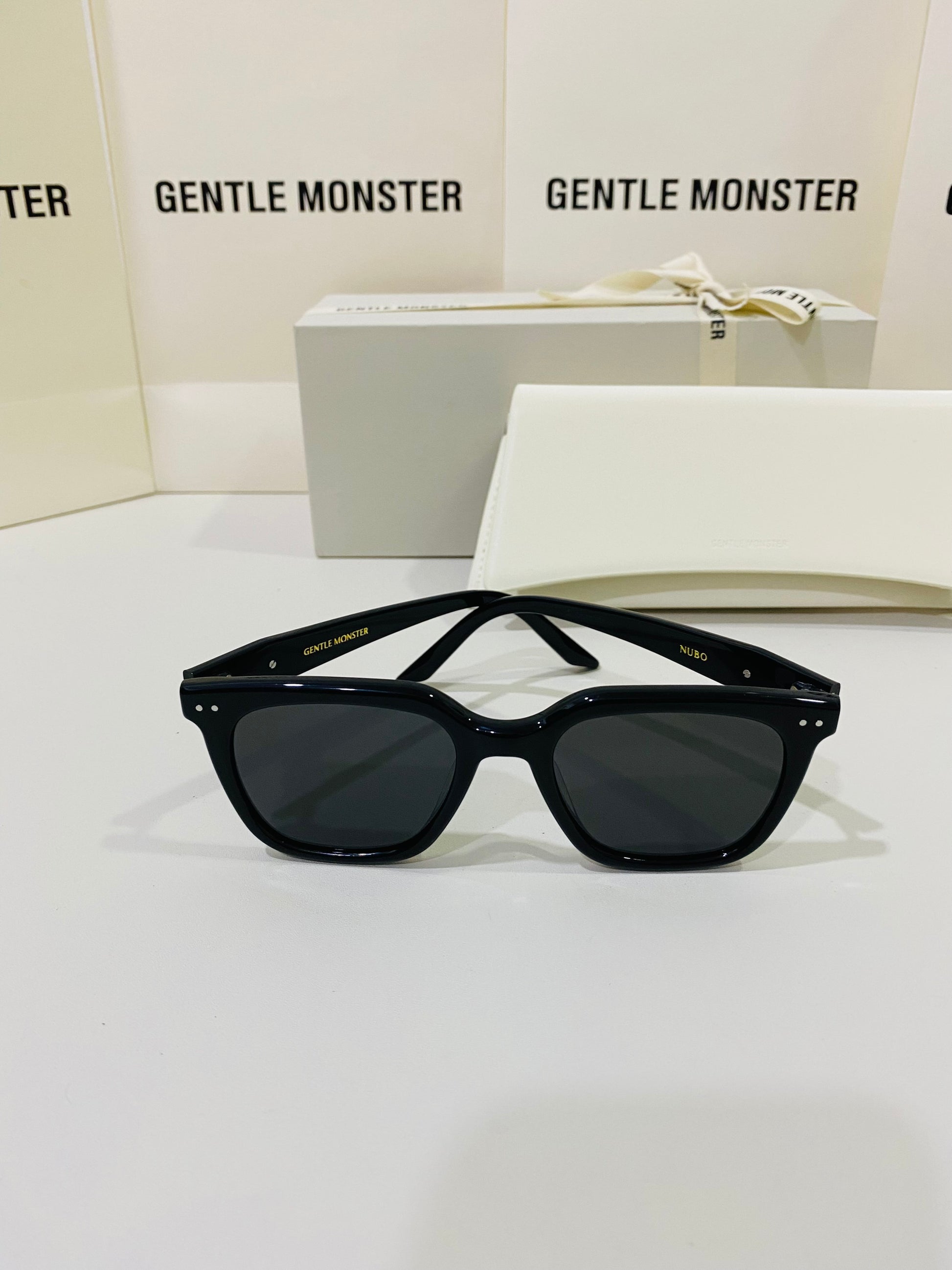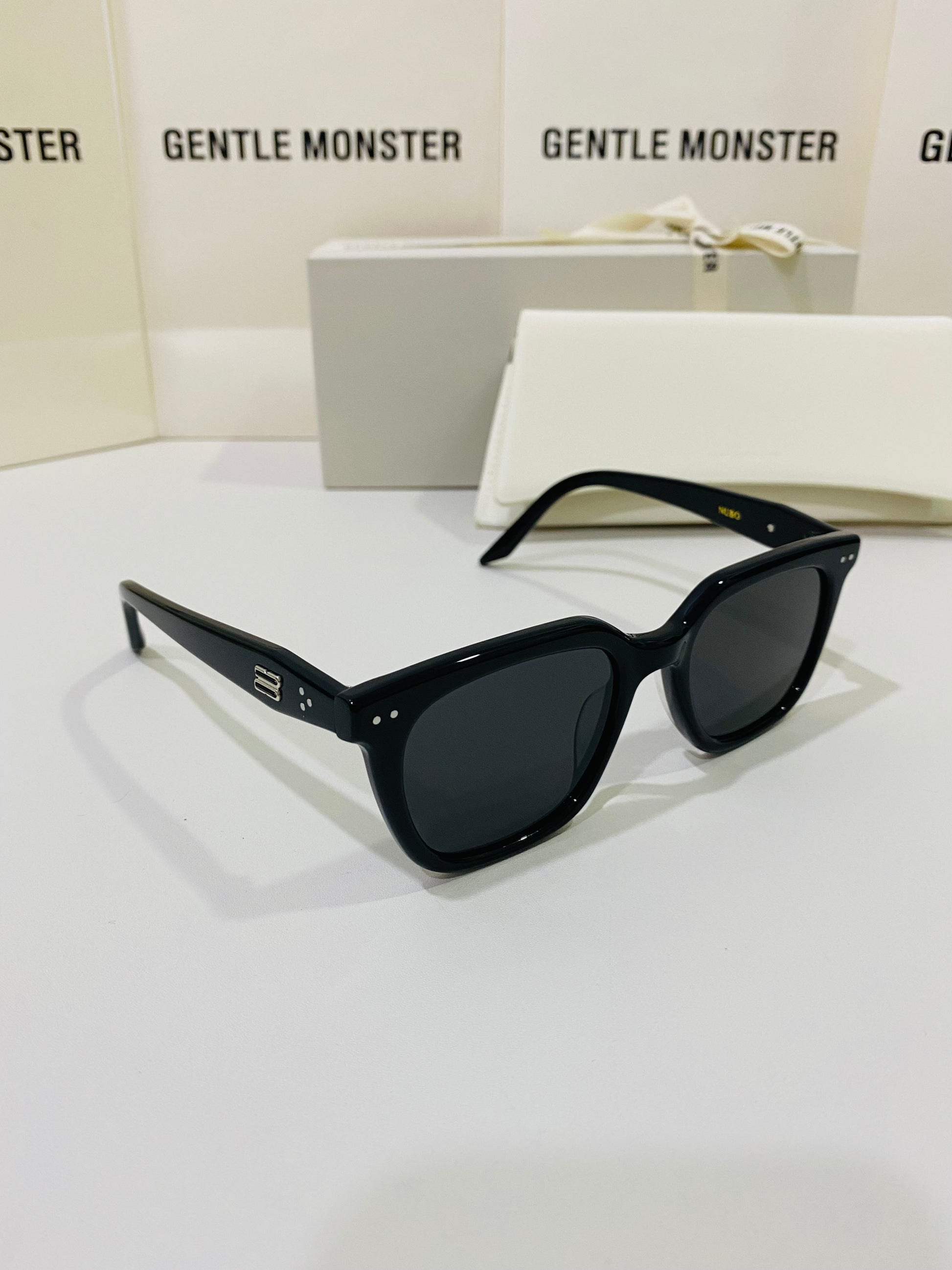 Discover the Nubo 01 sunglasses from Gentle Monster’s 2024 Collection. This piece features a well-balanced, structured square shape alongside a simple black frame, and the iconic metal detail on the temples adds a precious touch.