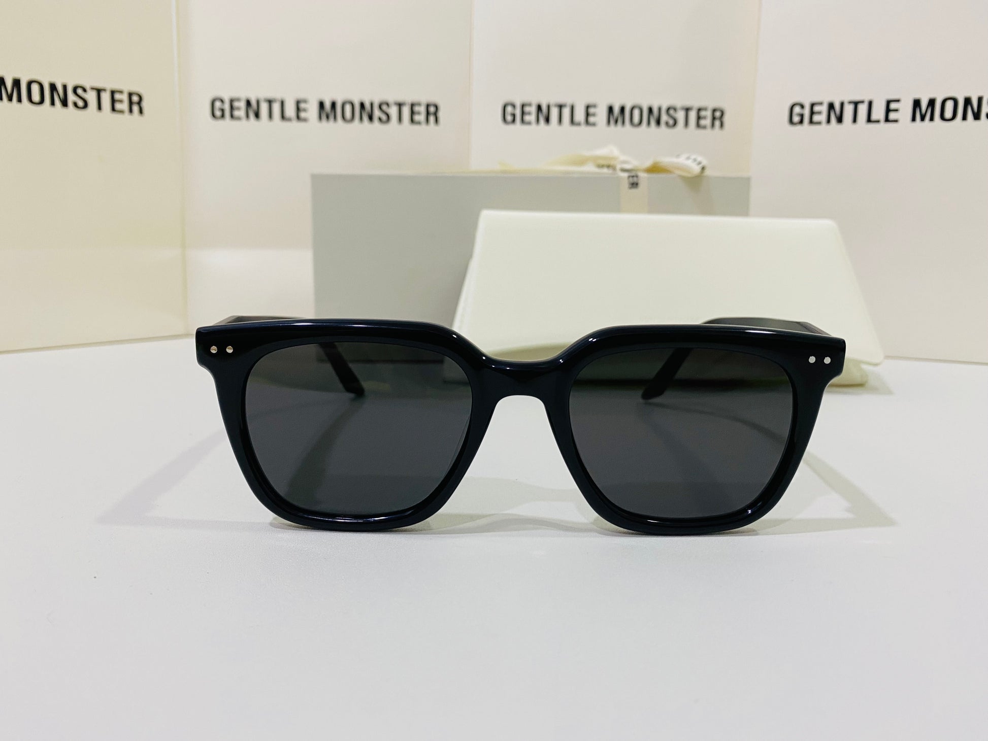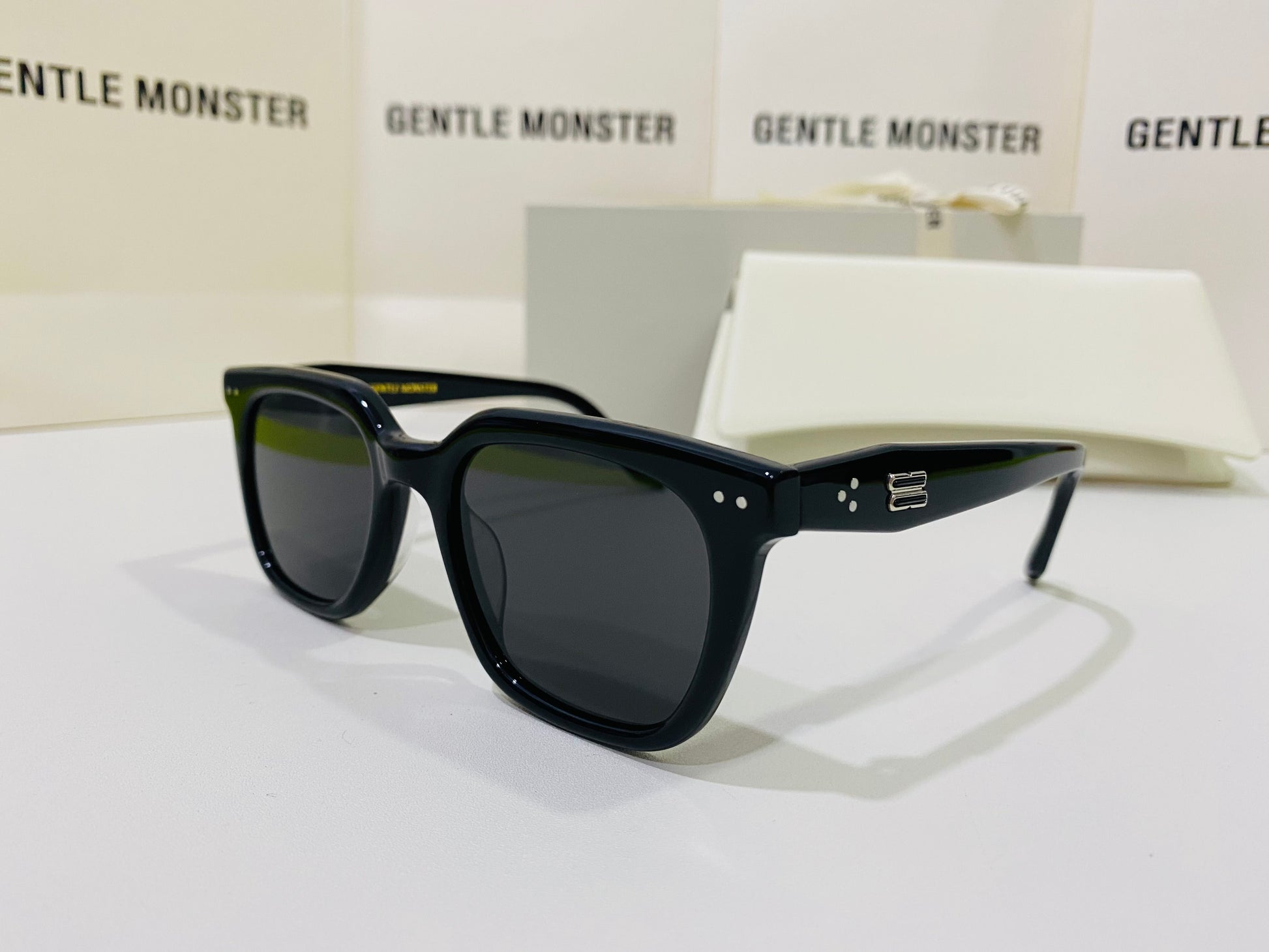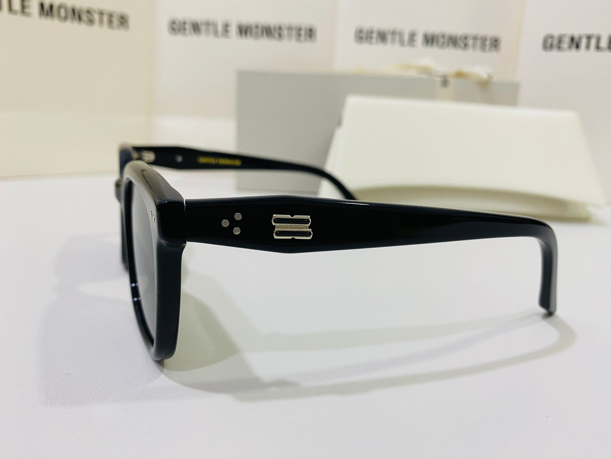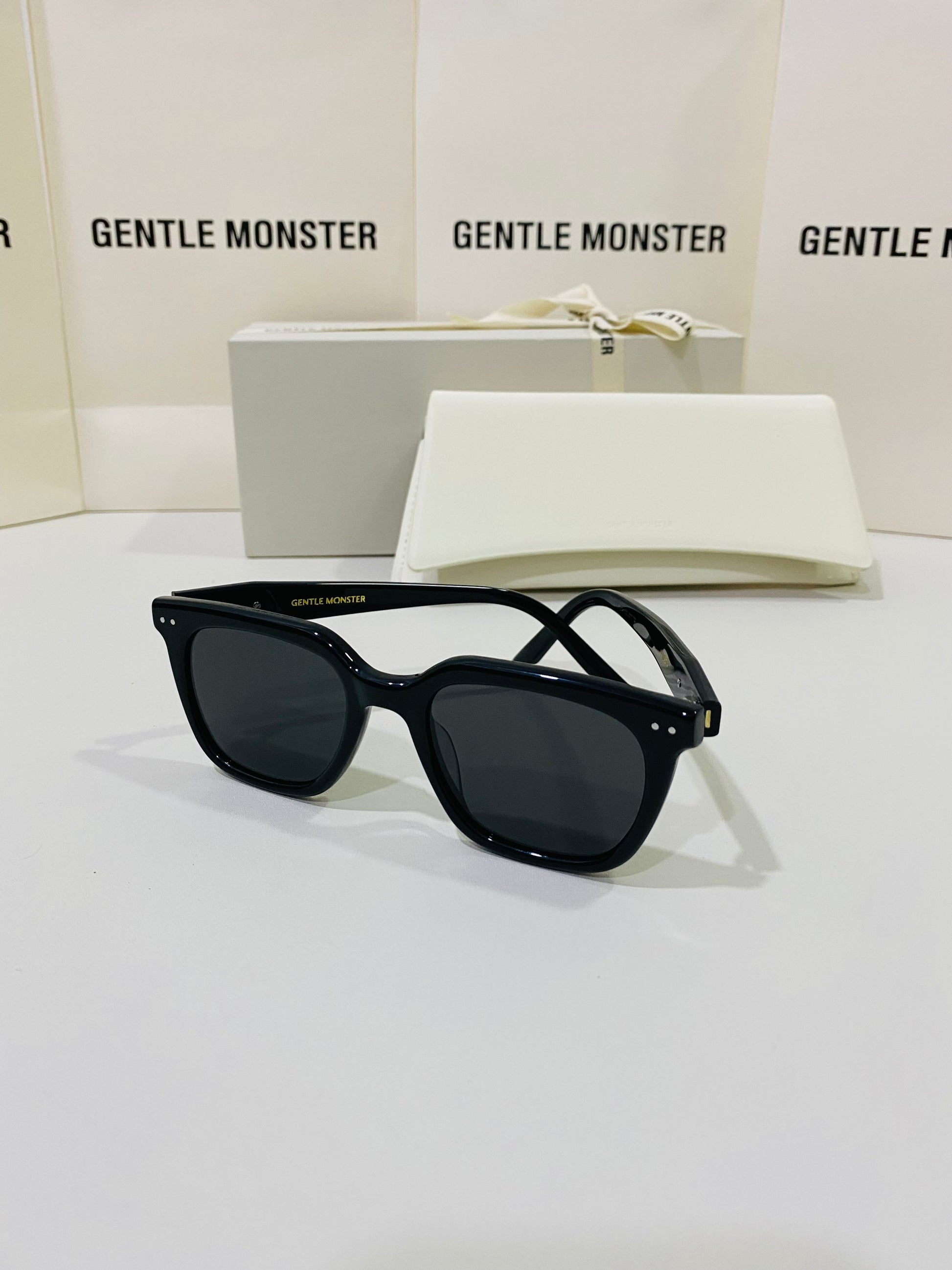 Discover the Nubo 01 sunglasses from Gentle Monster’s 2024 Collection. This piece features a well-balanced, structured square shape alongside a simple black frame, and the iconic metal detail on the temples adds a precious touch.