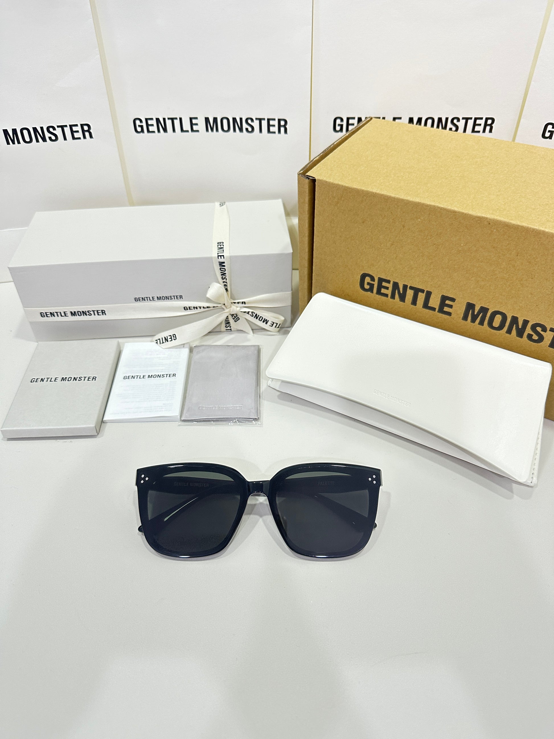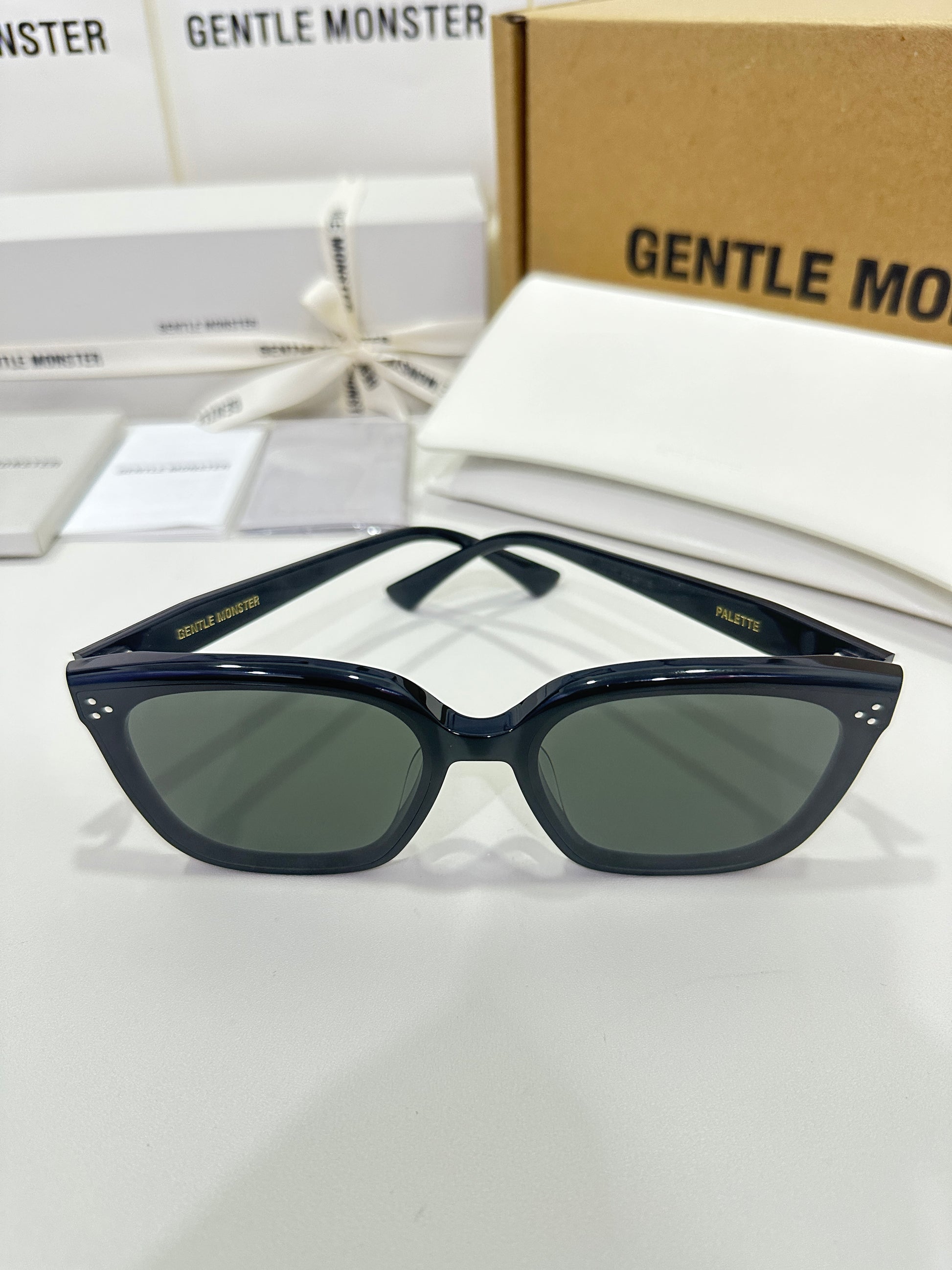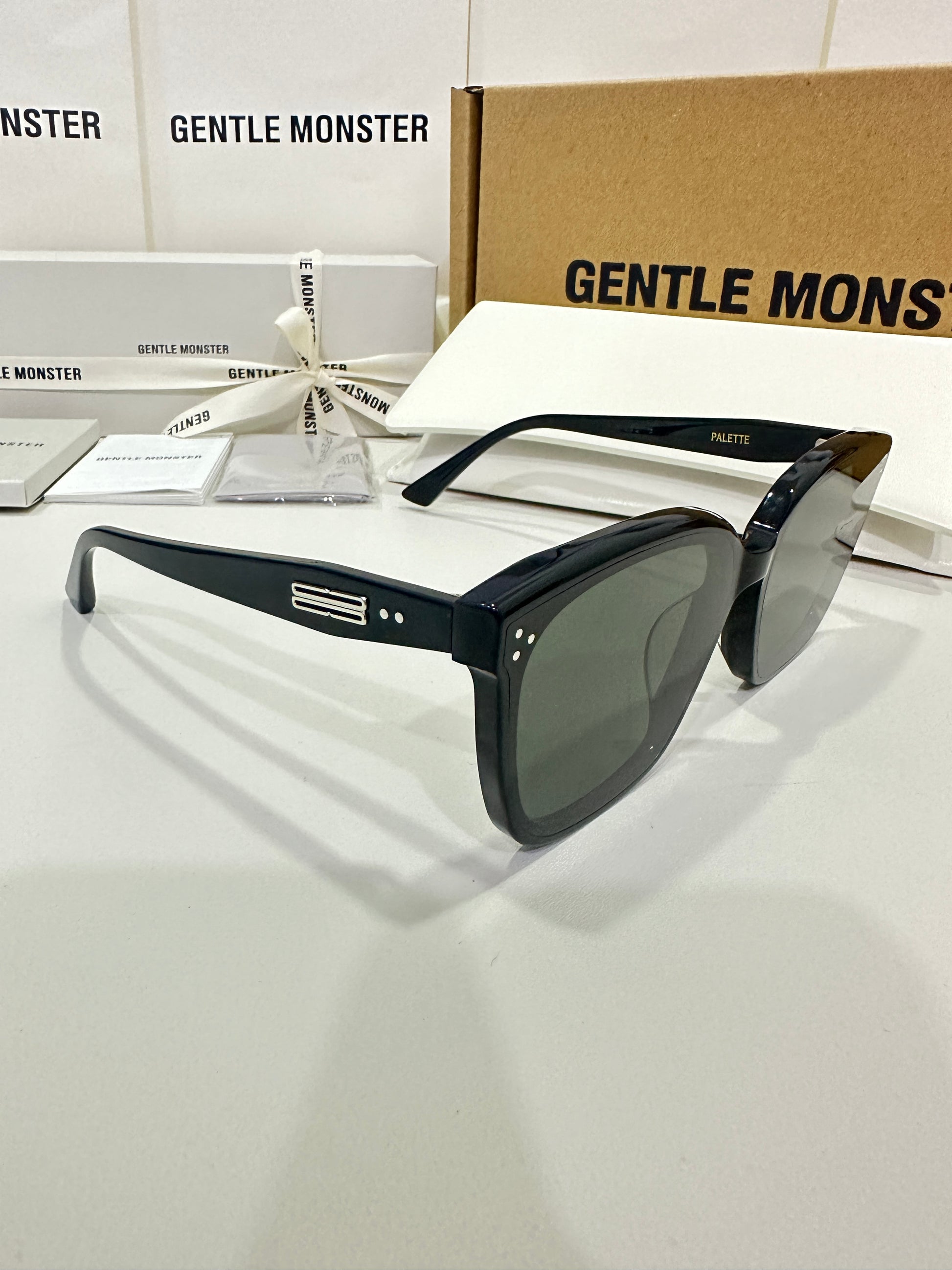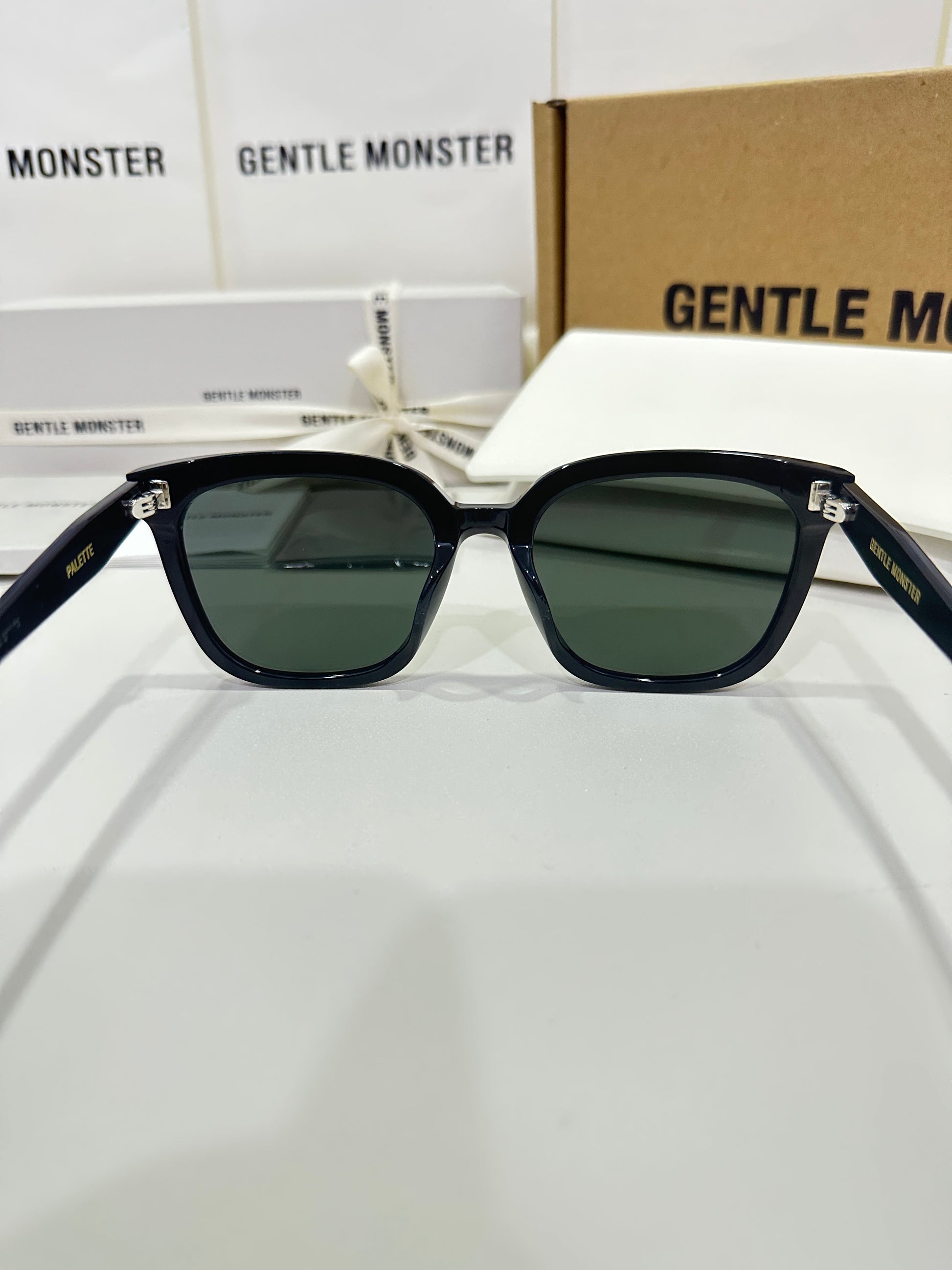 Discover the Palette 01 sunglasses from Gentle Monster’s 2023 Collection. Featuring a simple black frame and a soft square silhouette, the iconic metal detail on the temples adds a touch of sophistication to this piece.