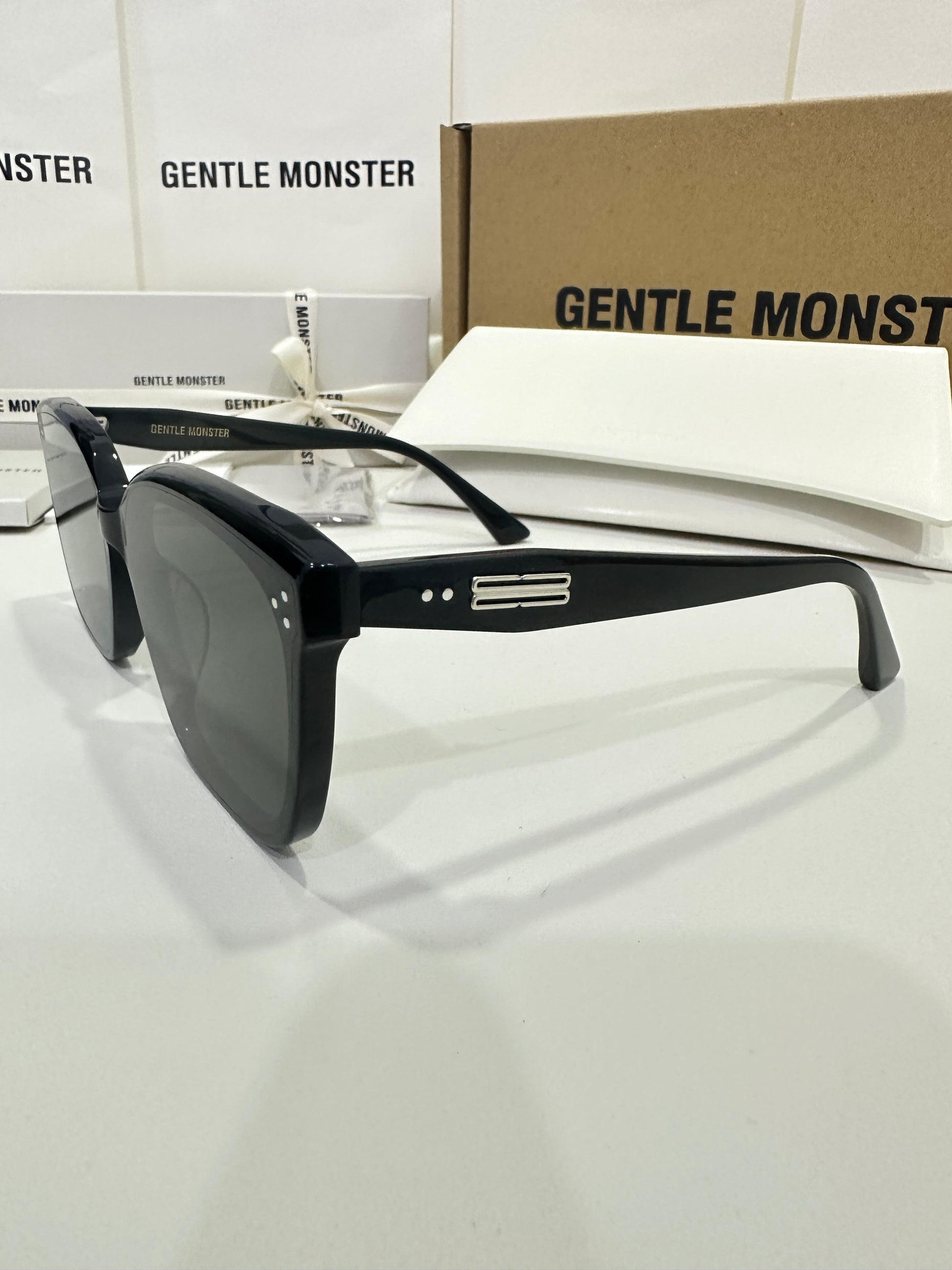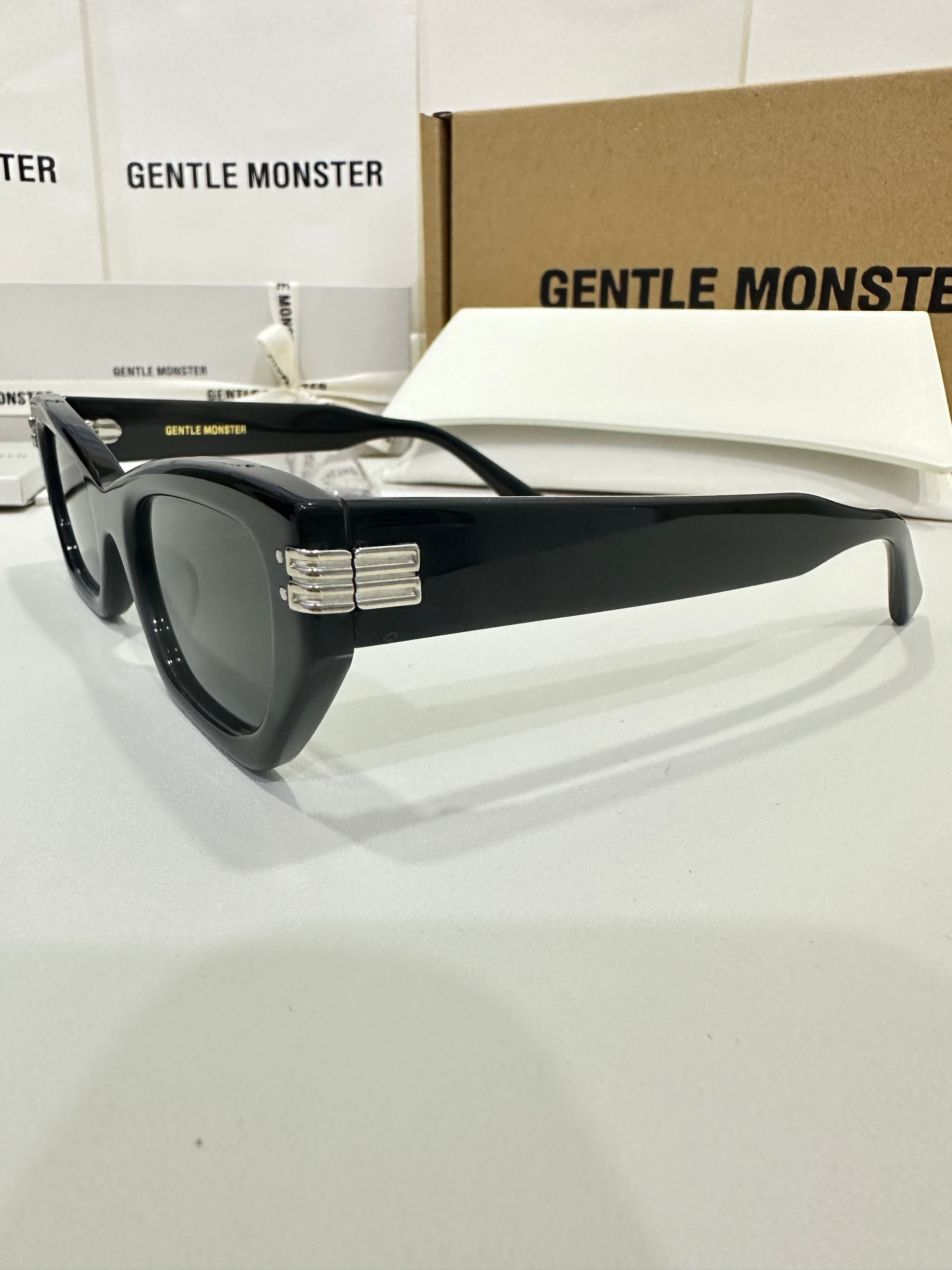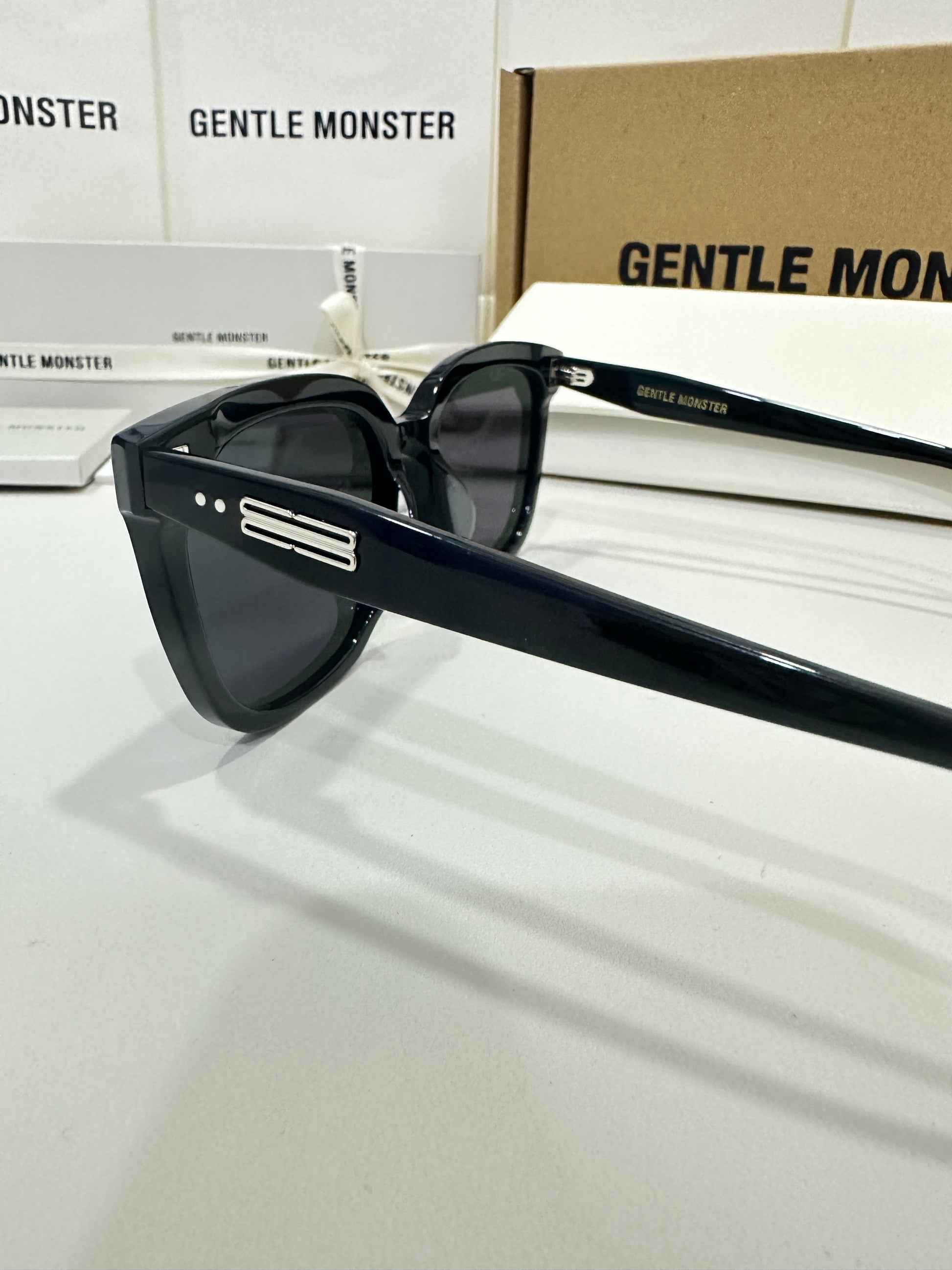 Discover the Palette 01 sunglasses from Gentle Monster’s 2023 Collection. Featuring a simple black frame and a soft square silhouette, the iconic metal detail on the temples adds a touch of sophistication to this piece.