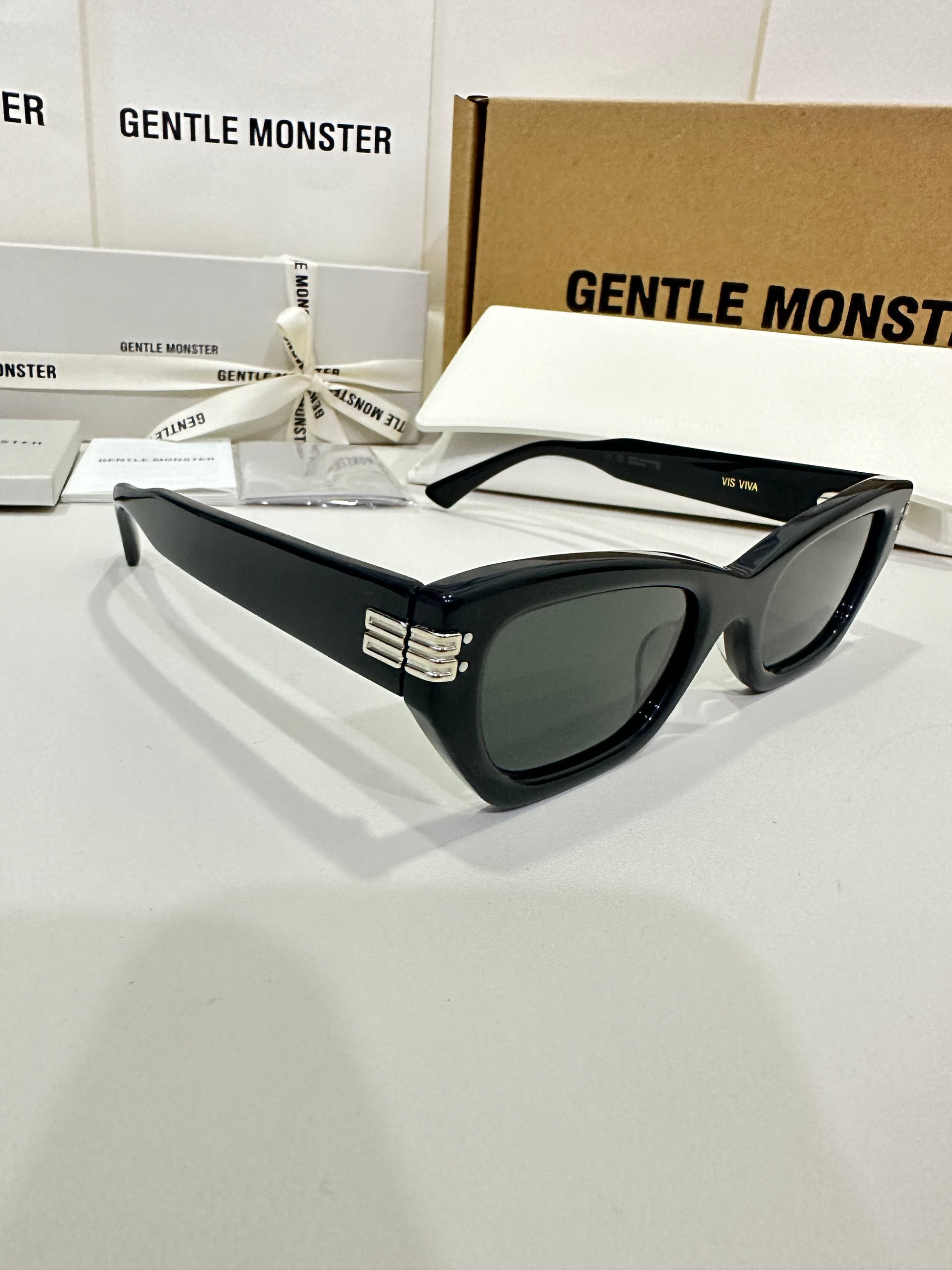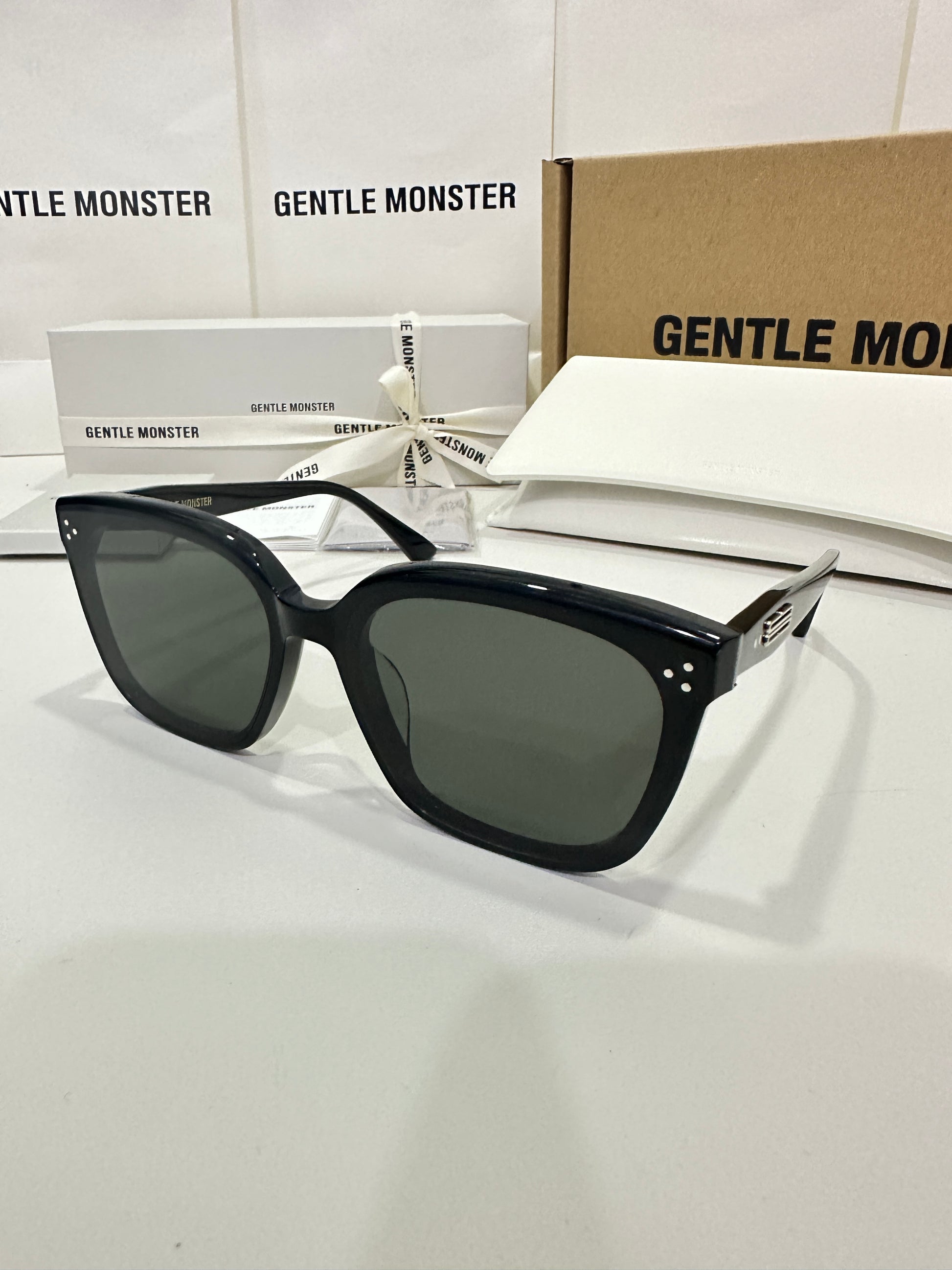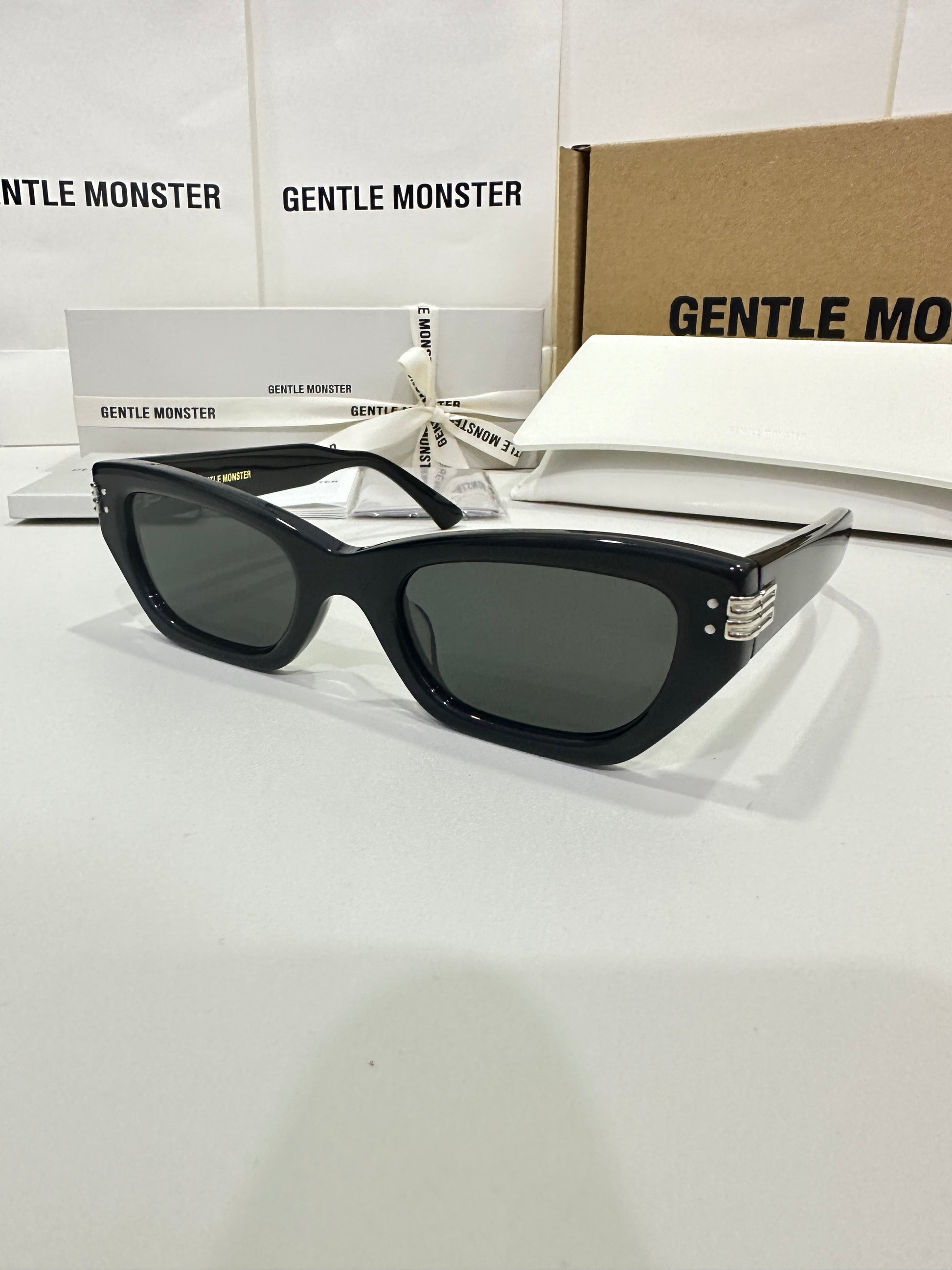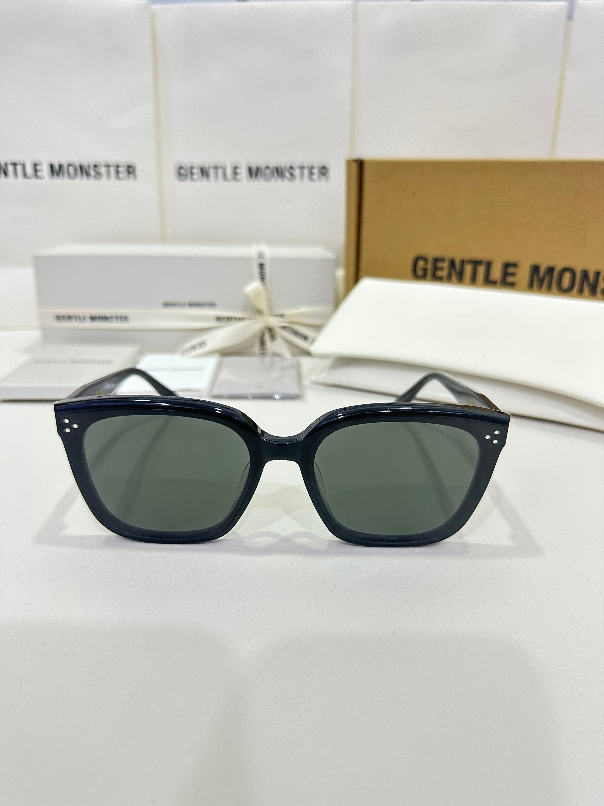 Discover the Palette 01 sunglasses from Gentle Monster’s 2023 Collection. Featuring a simple black frame and a soft square silhouette, the iconic metal detail on the temples adds a touch of sophistication to this piece.