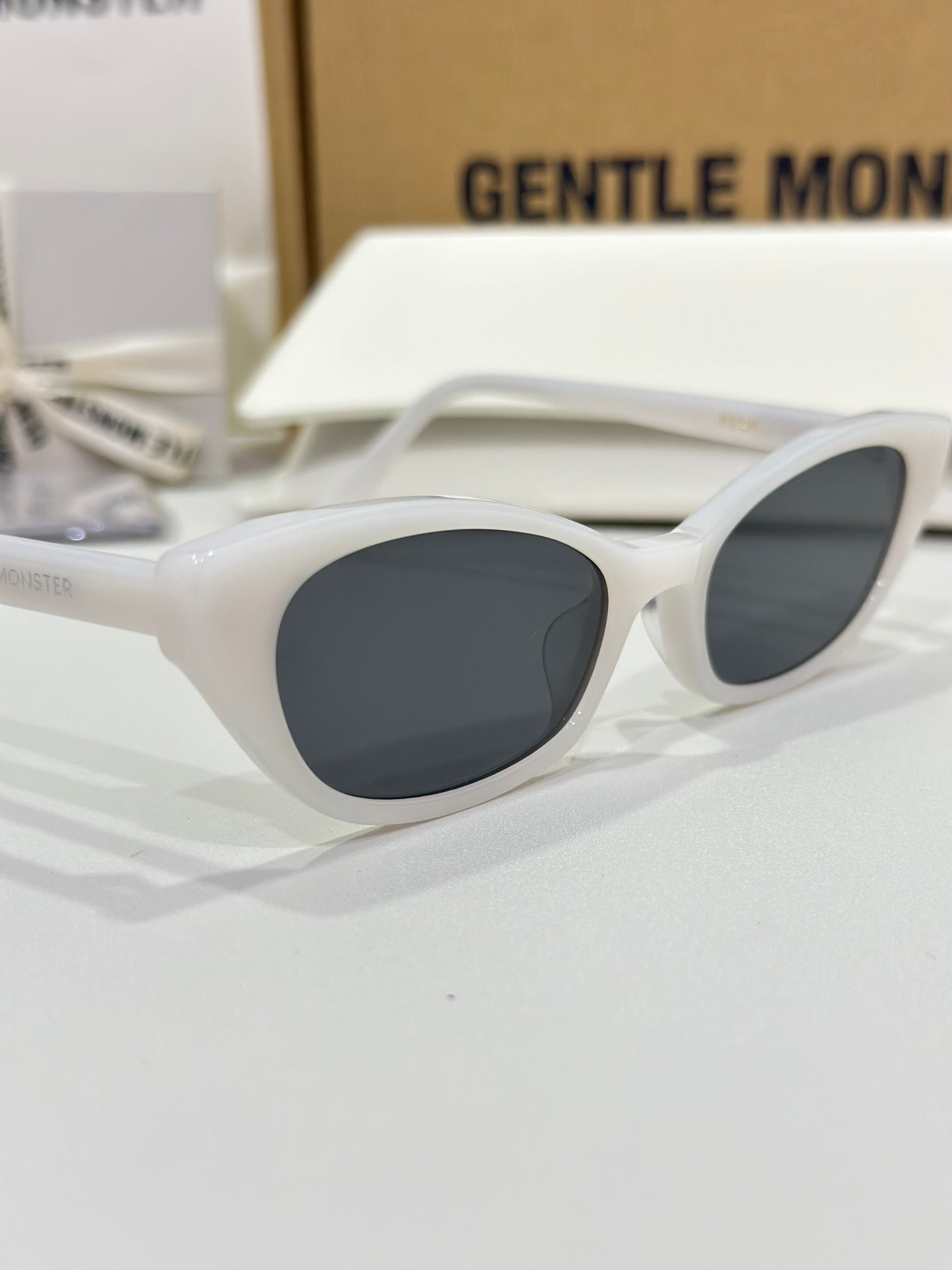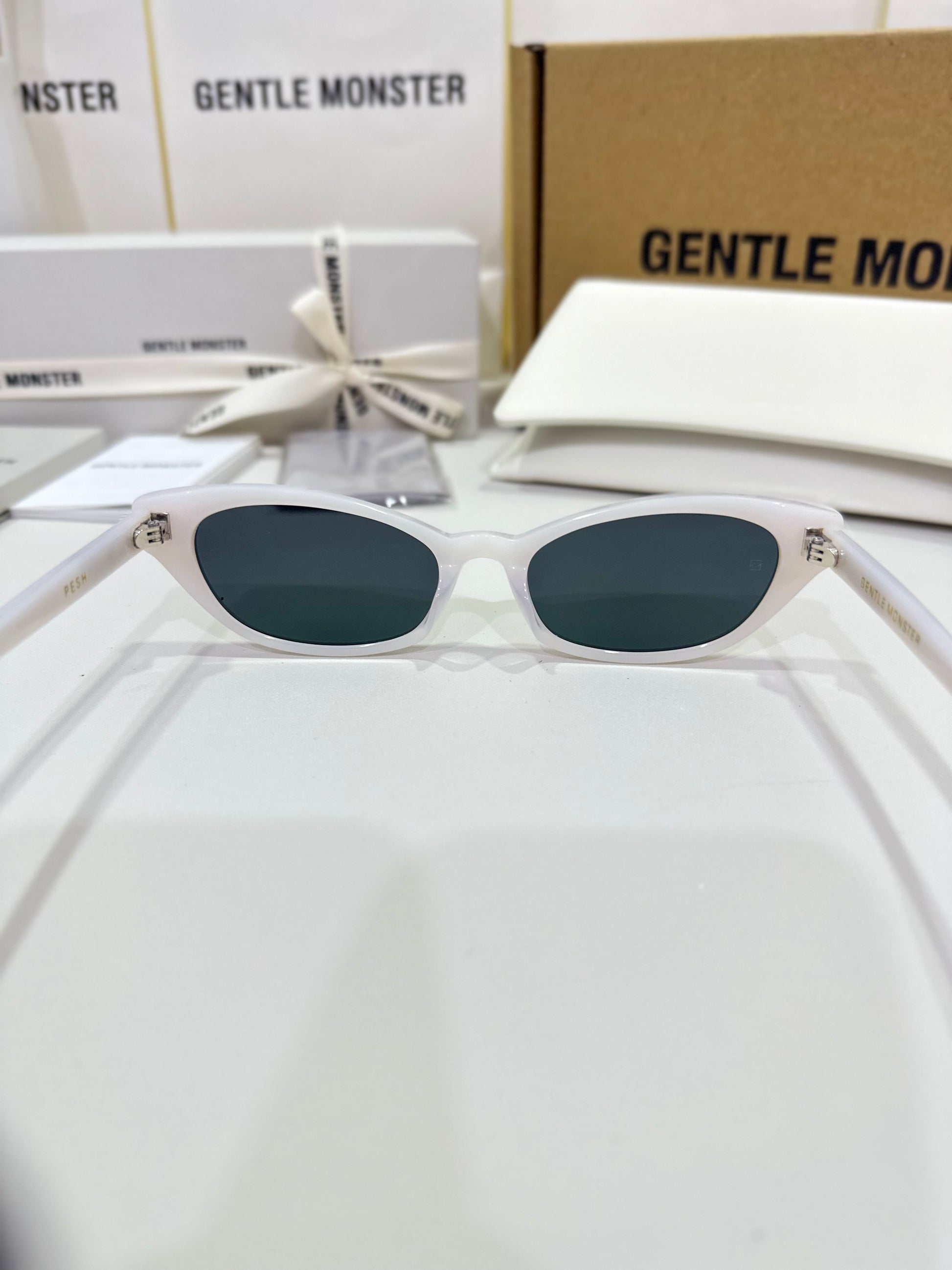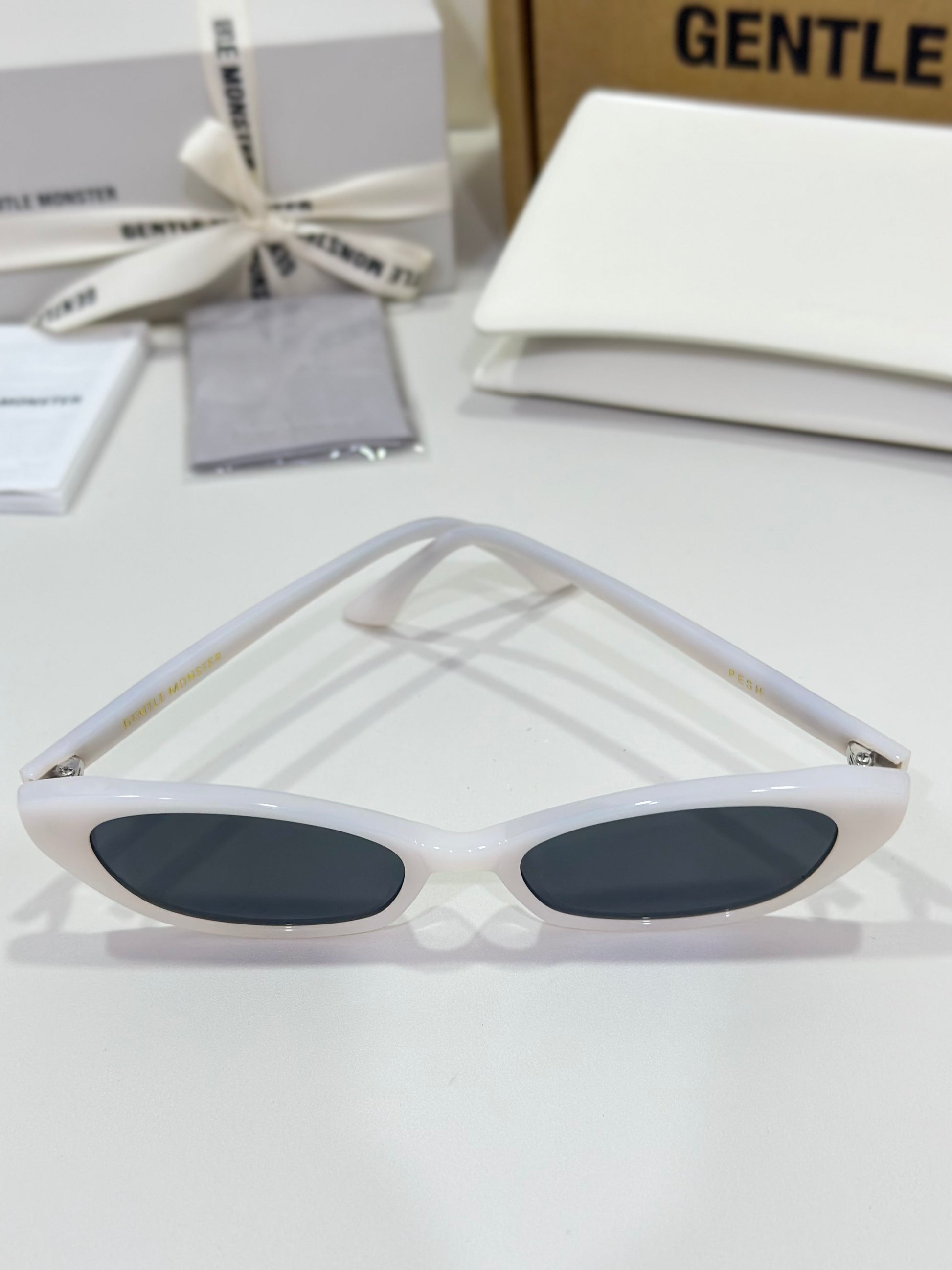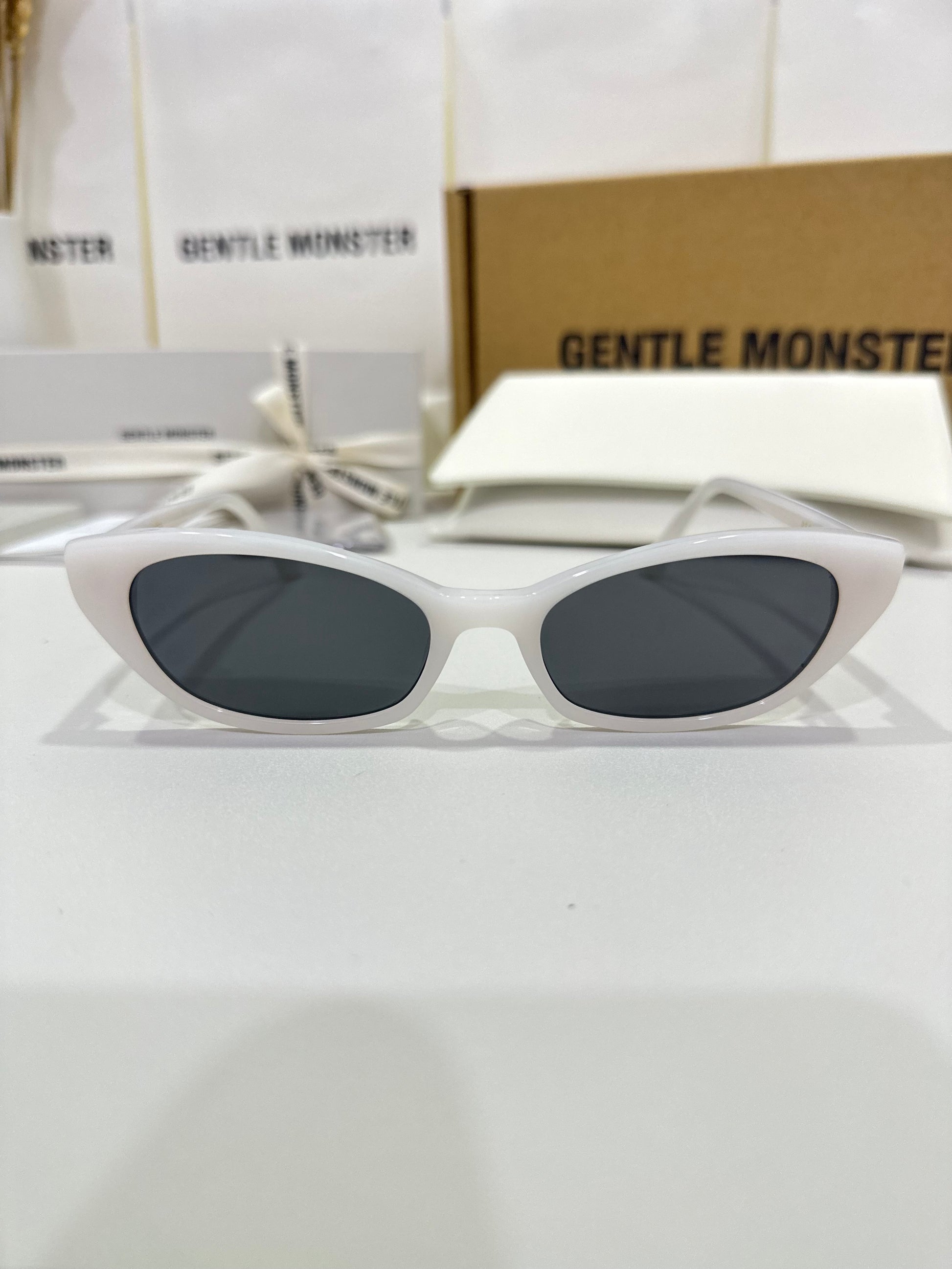 Acetate cat-eye frameExaggerated edgesLaser engraved GENTLE MONSTER logoFrame Front: 147.4mm, Frame Side: 154.7mm