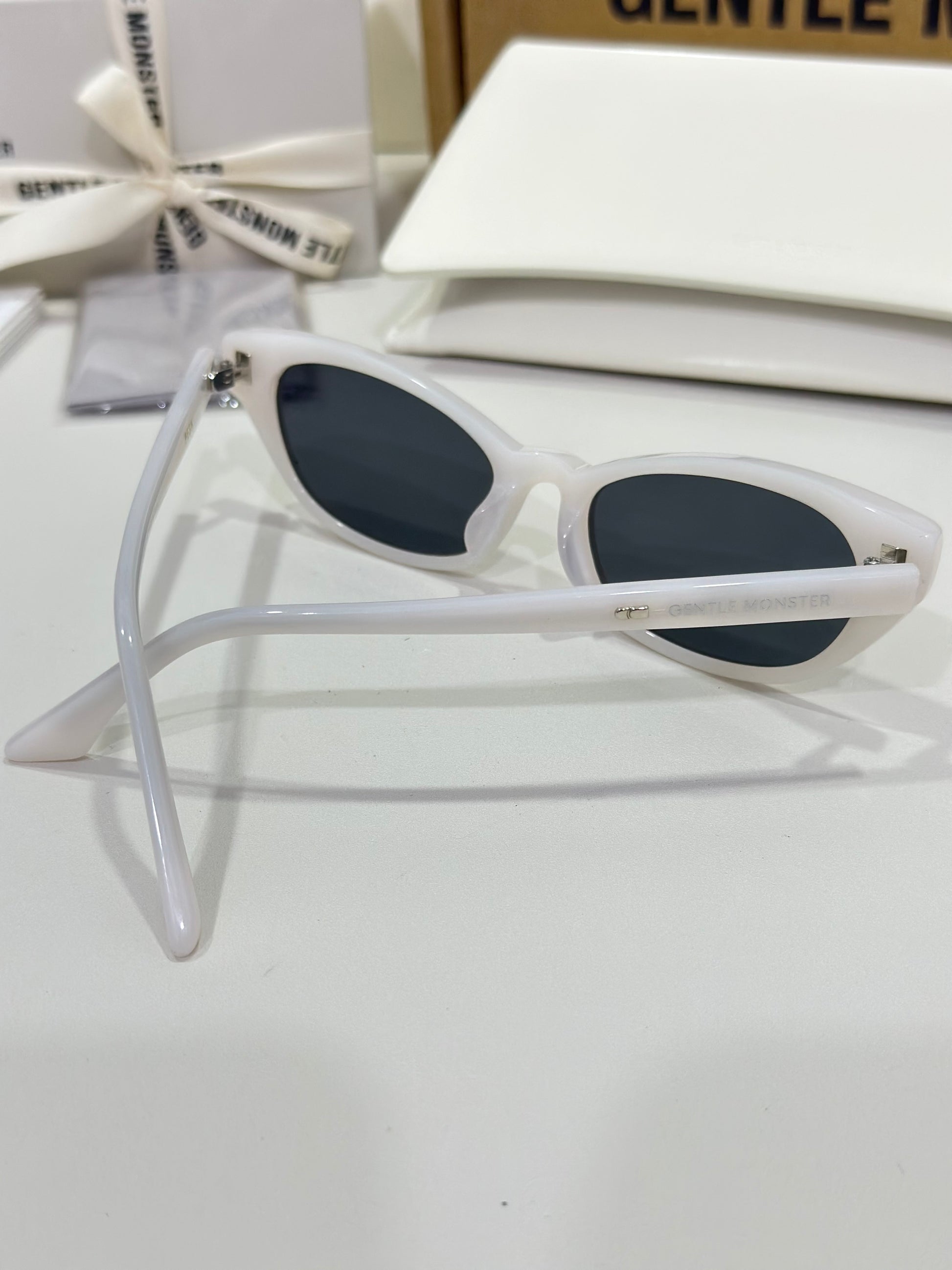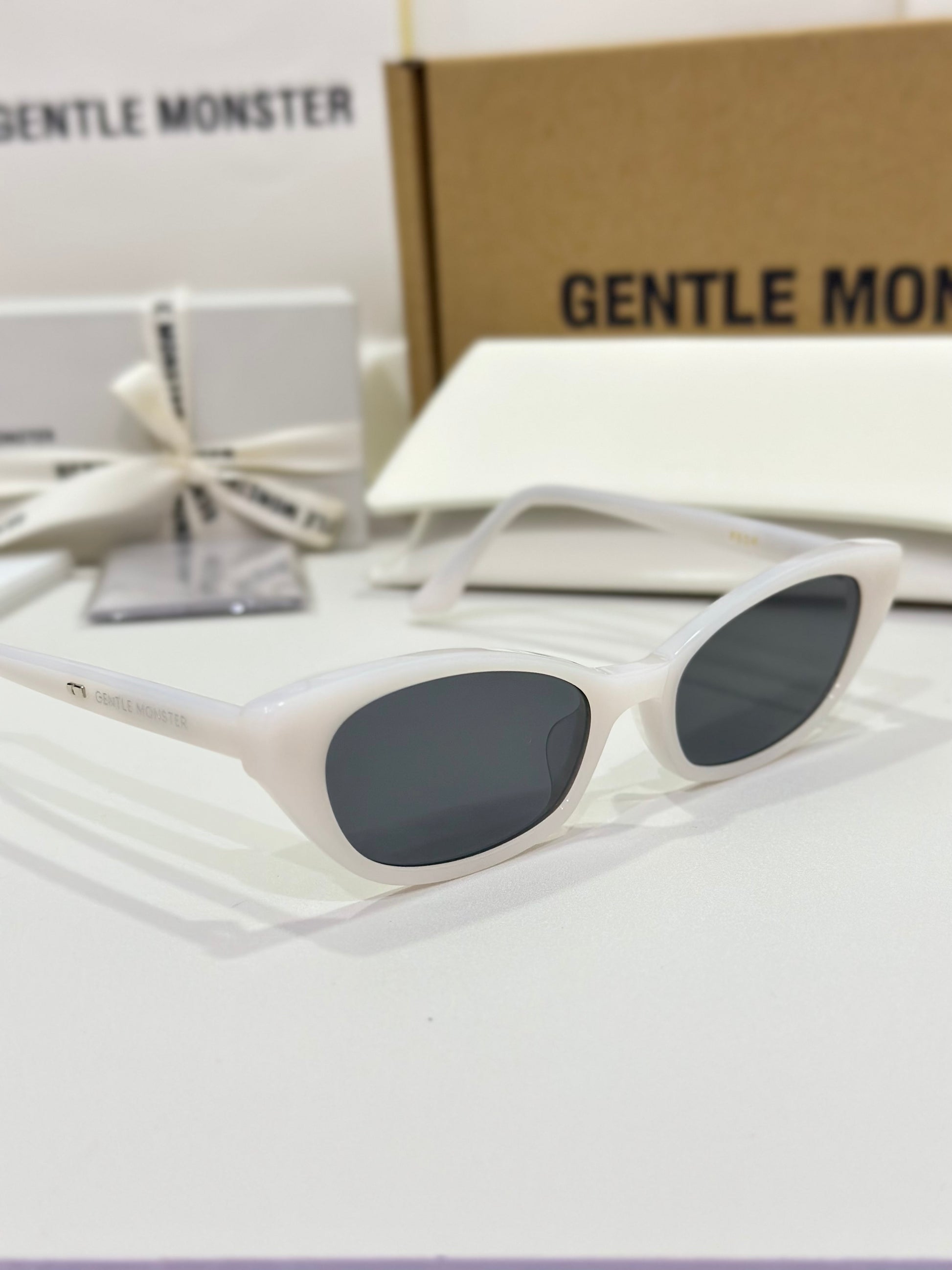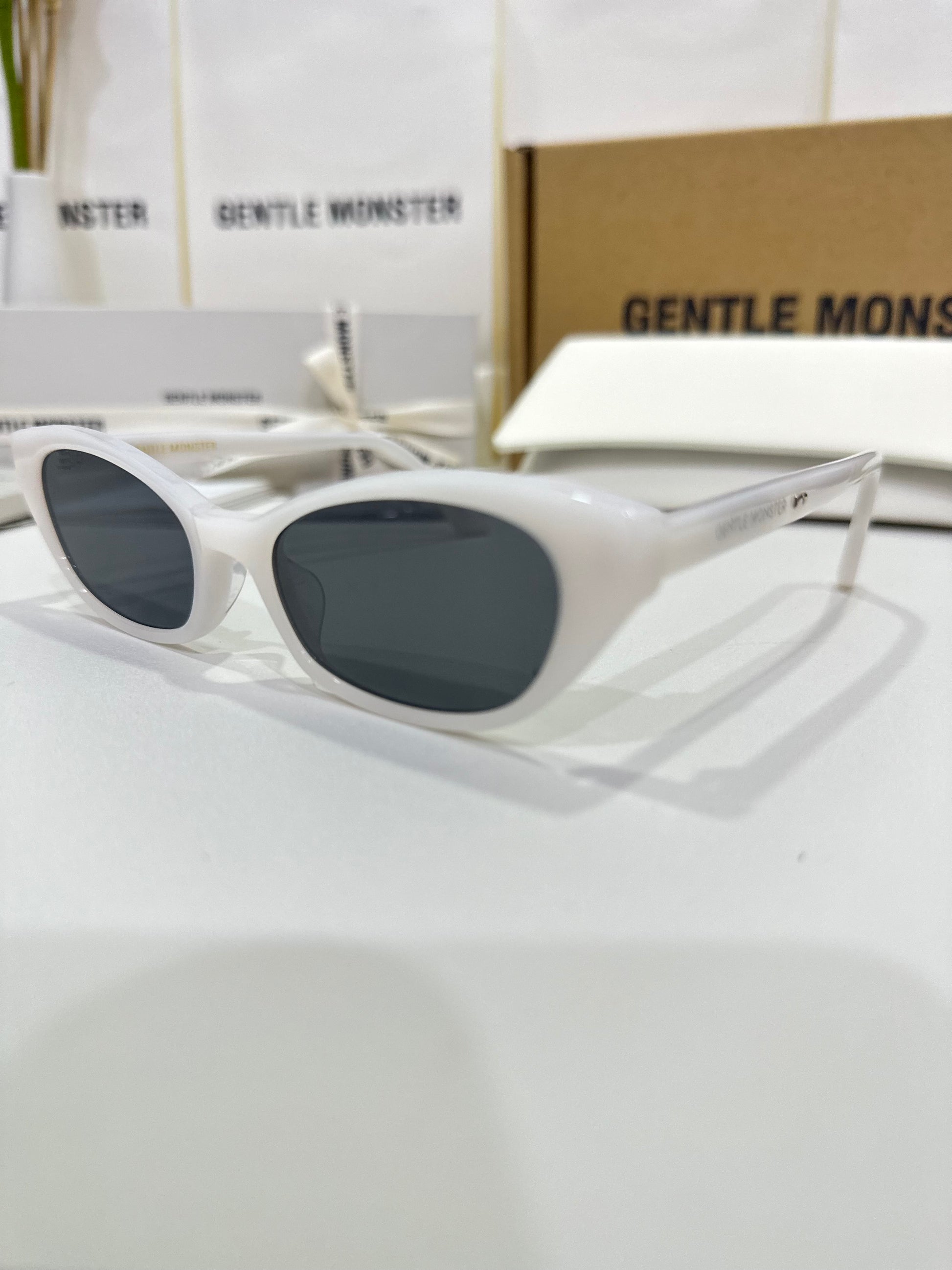 Acetate cat-eye frameExaggerated edgesLaser engraved GENTLE MONSTER logoFrame Front: 147.4mm, Frame Side: 154.7mm