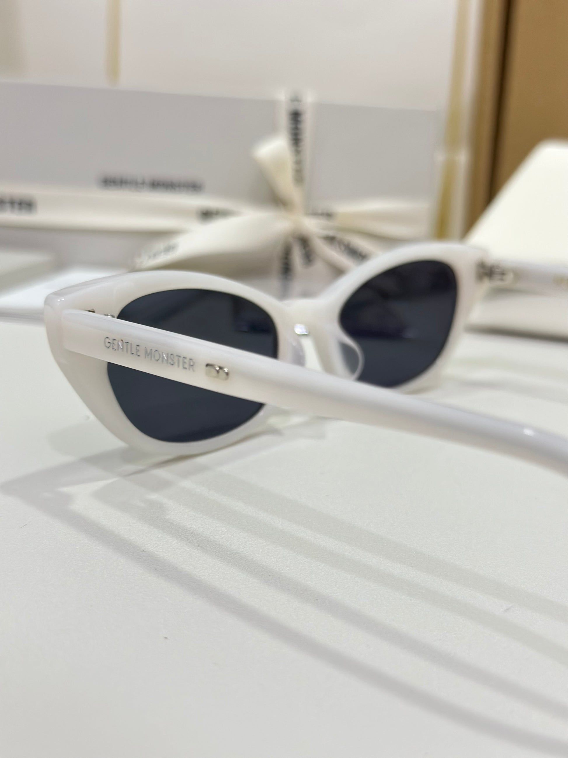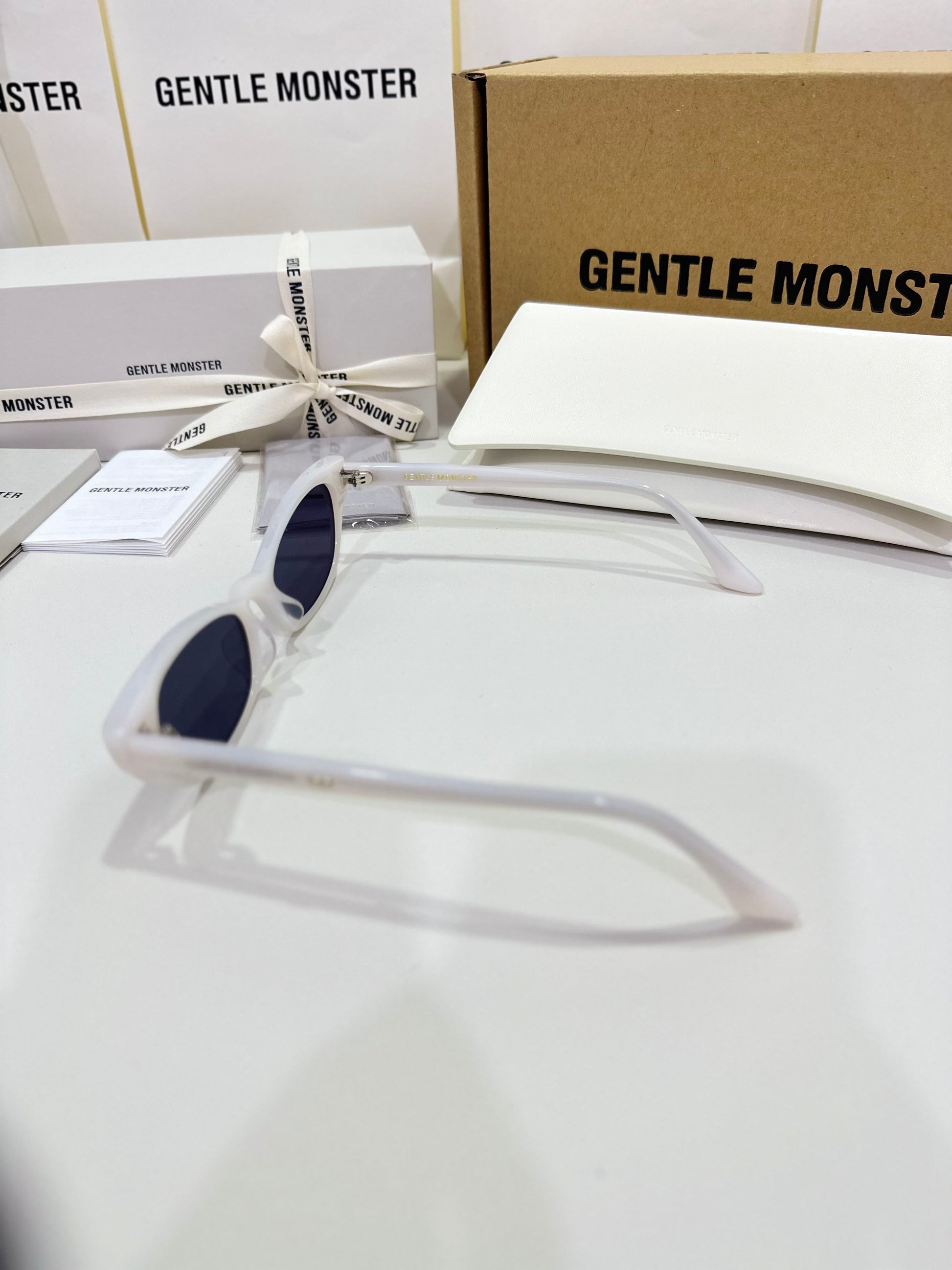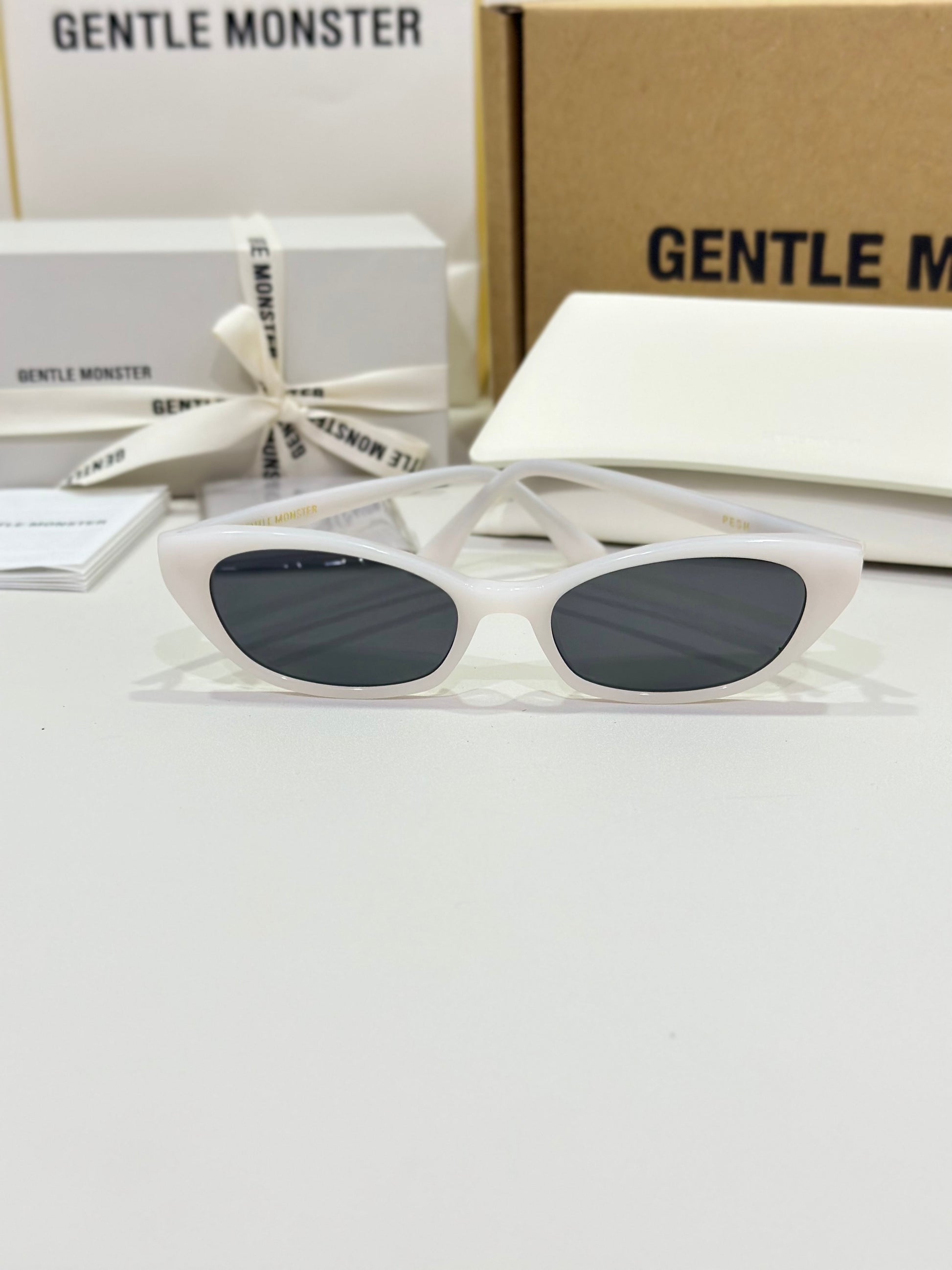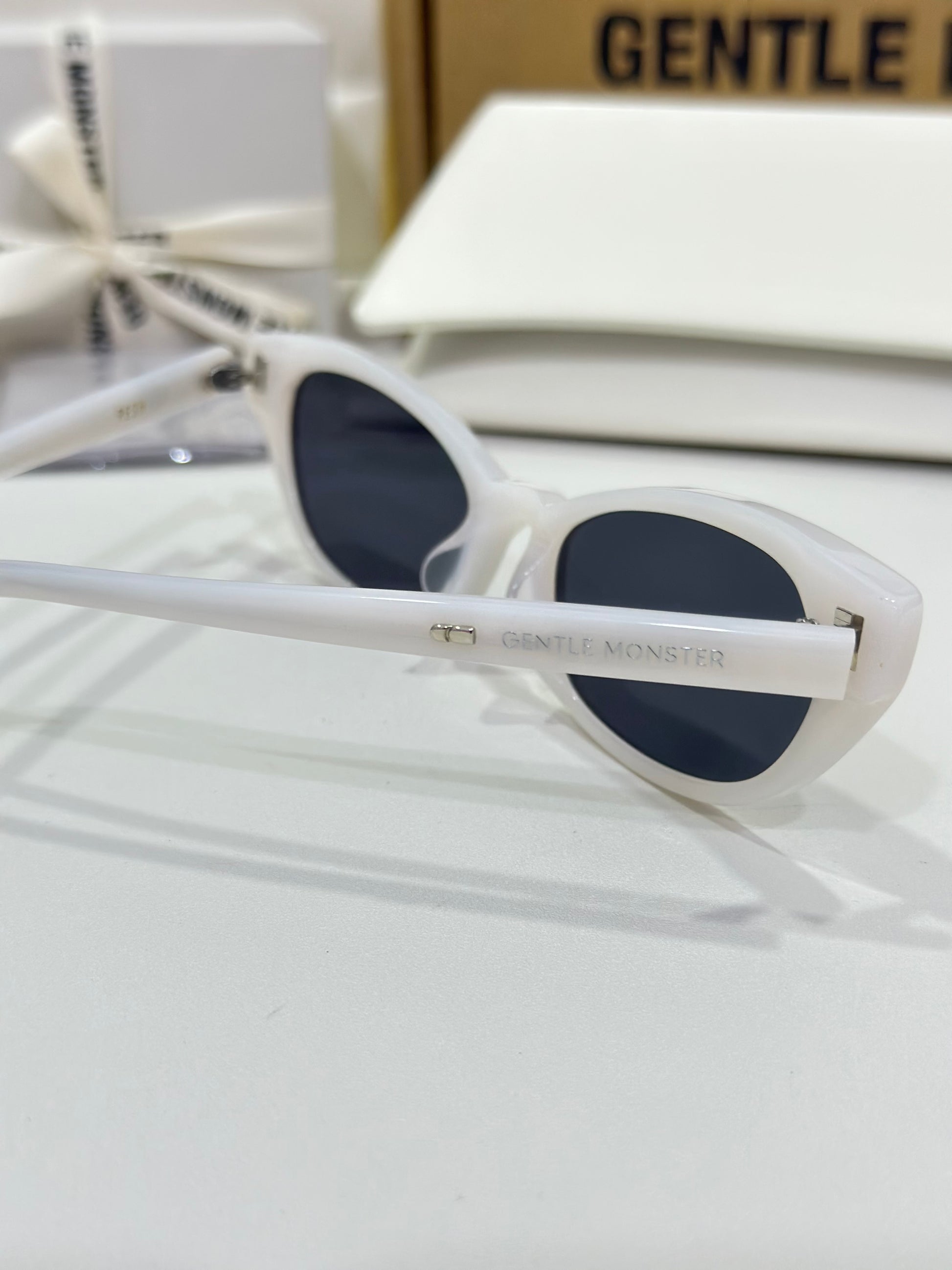 Acetate cat-eye frameExaggerated edgesLaser engraved GENTLE MONSTER logoFrame Front: 147.4mm, Frame Side: 154.7mm