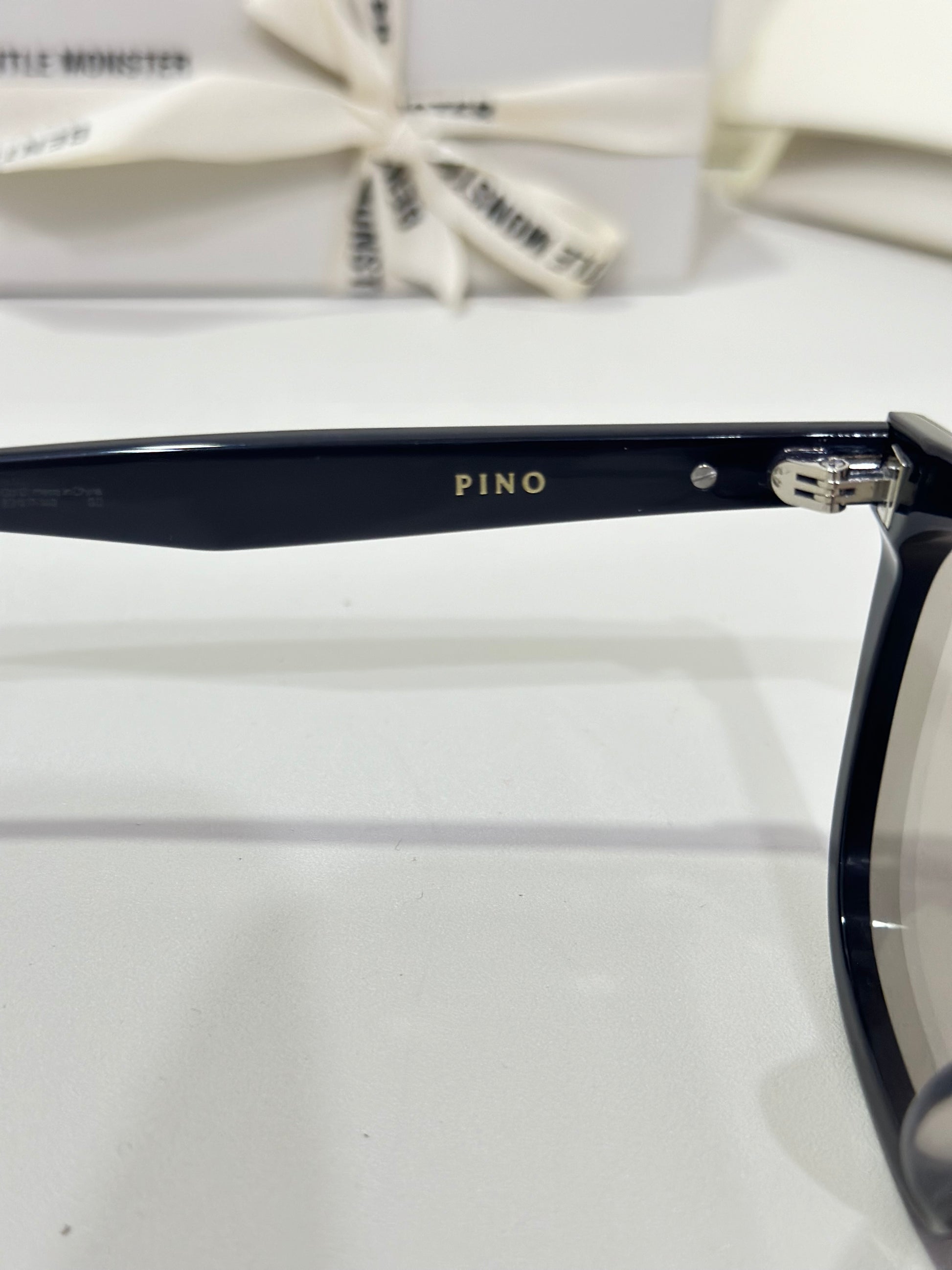 Discover the Pino 01(BR) sunglasses from Gentle Monster’s 2024 Collection. This piece features a well-balanced, structured square shape, a black frame paired with delicate brown lenses, and an iconic metal detail on the temples.