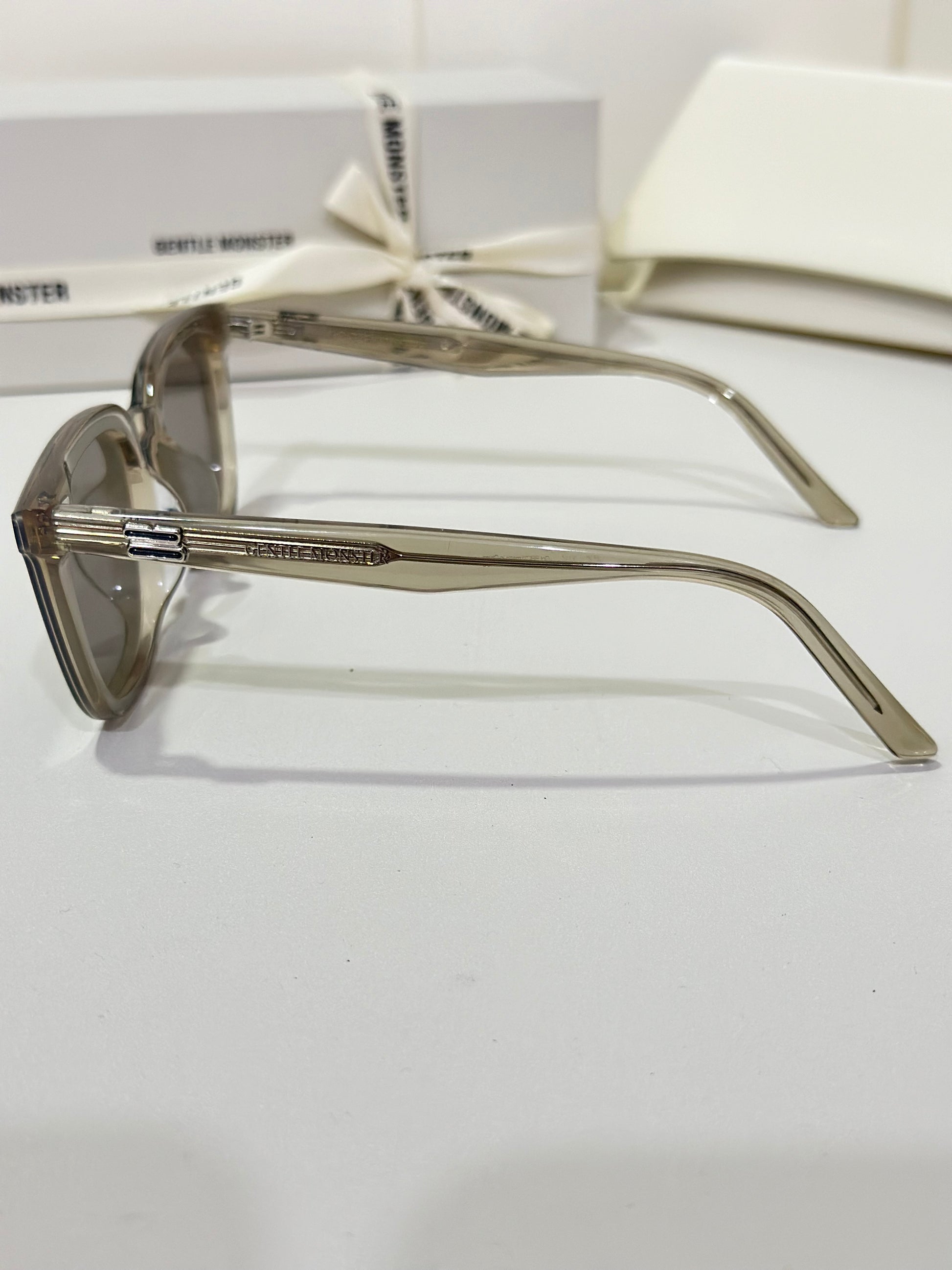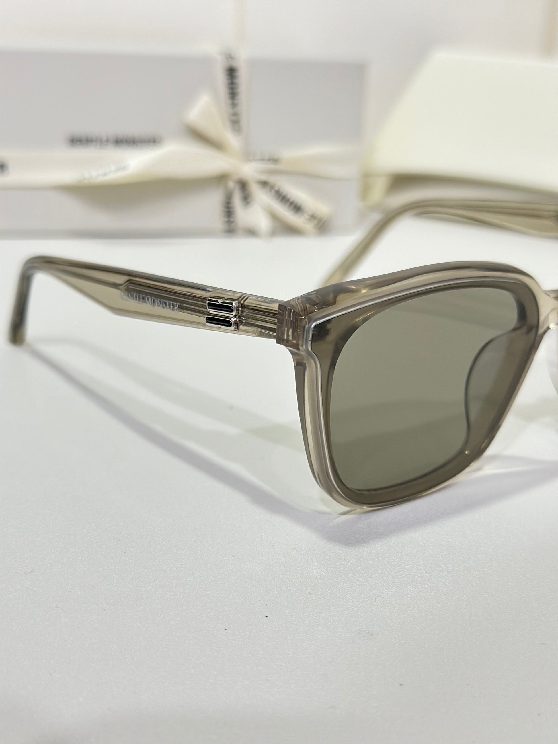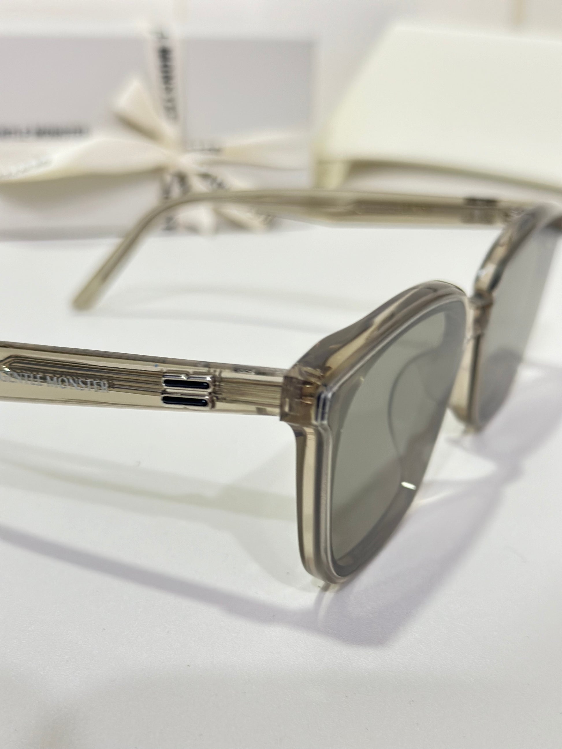 Translucent brown acetate frameGray lensesSquare shapeIconic metal detail on the templesFrame Front: 144.9mm, Frame Side: 147.5mm