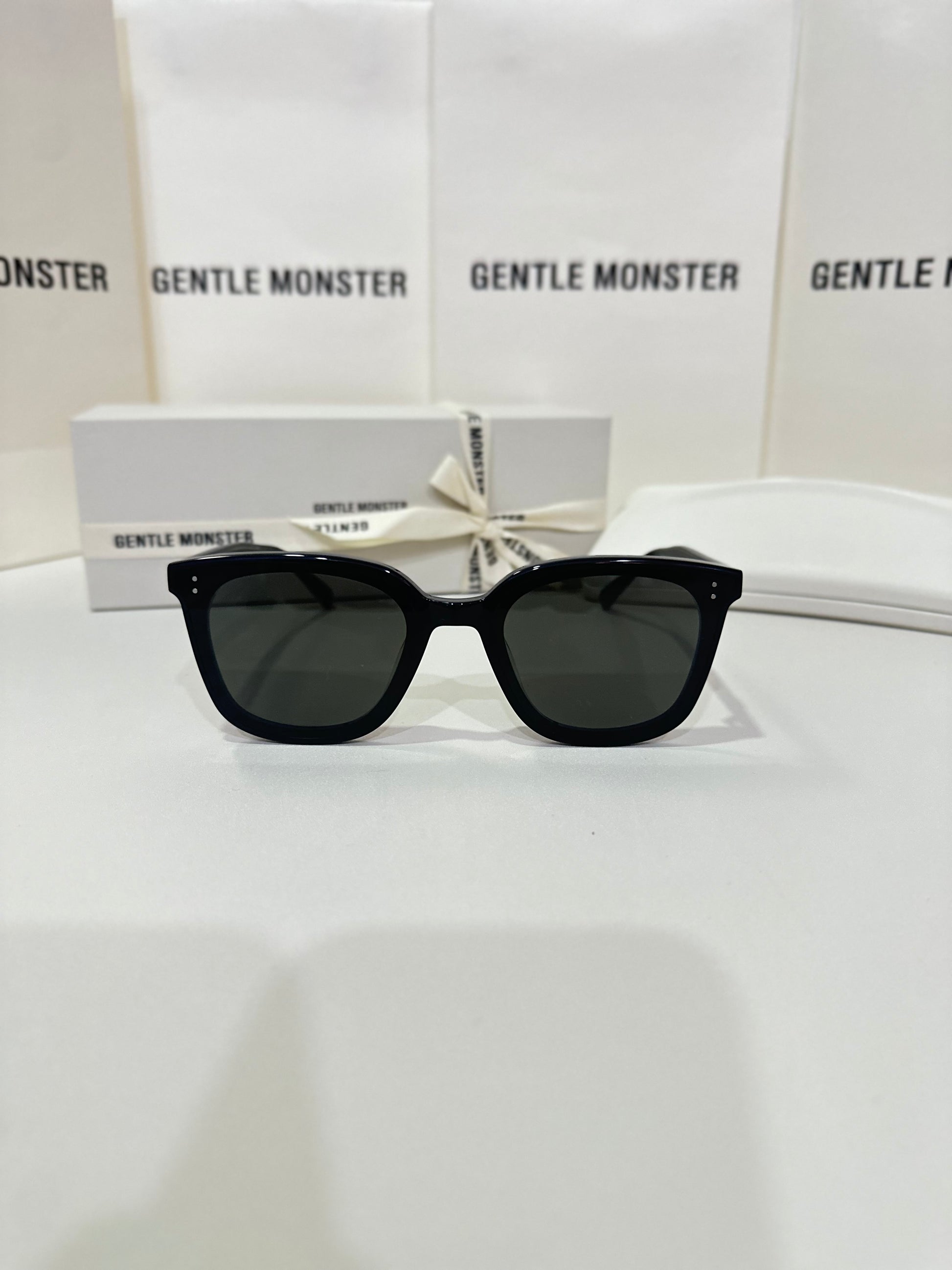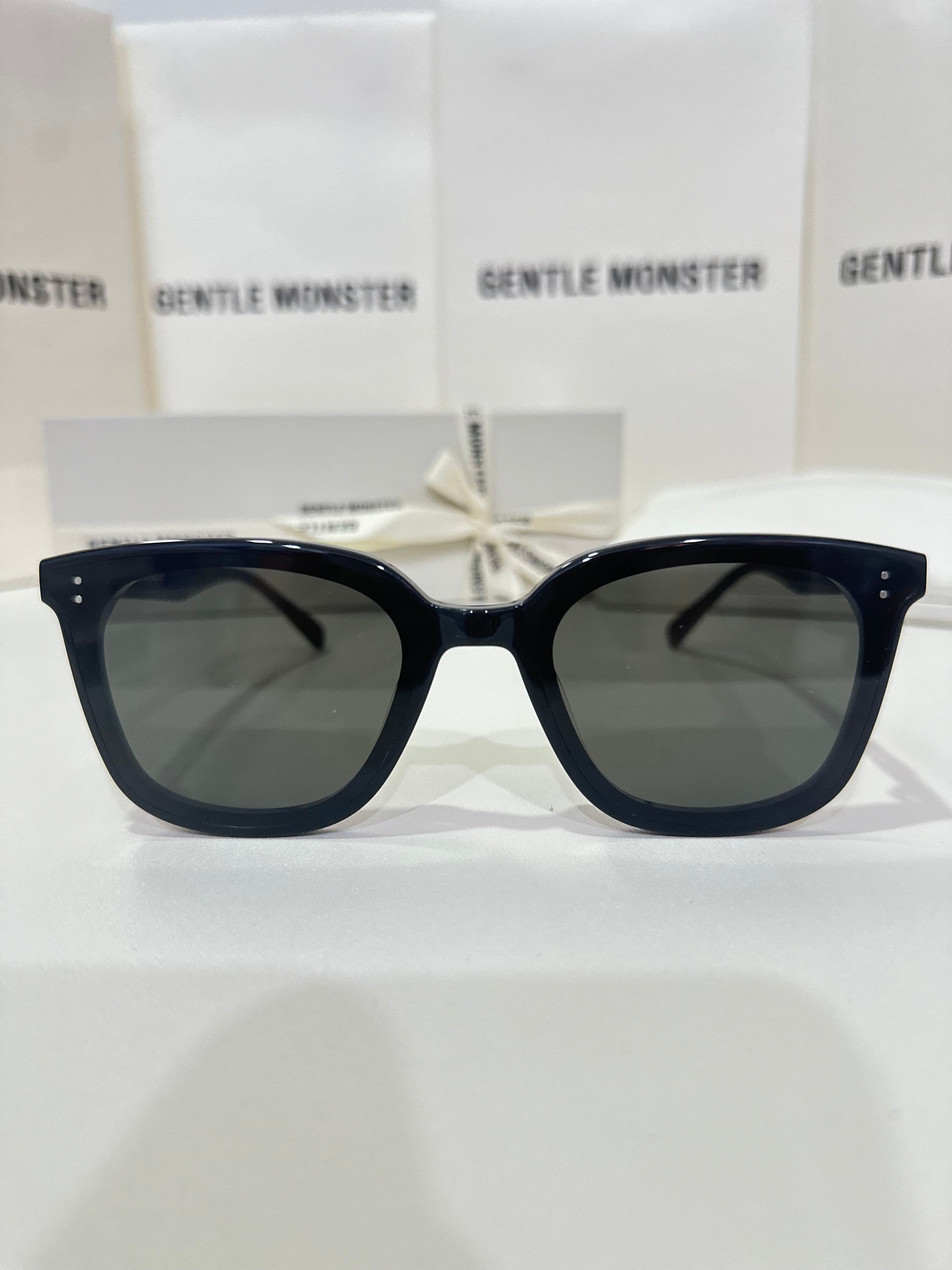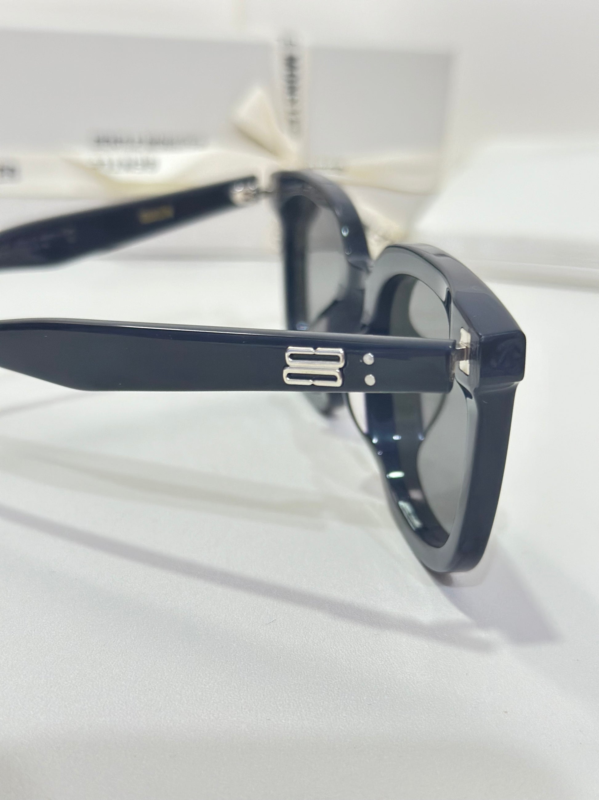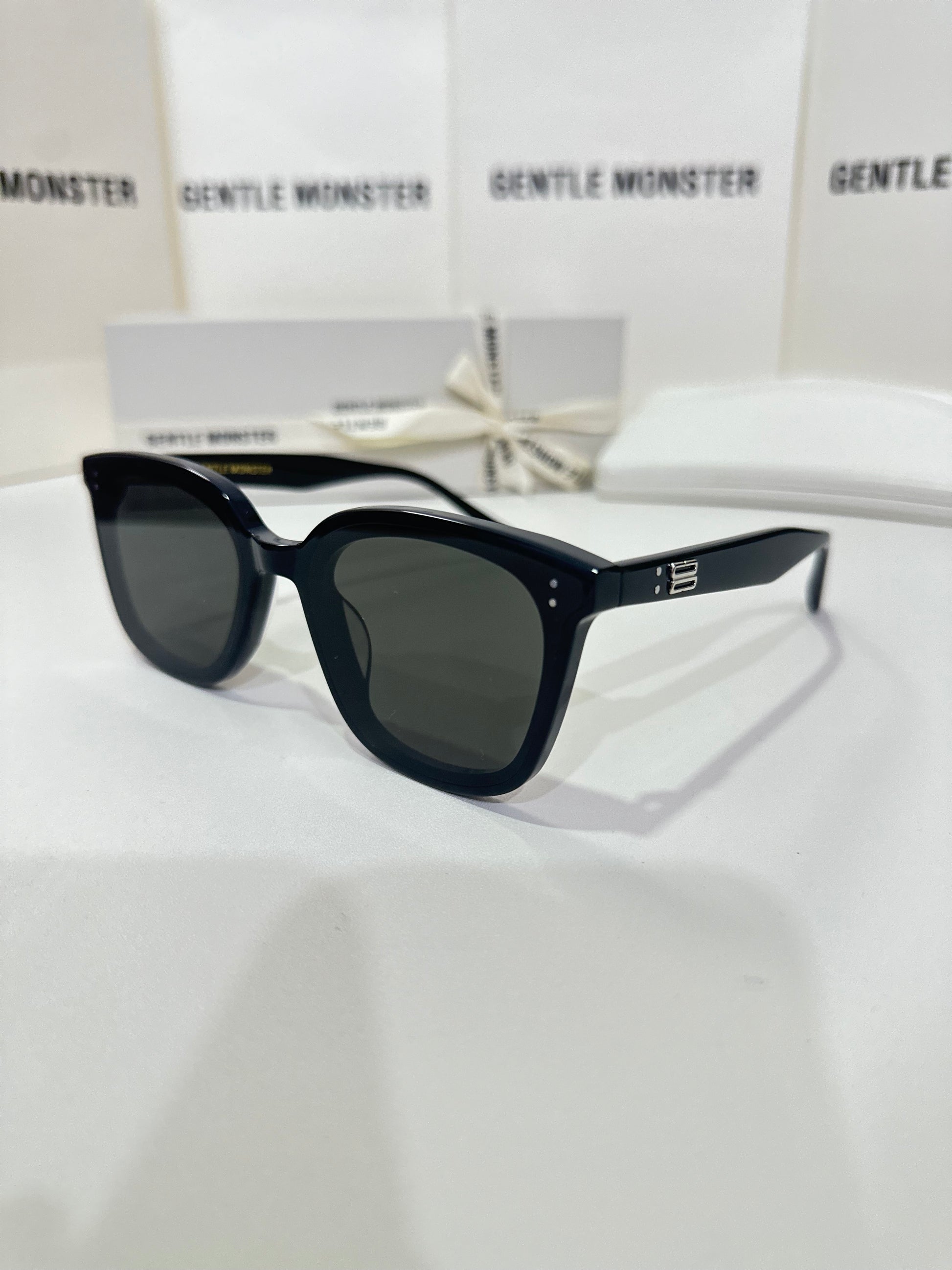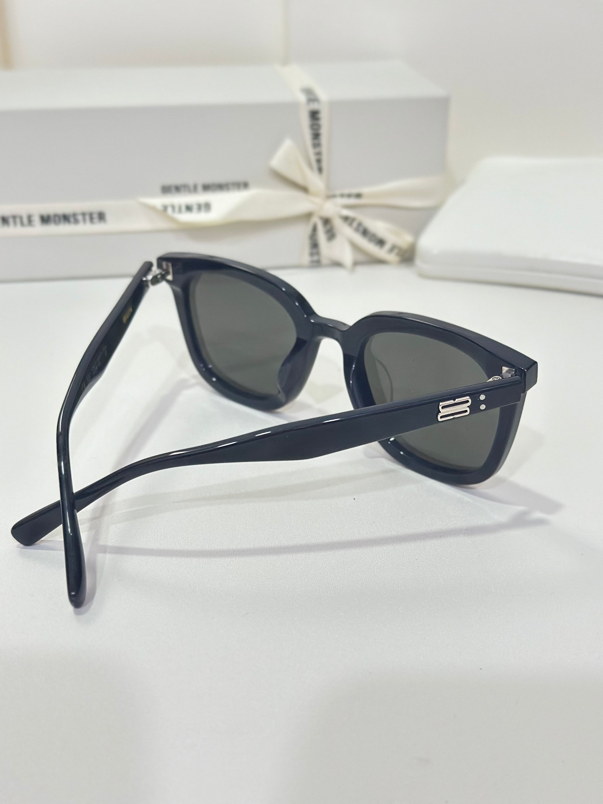 Black acetate frameGray lensesSquare shapeTemples featuring the Gentle Monster 2023 Collection's iconic metal detailFrame Front: 143.3mm, Frame Side: 143mm
