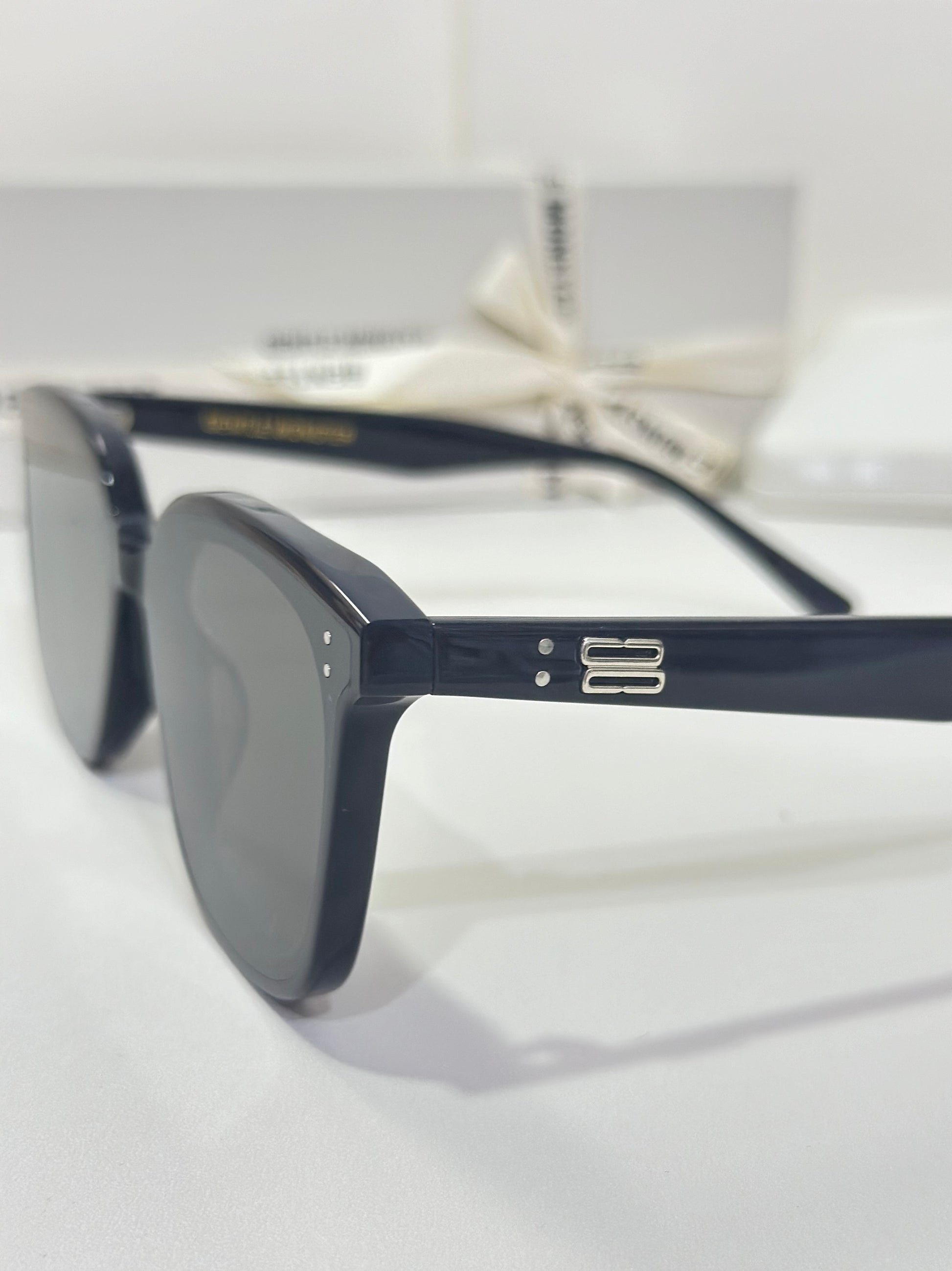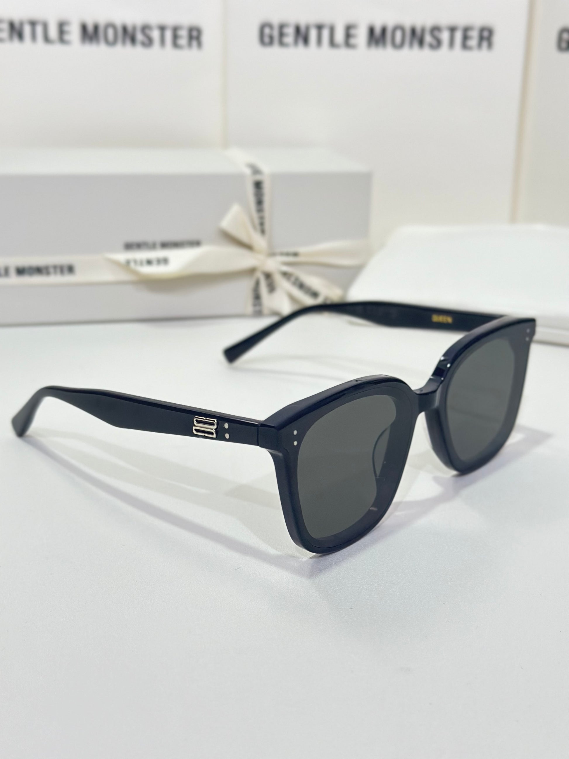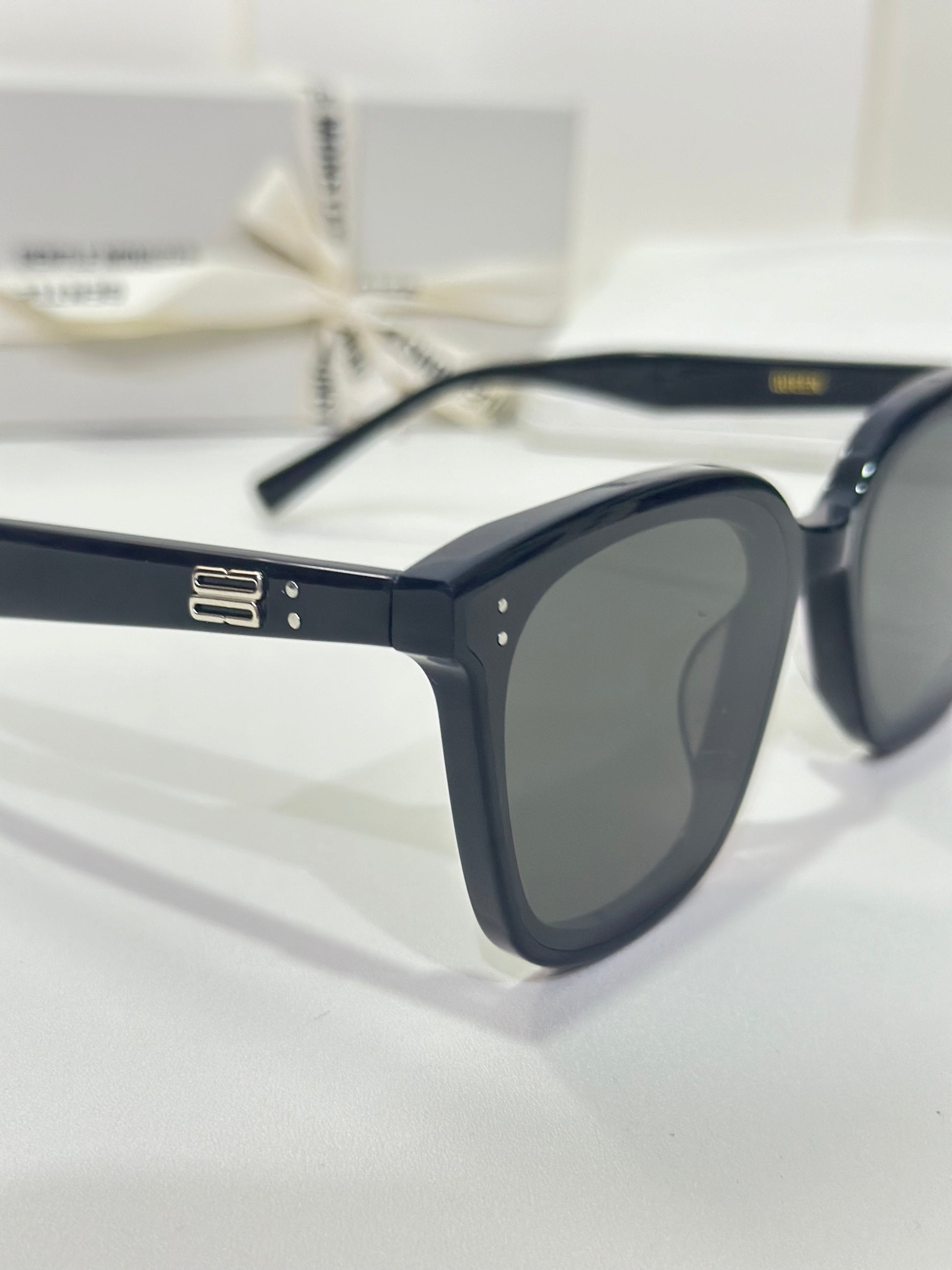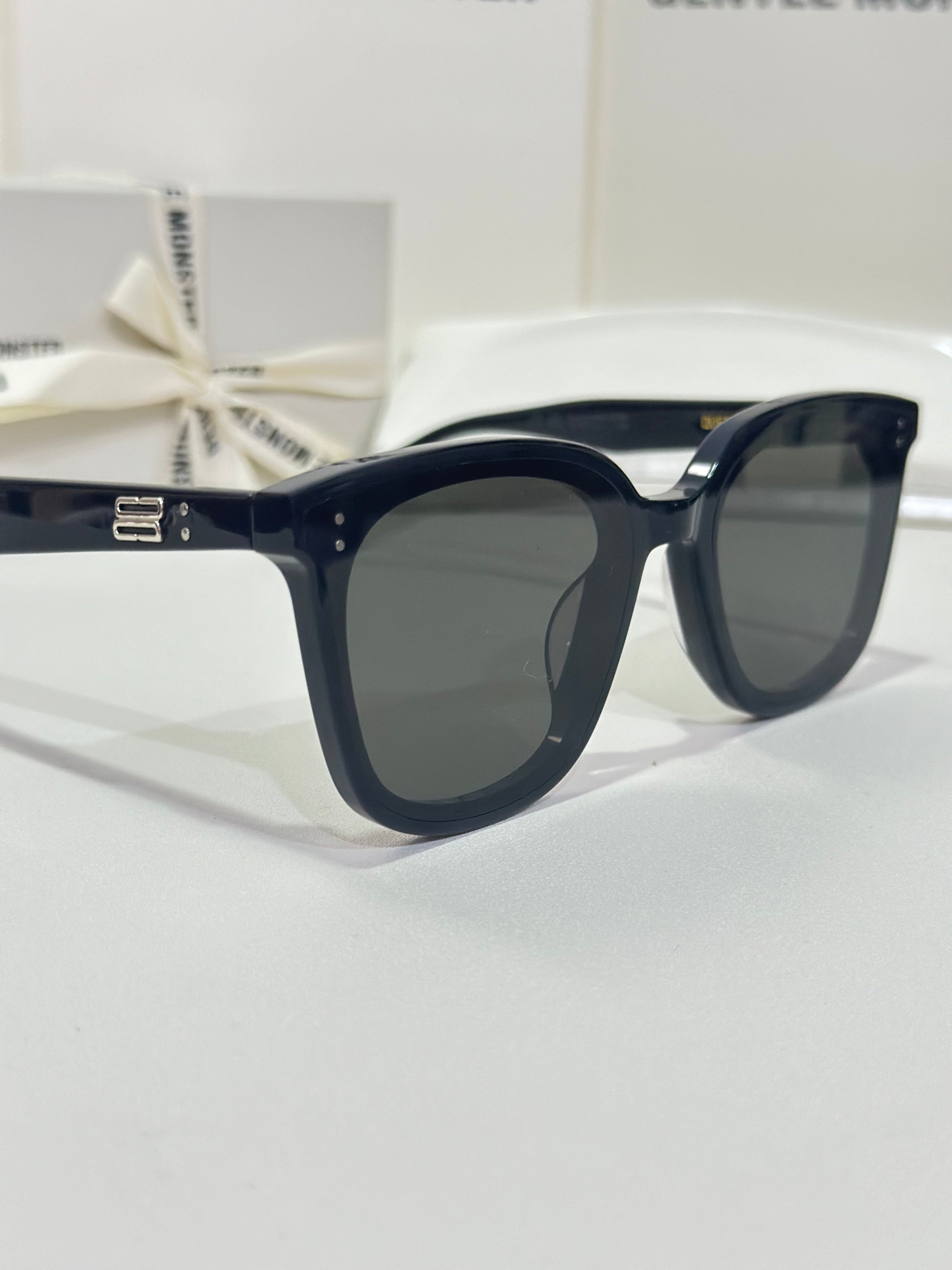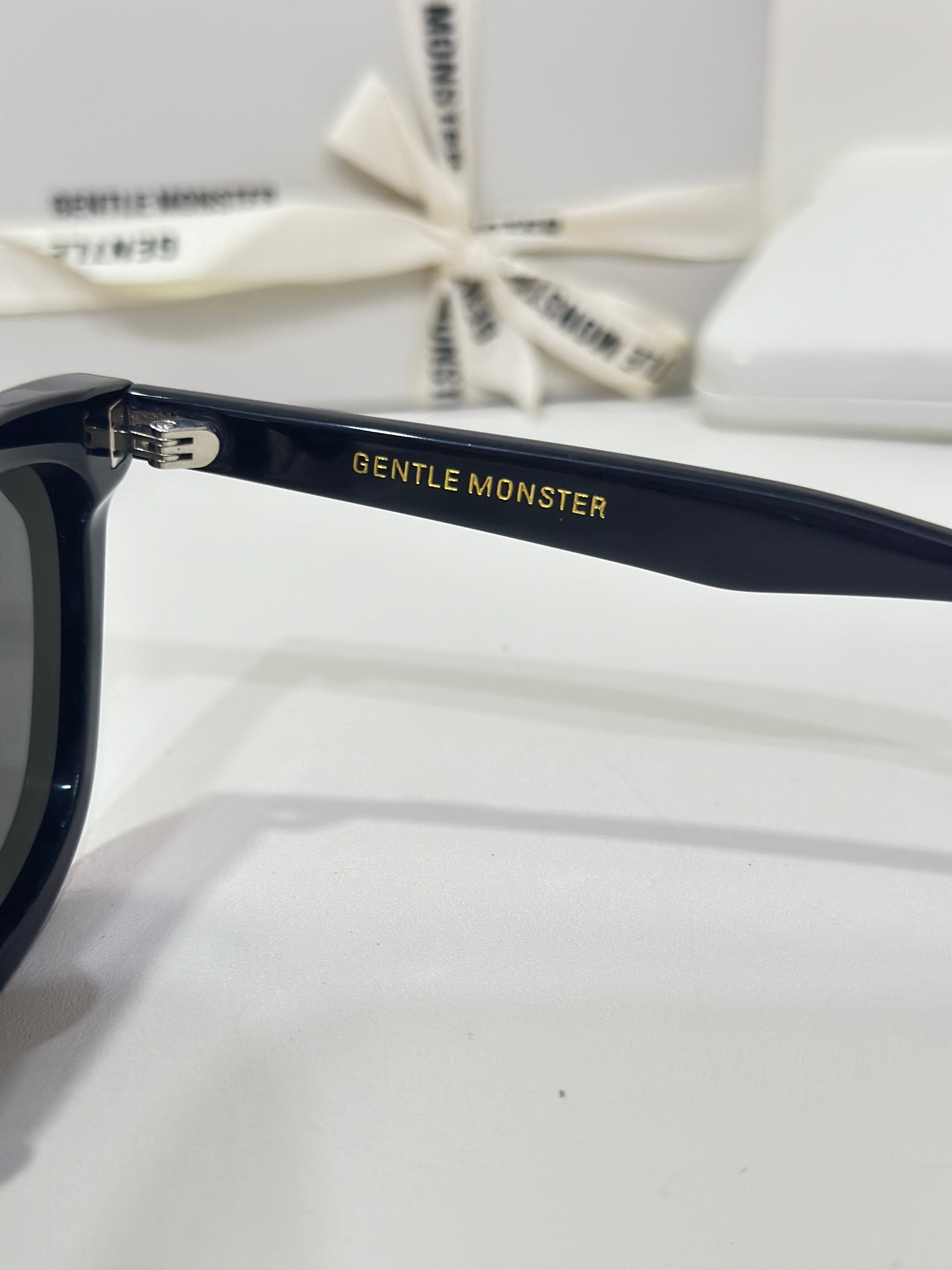 Black acetate frameGray lensesSquare shapeTemples featuring the Gentle Monster 2023 Collection's iconic metal detailFrame Front: 143.3mm, Frame Side: 143mm