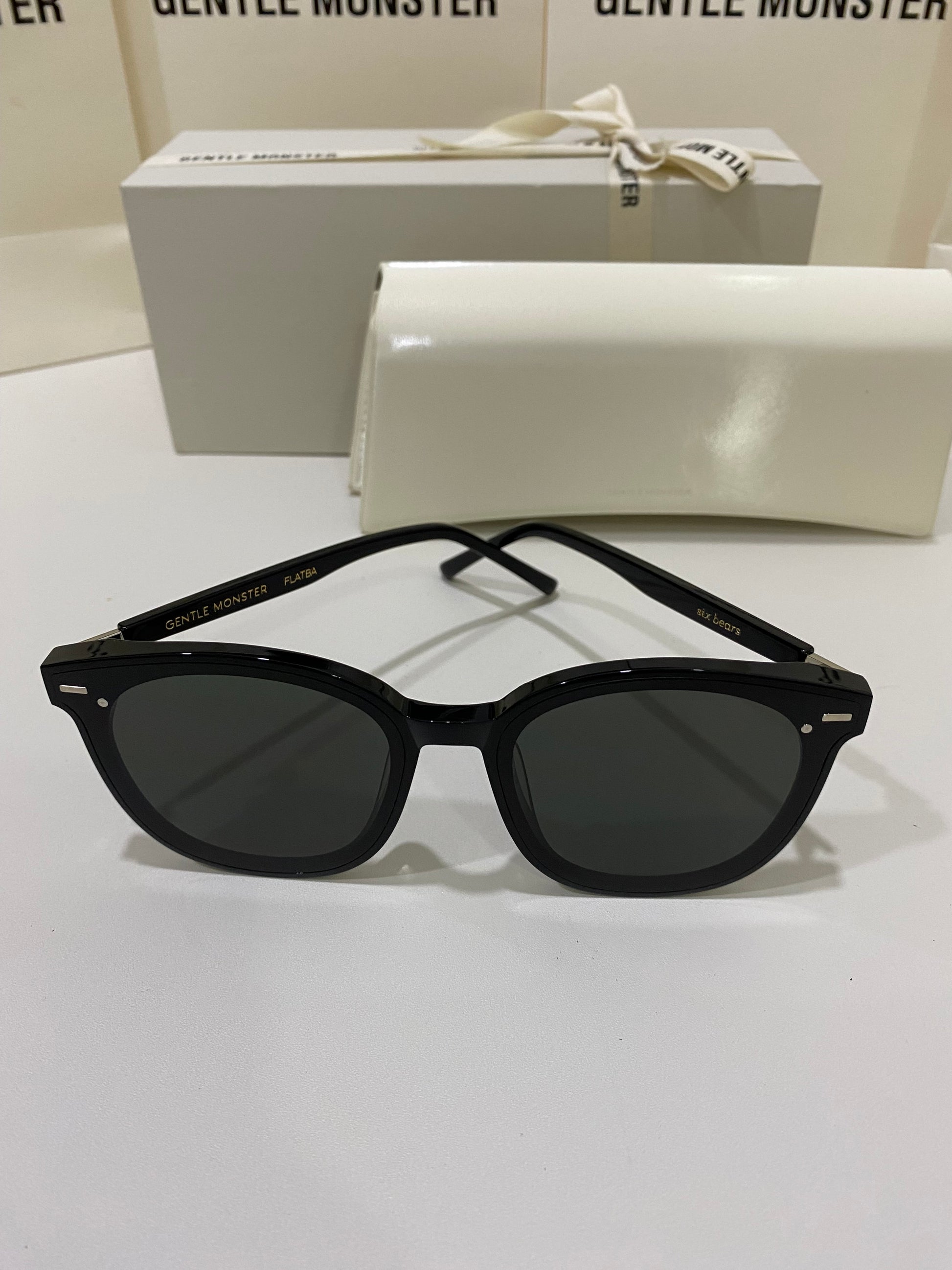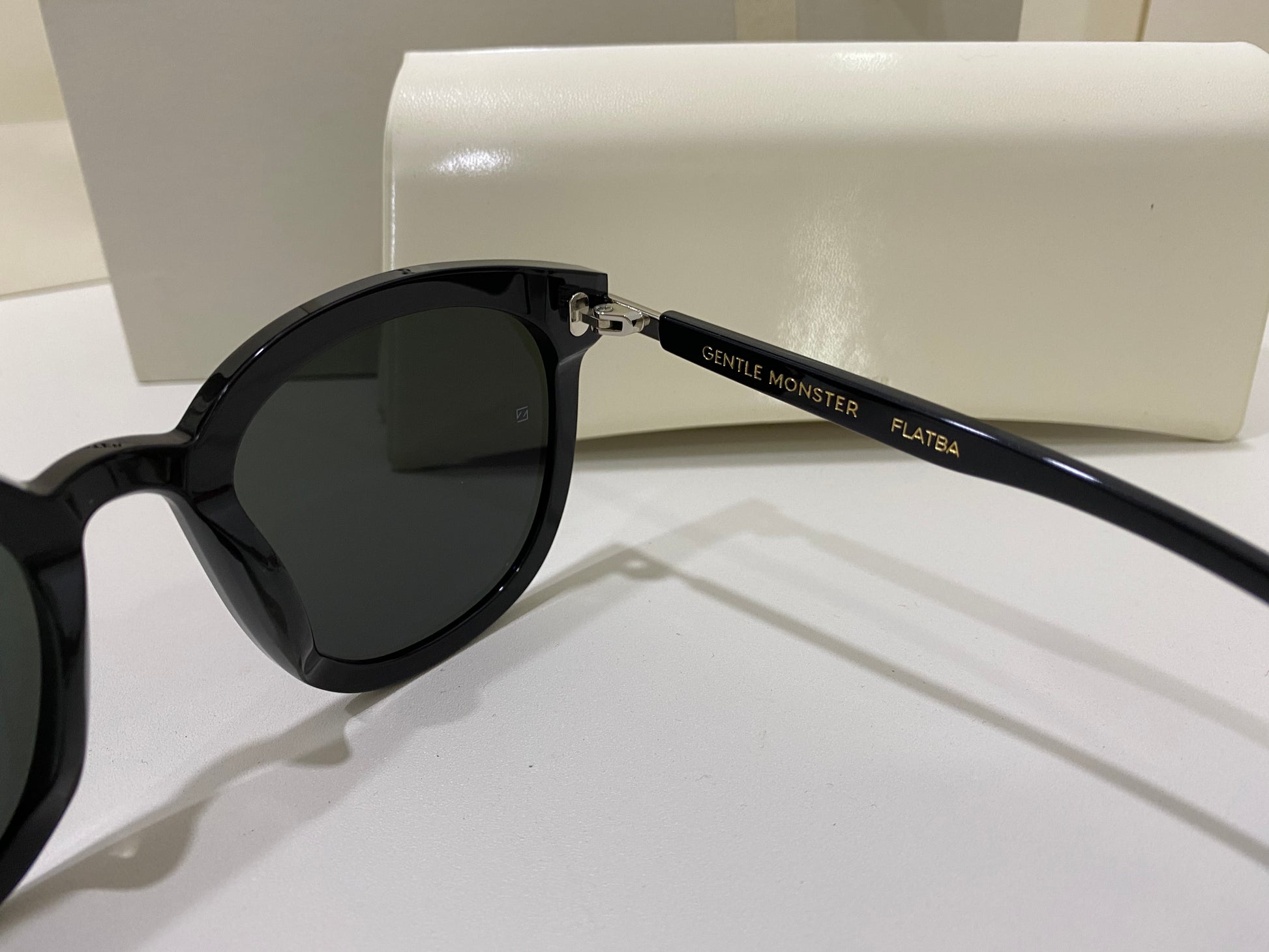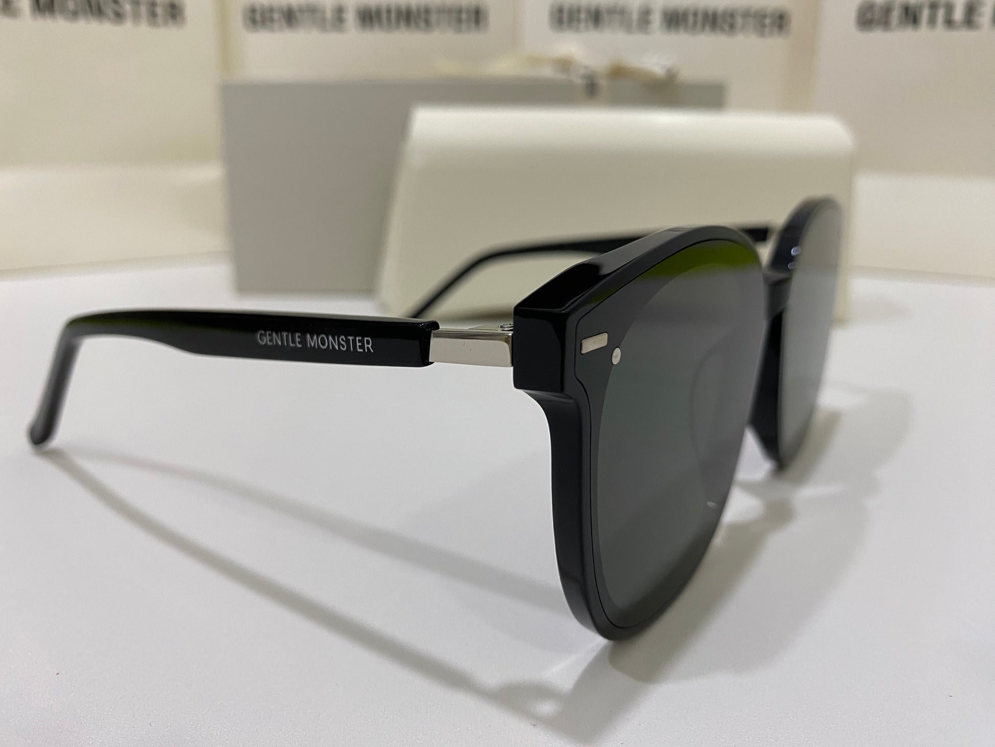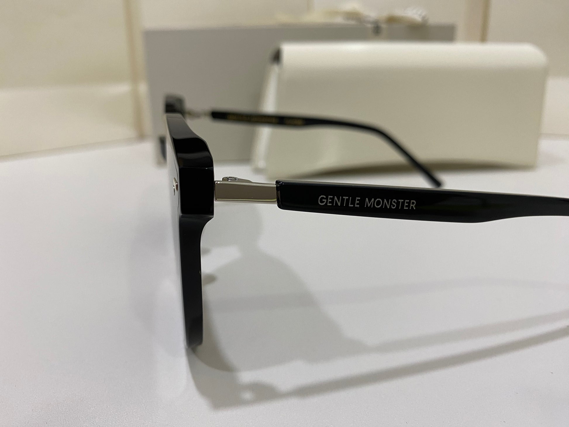Rectangular Acetate Flatba sunglasses with wide soft angles and studs atop the lens. Part of the first collection to use the Gentle Monster logo on the temple.
