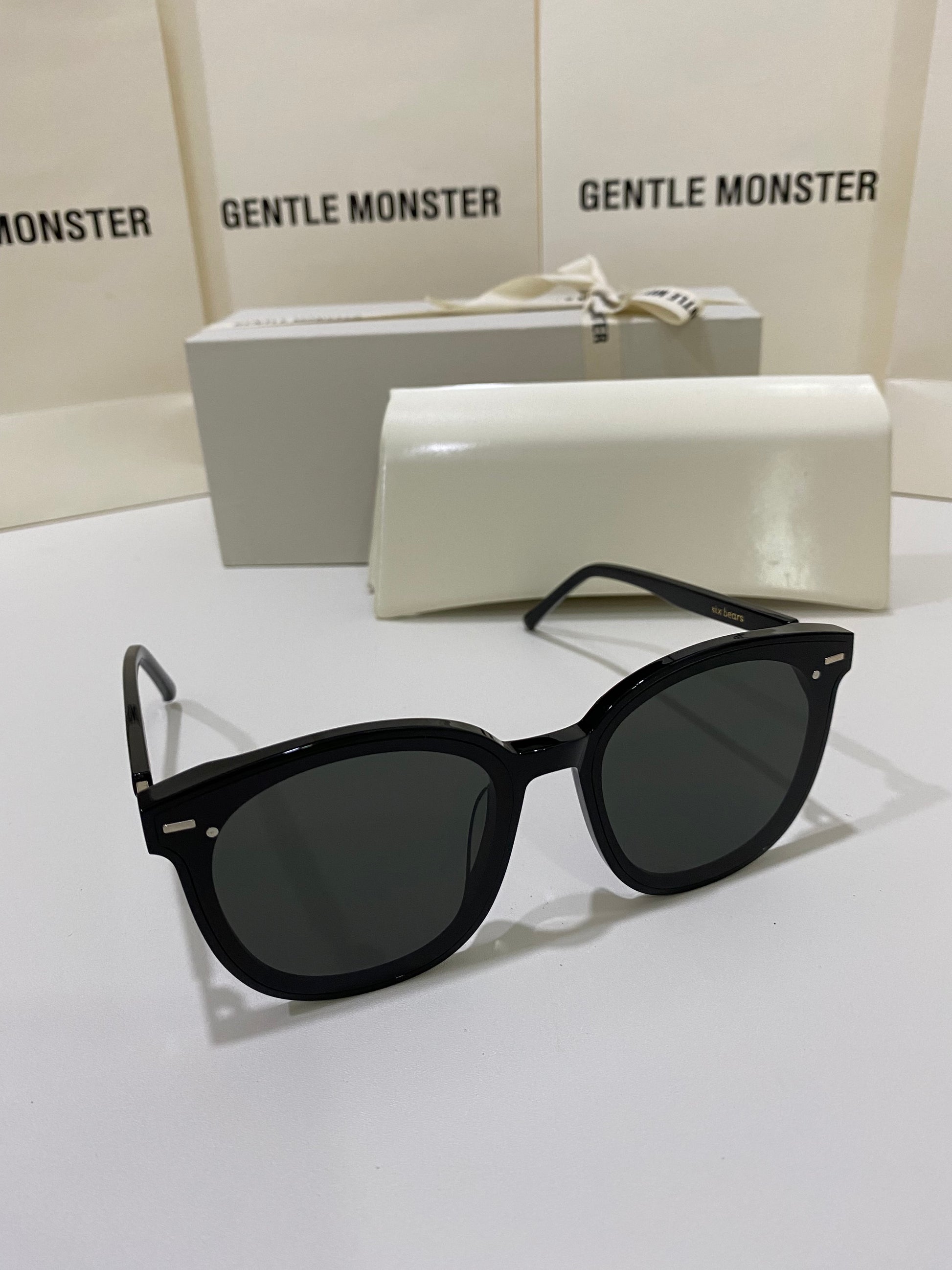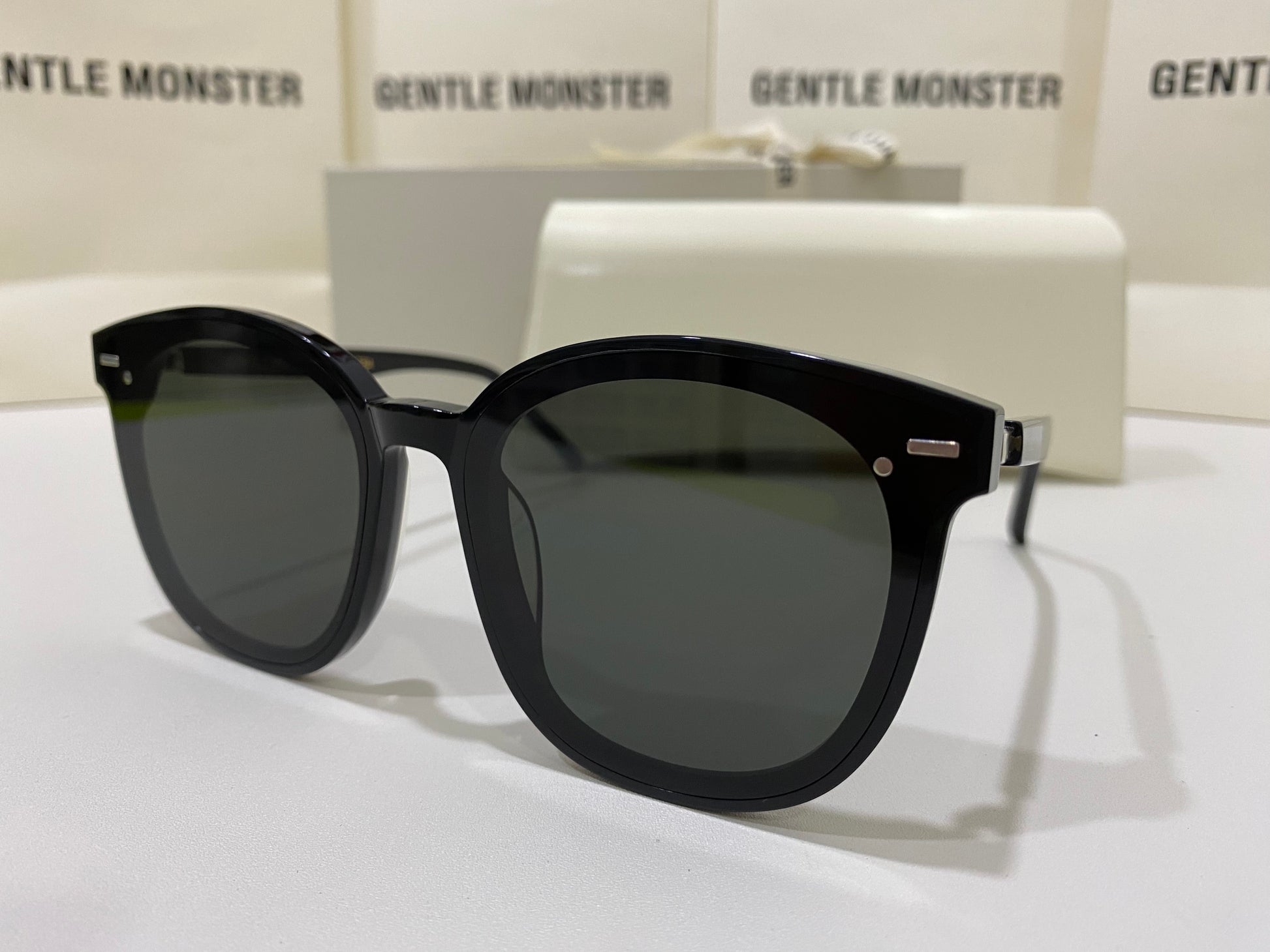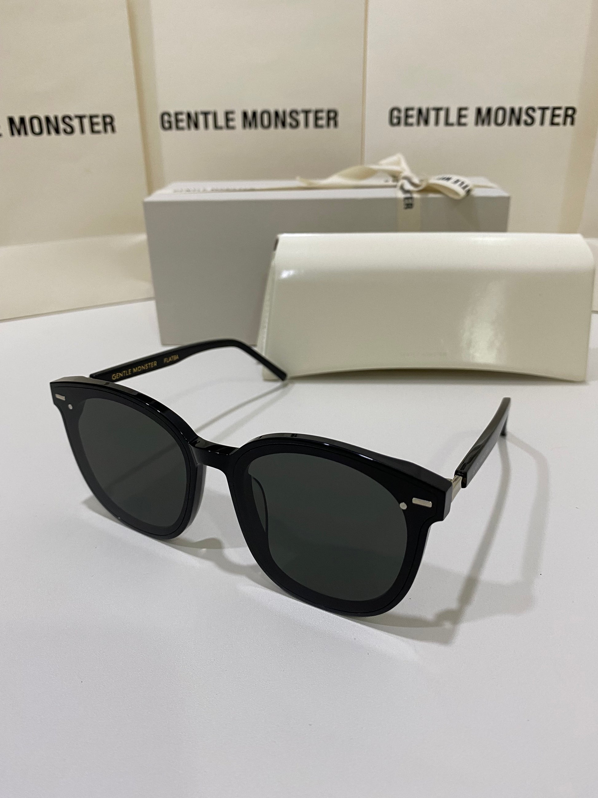 Rectangular Acetate Flatba sunglasses with wide soft angles and studs atop the lens. Part of the first collection to use the Gentle Monster logo on the temple.