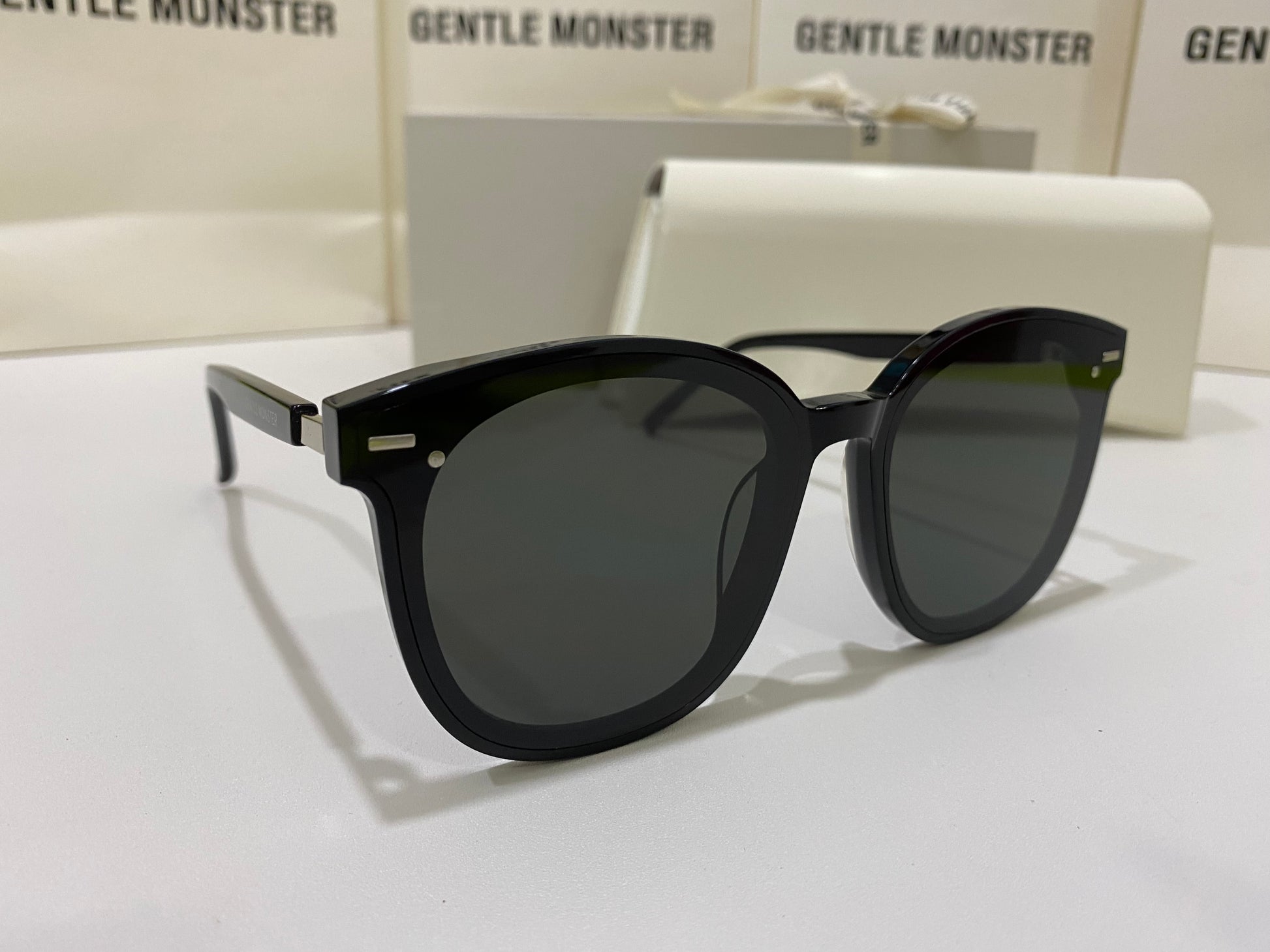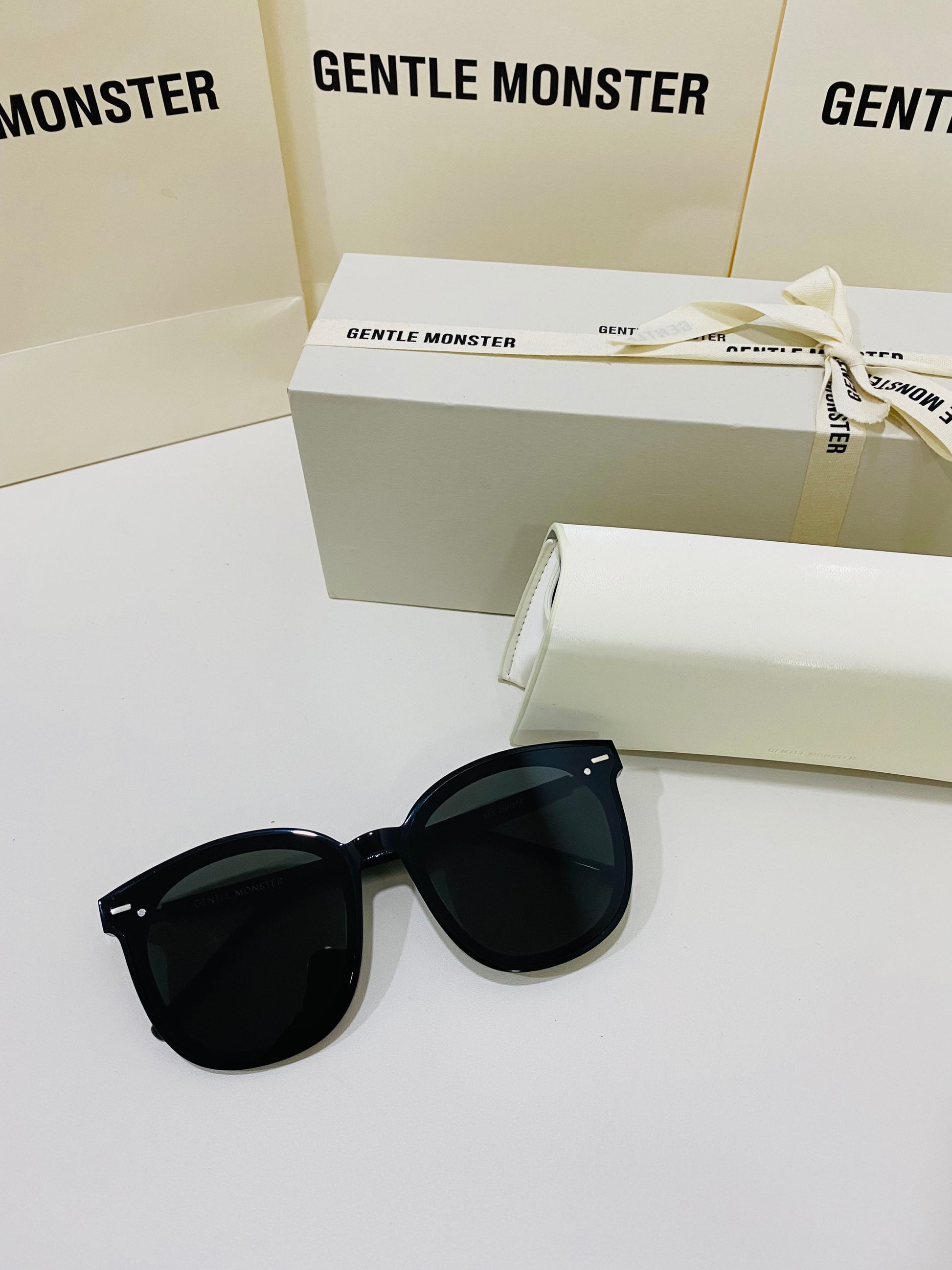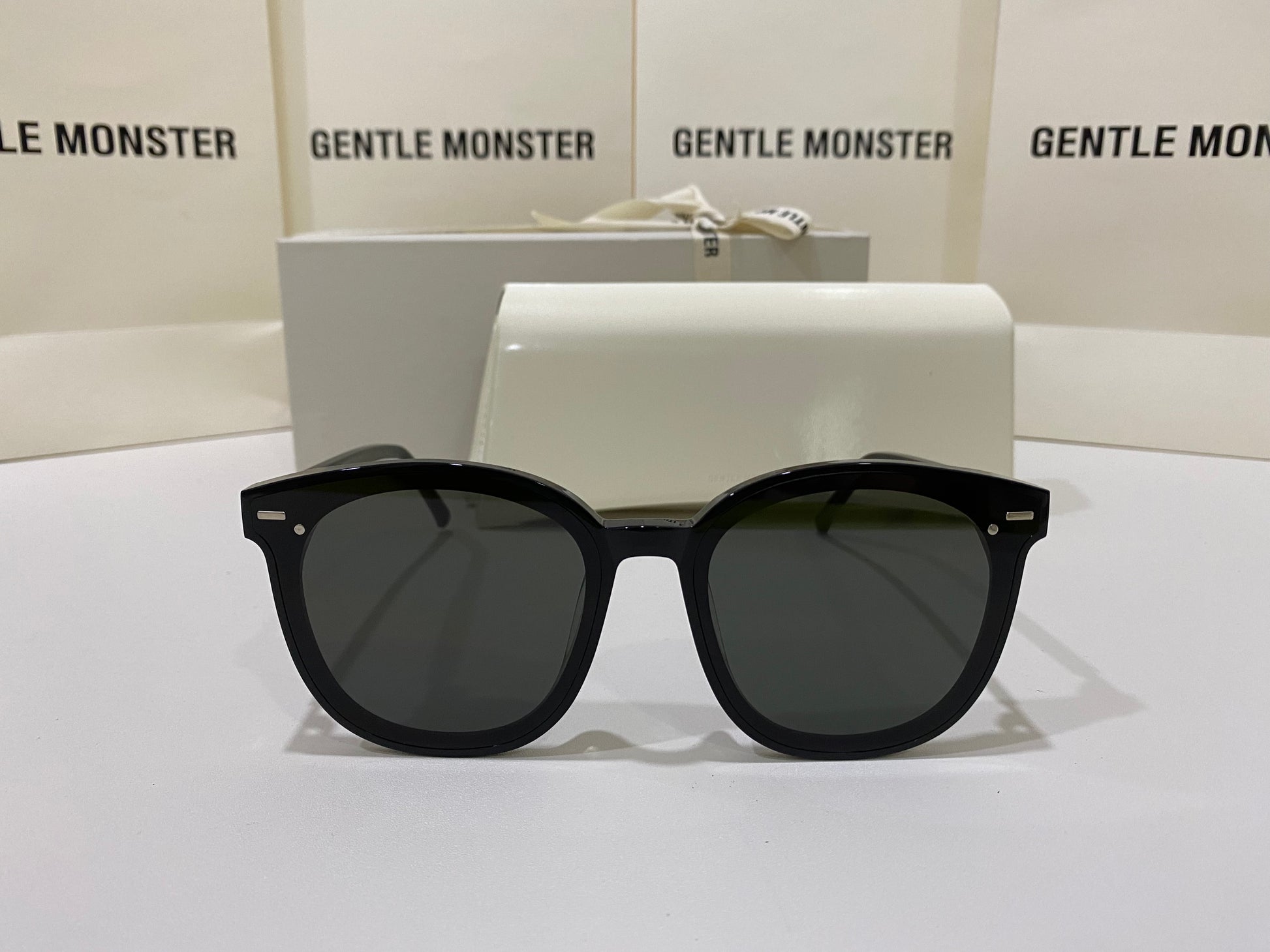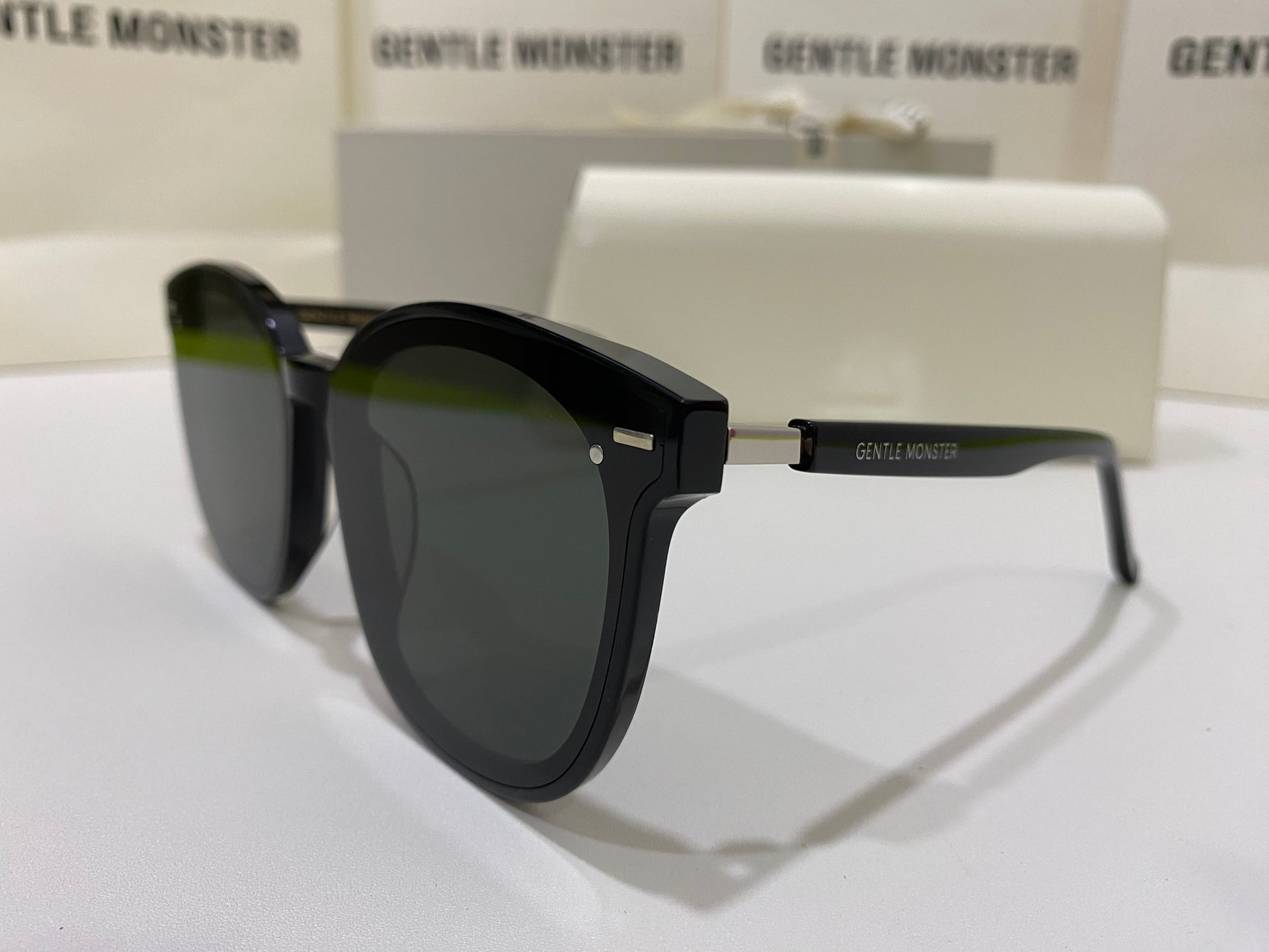 Rectangular Acetate Flatba sunglasses with wide soft angles and studs atop the lens. Part of the first collection to use the Gentle Monster logo on the temple.