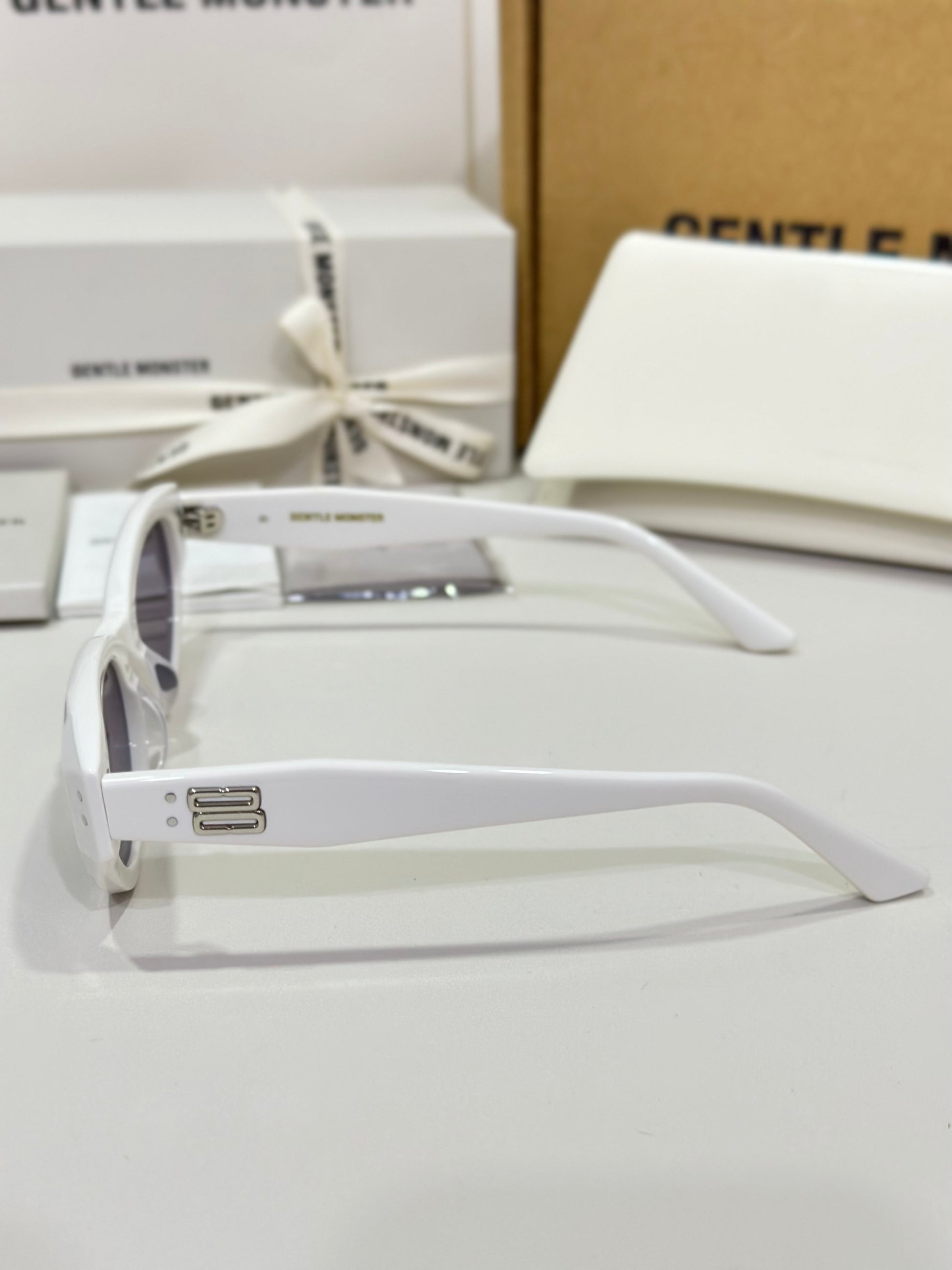 Discover the Rococo W2 sunglasses from Gentle Monster’s 2023 Collection. The straight lines of this voluminous silhouette immediately draw the eye to a composition that stands out for its remarkable design. Featuring a clean white frame, the iconic metal detail on the temples adds a touch of sophistication to this piece.