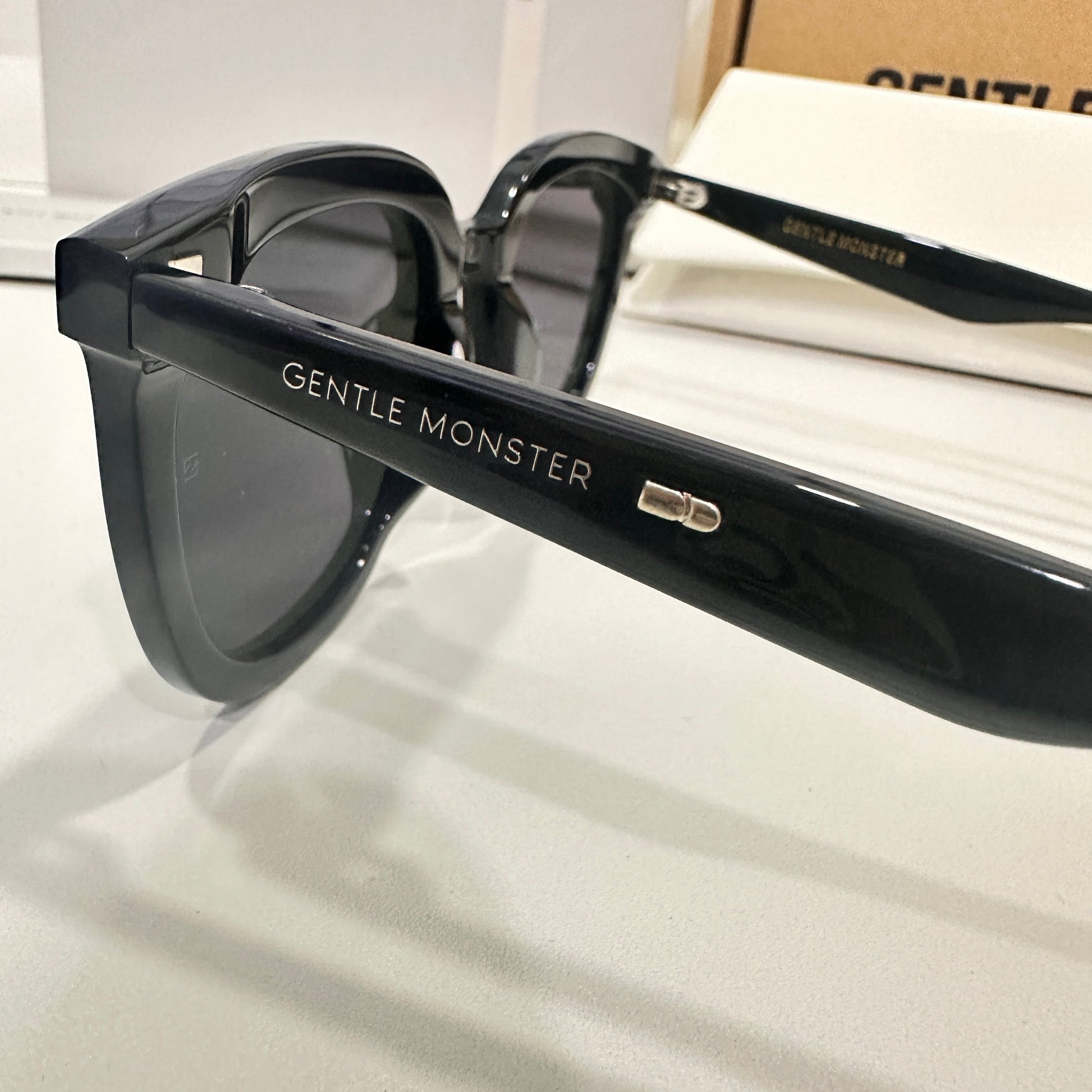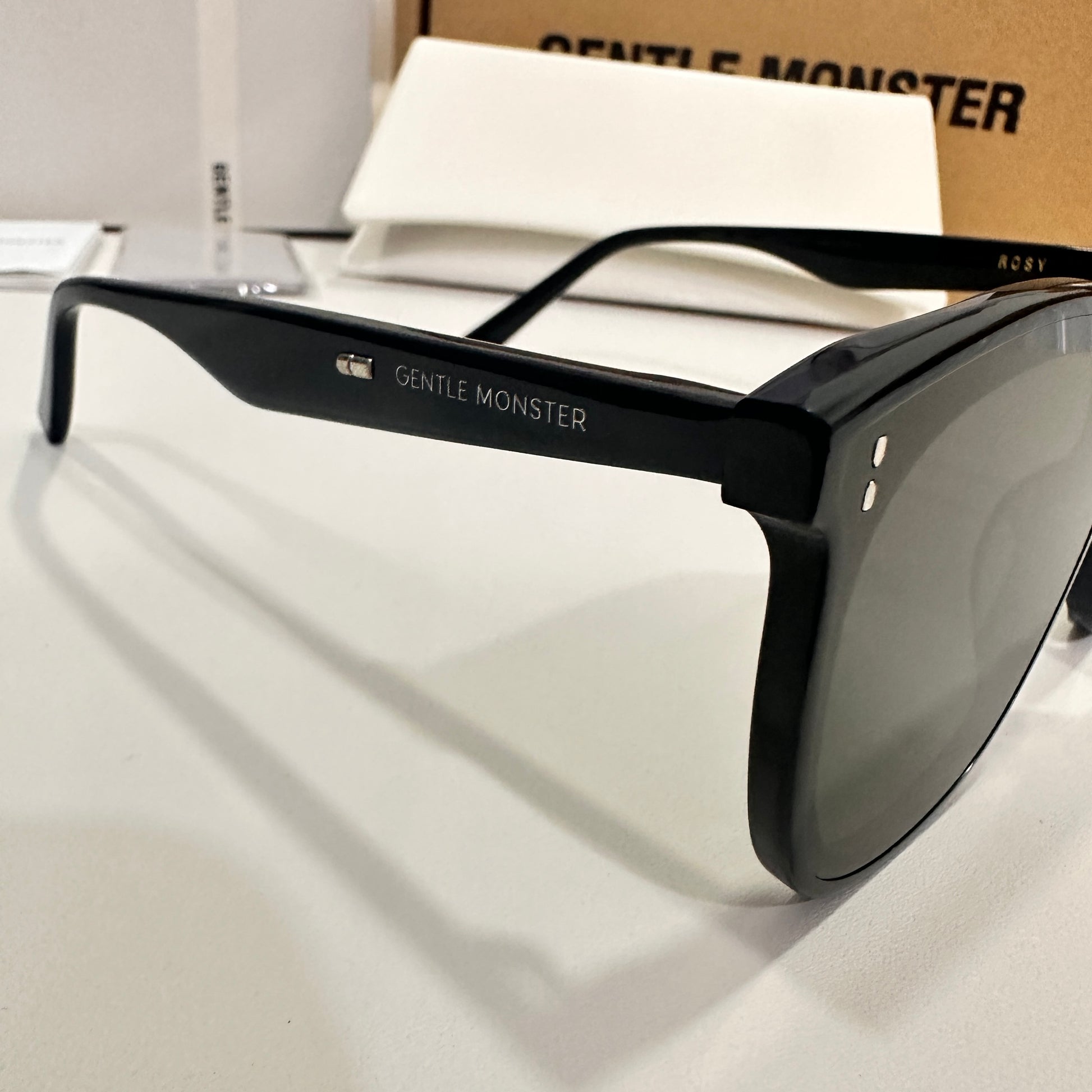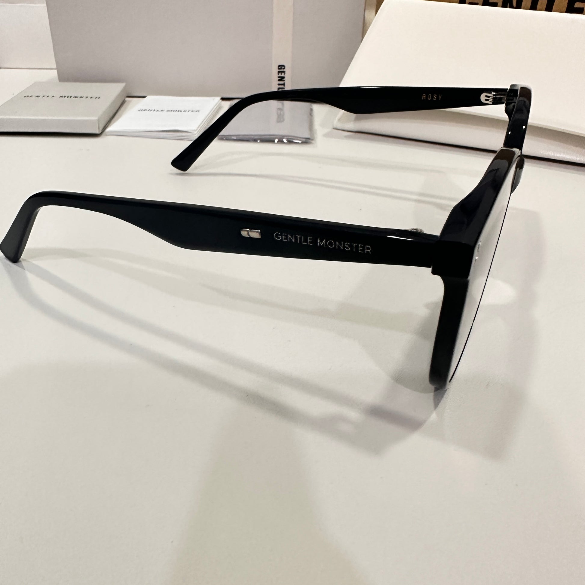 Rosy 01 is a square silhouetted black Flatba frame fitted with 99.9% UV protected black lenses. The soft curves of the front and temples are adorned with metal accents.