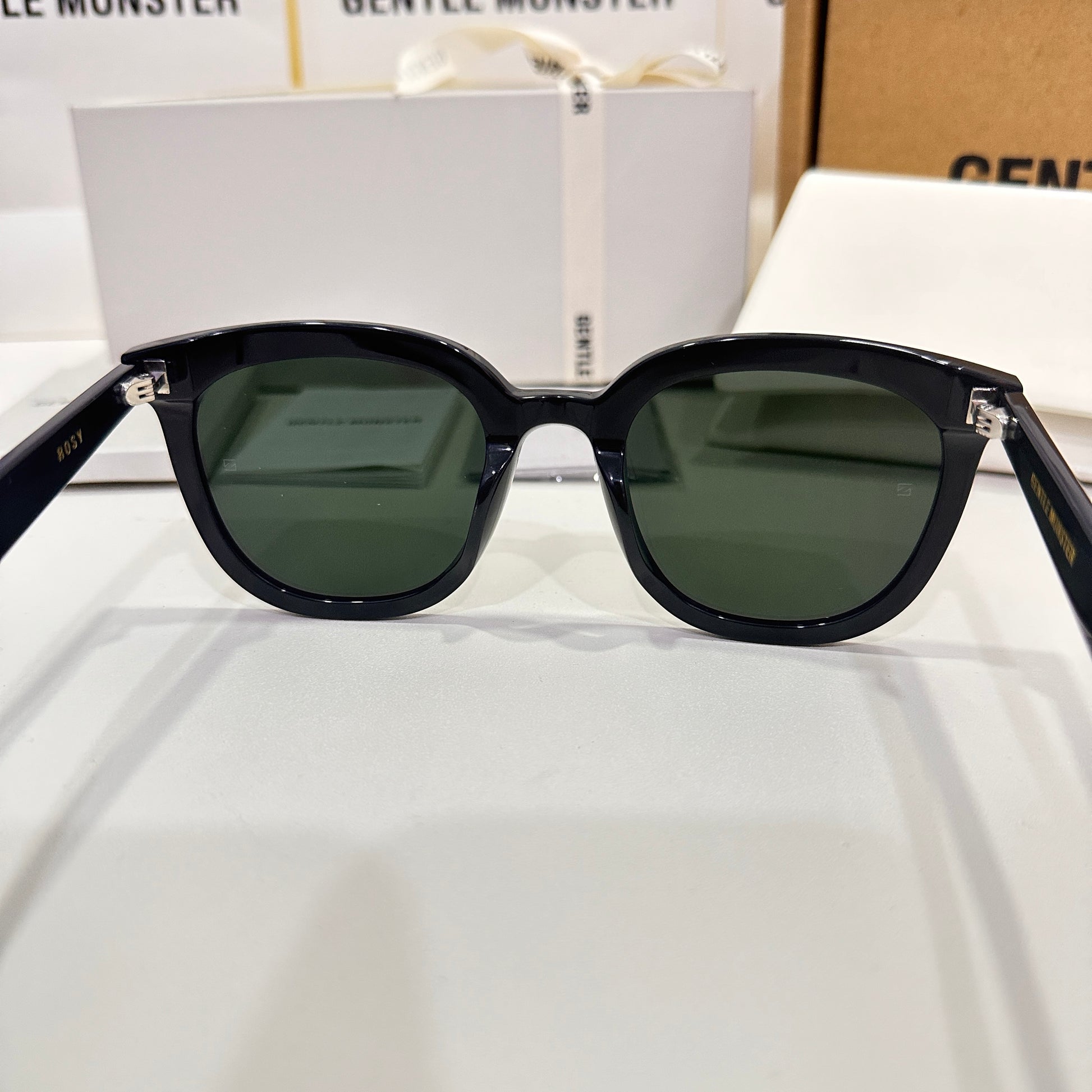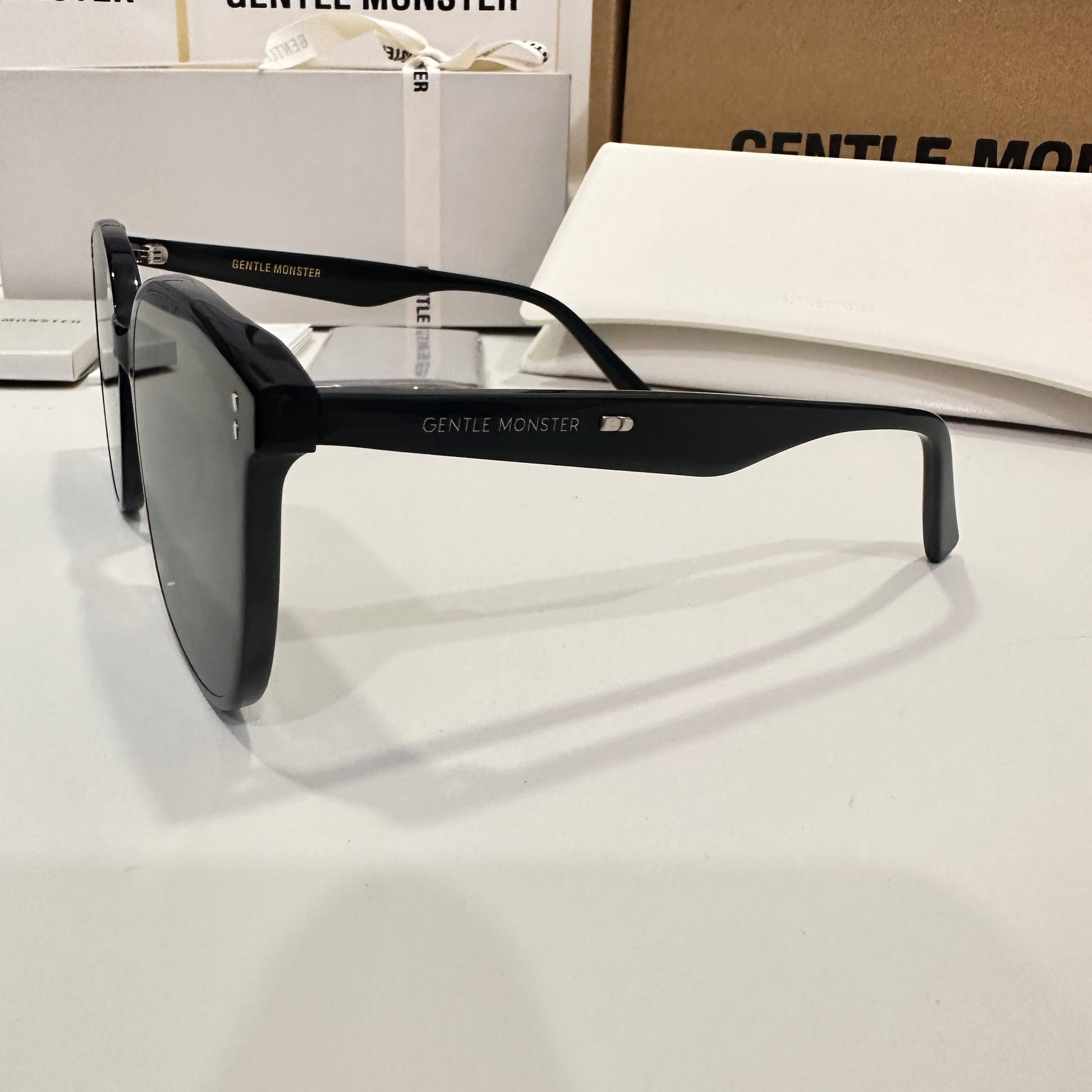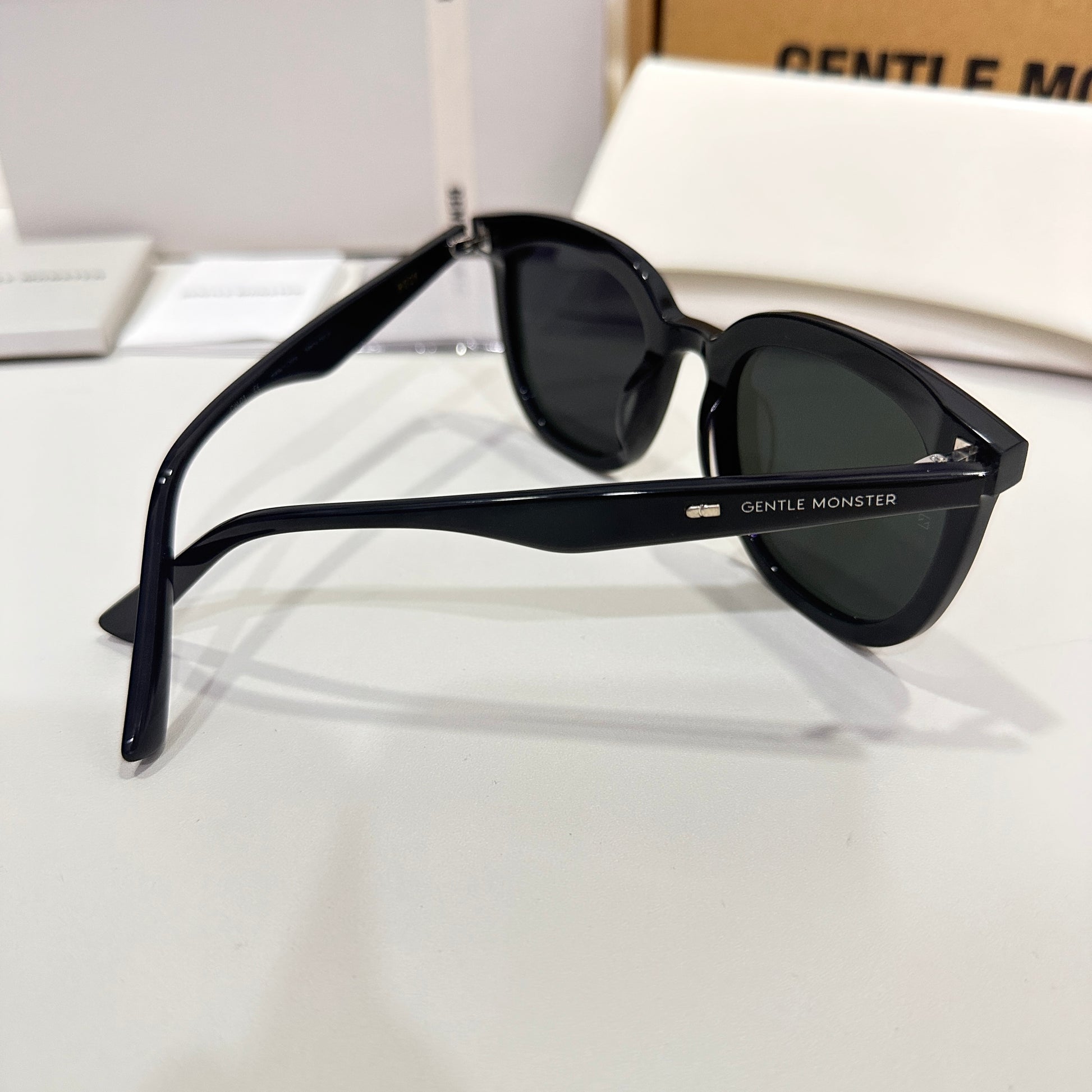 Rosy 01 is a square silhouetted black Flatba frame fitted with 99.9% UV protected black lenses. The soft curves of the front and temples are adorned with metal accents.