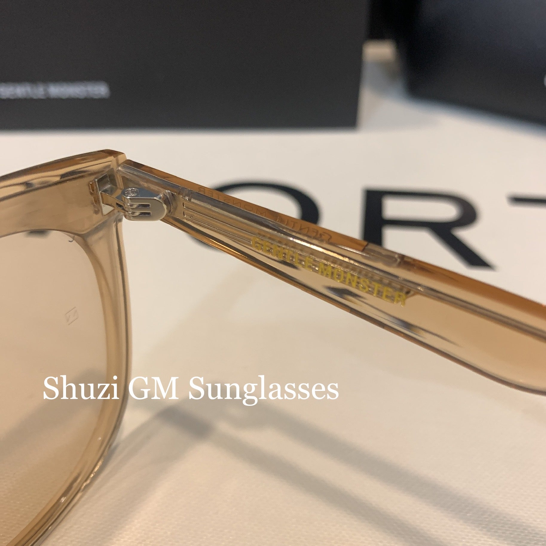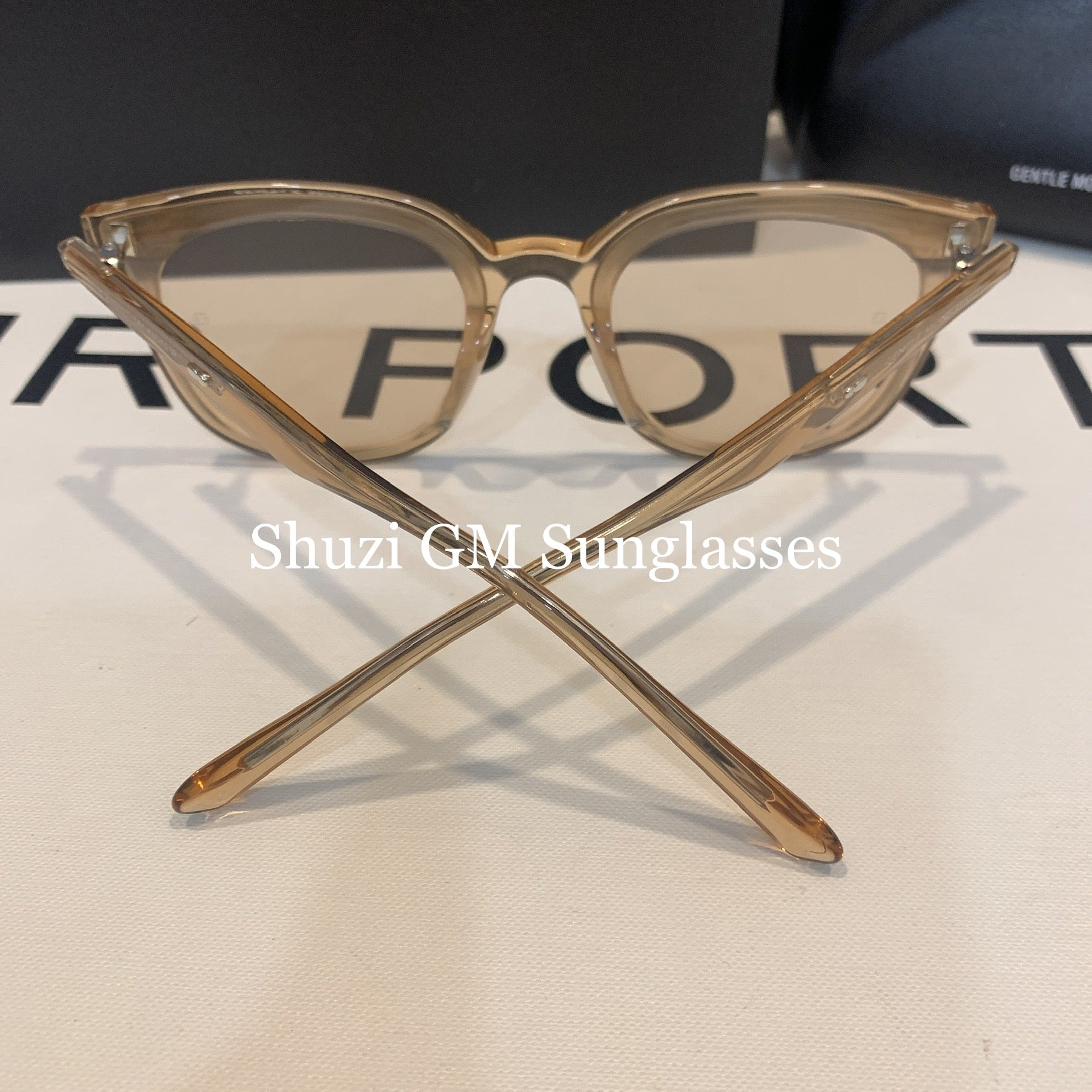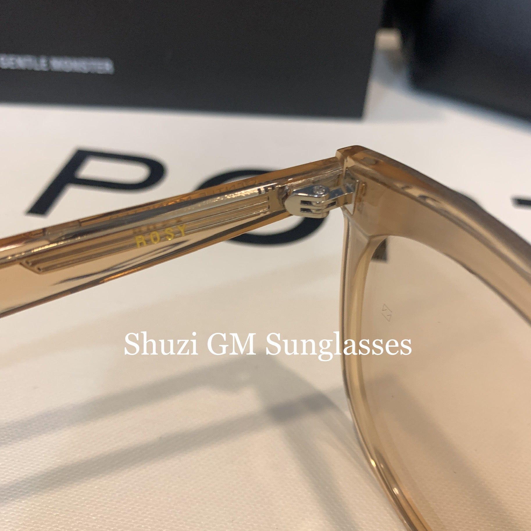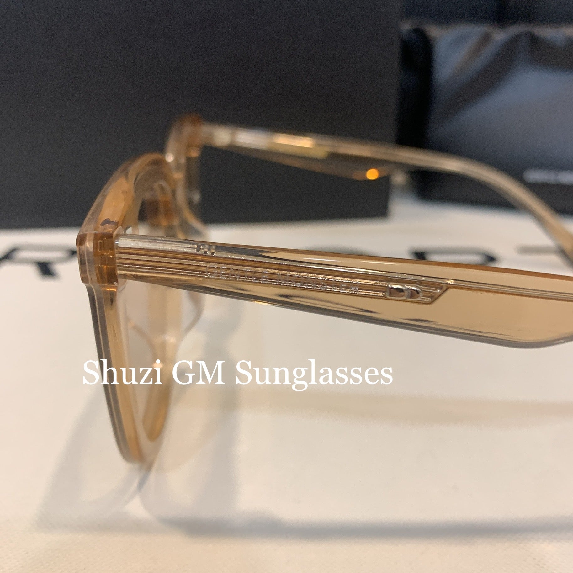 Rosy YC5 is a square silhouetted clear yellow Flatba frame fitted with 99.9% UV protected brown lenses. The soft curves of the front and temples are adorned with metal accents.