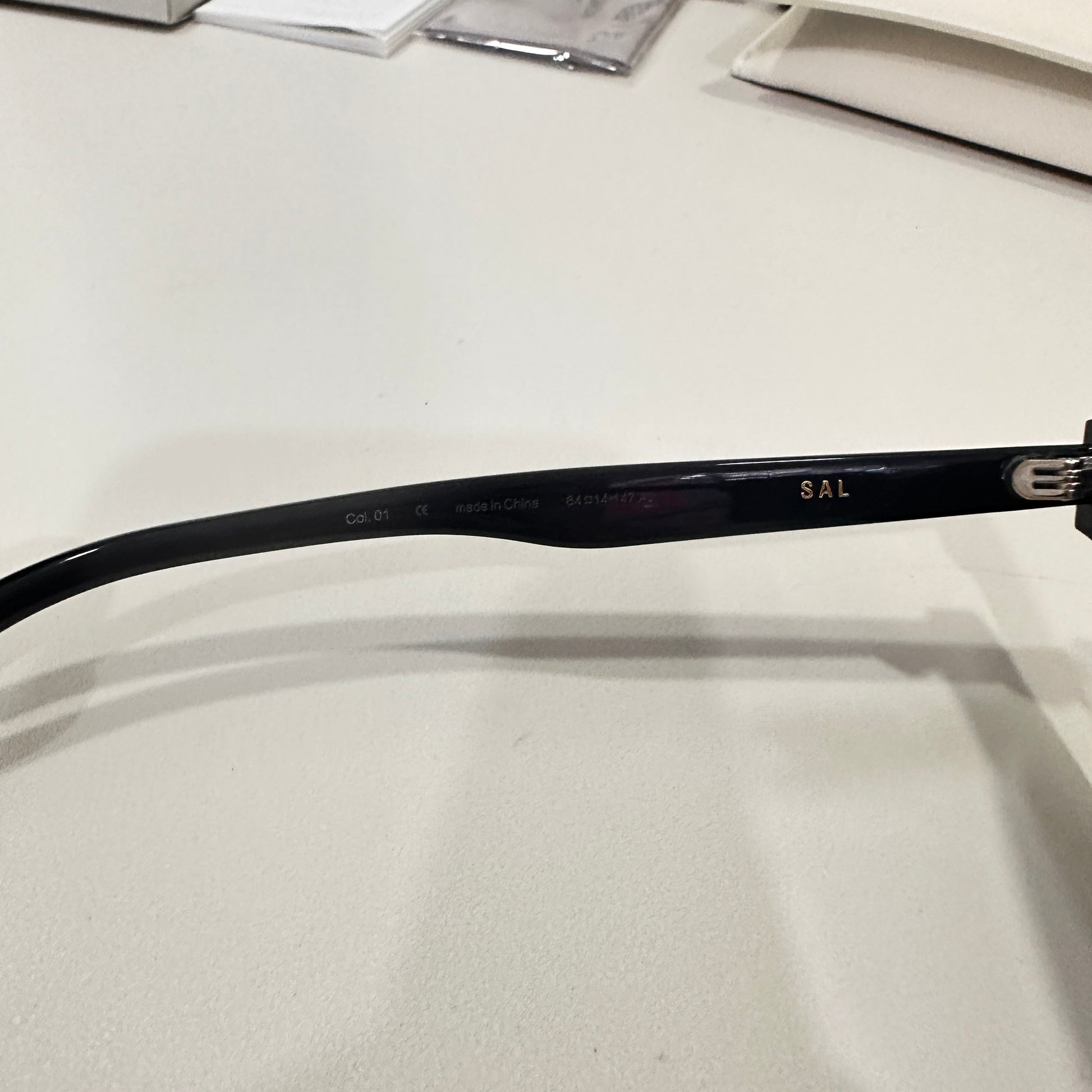 Sal 01 is an oversized black square Flatba frame. The angled corners of bottom and linear design of the top merge together to perfectly blend the frame front. The 99.9% UV protected black lenses are accentuated with a metal detail.