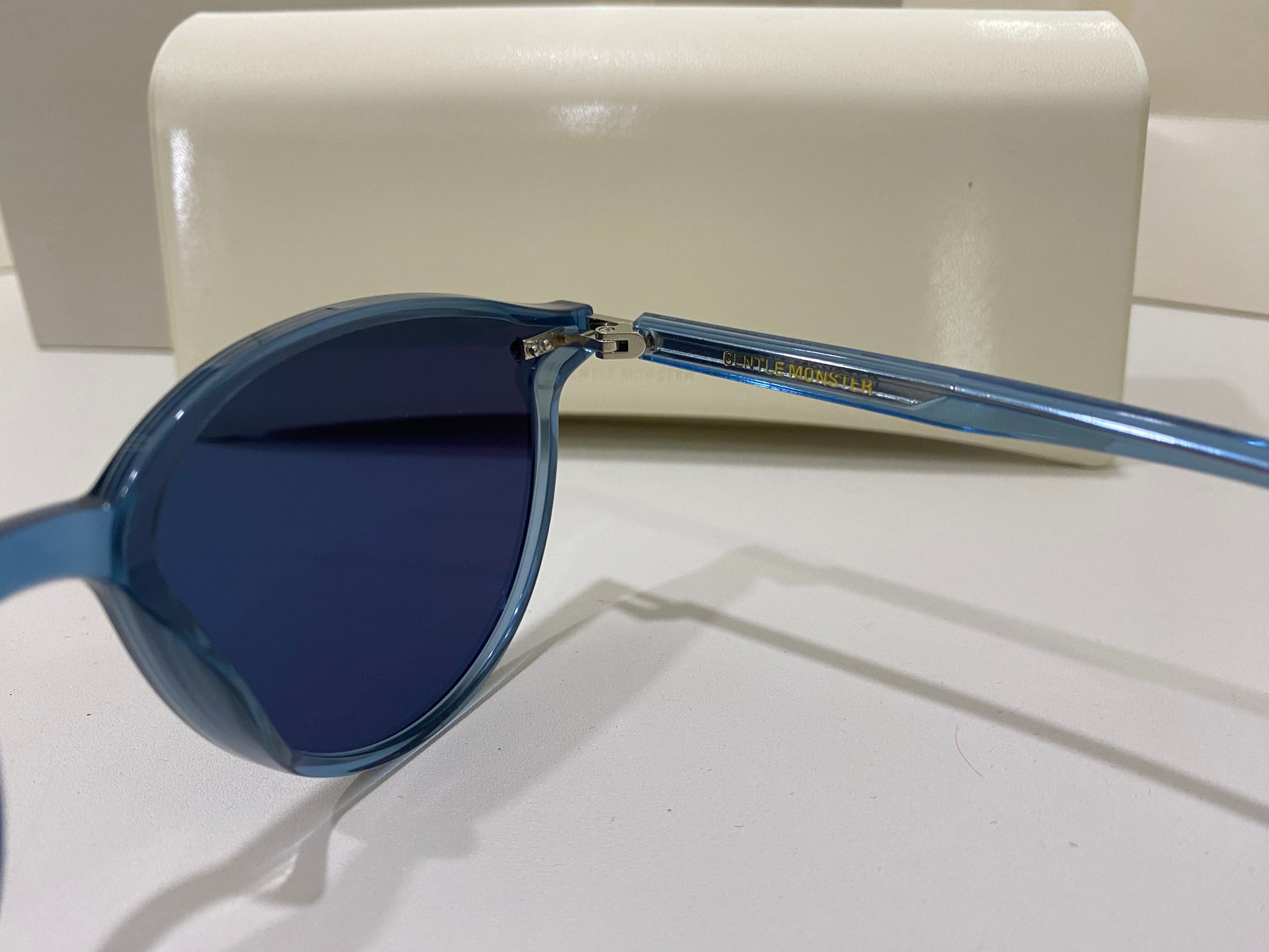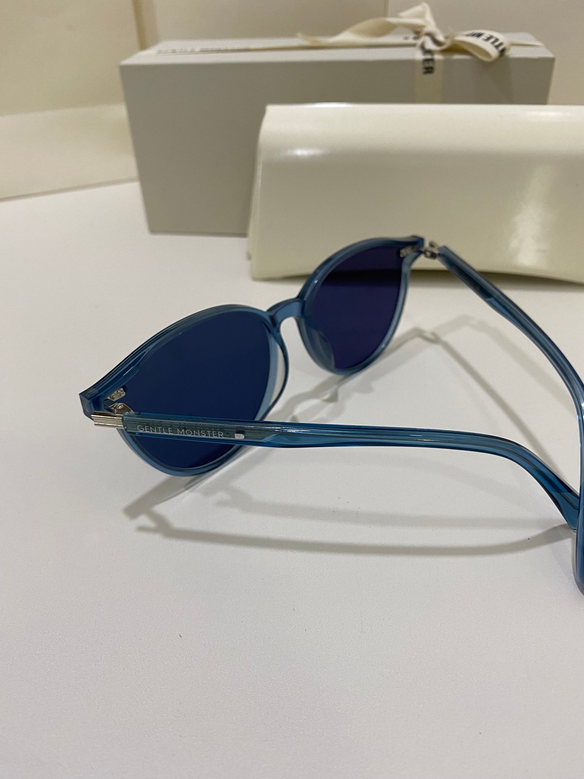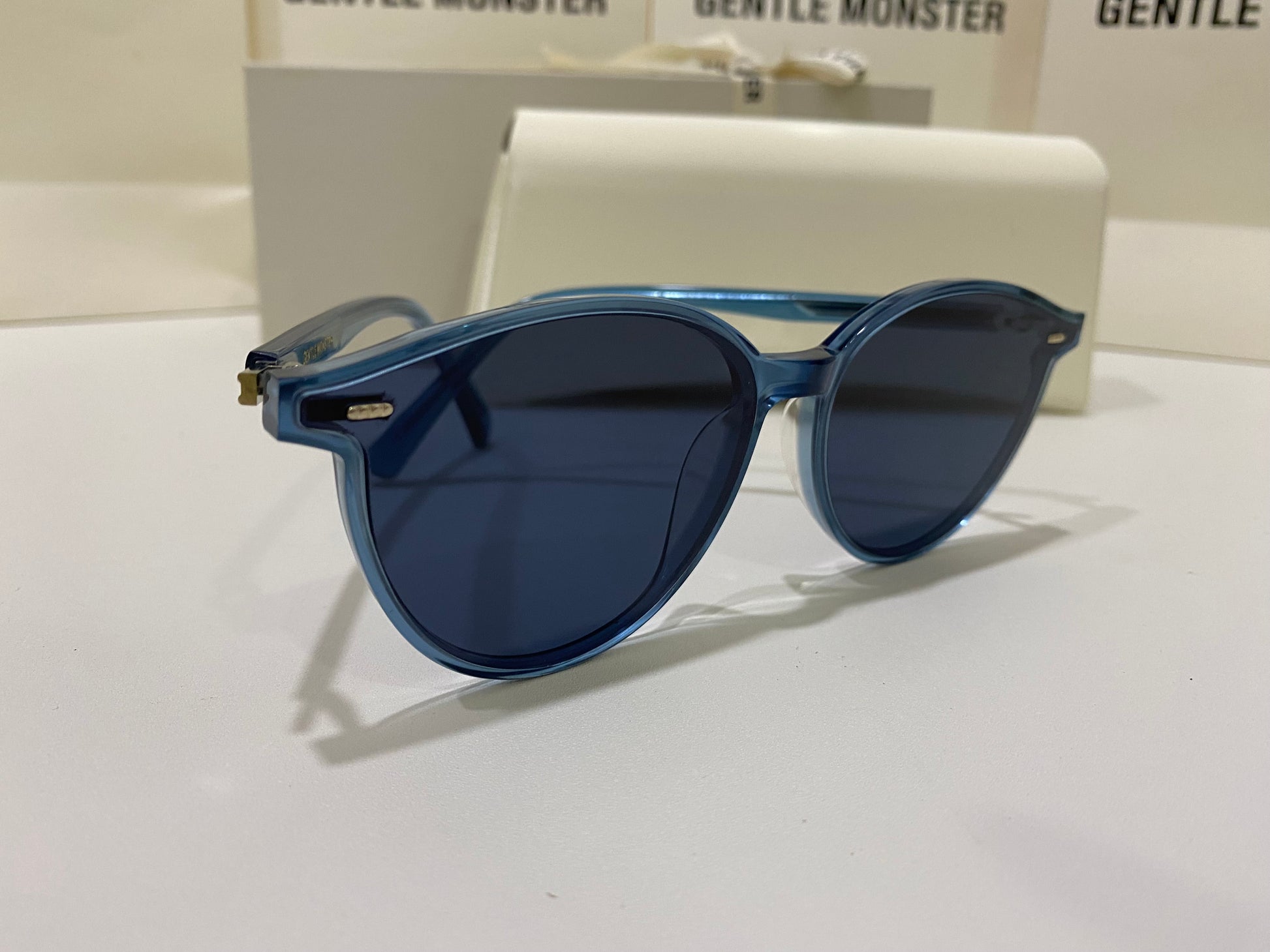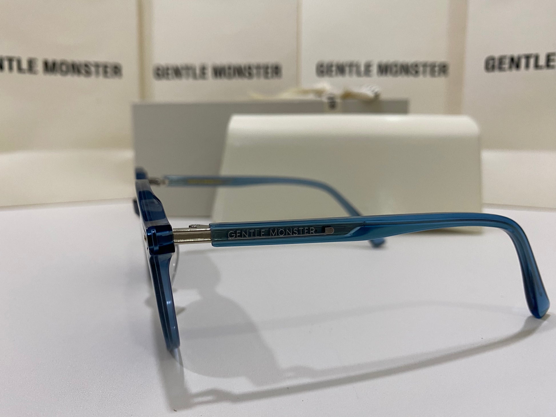 Boston style Flatbar frameNew GENTLE MONSTER logoBlue tinted lensesFrame Front: 147.1mm, Frame Side: 144.1mm
