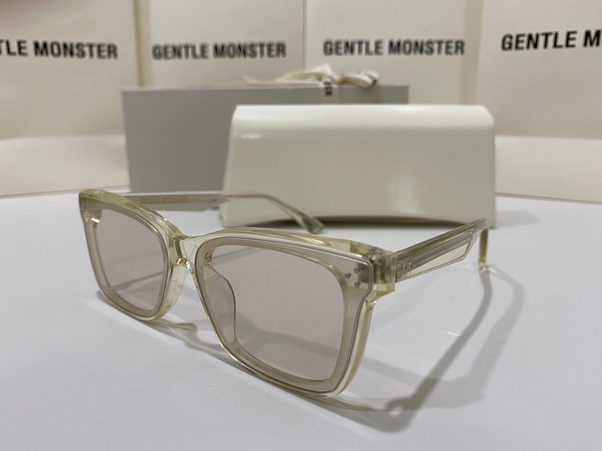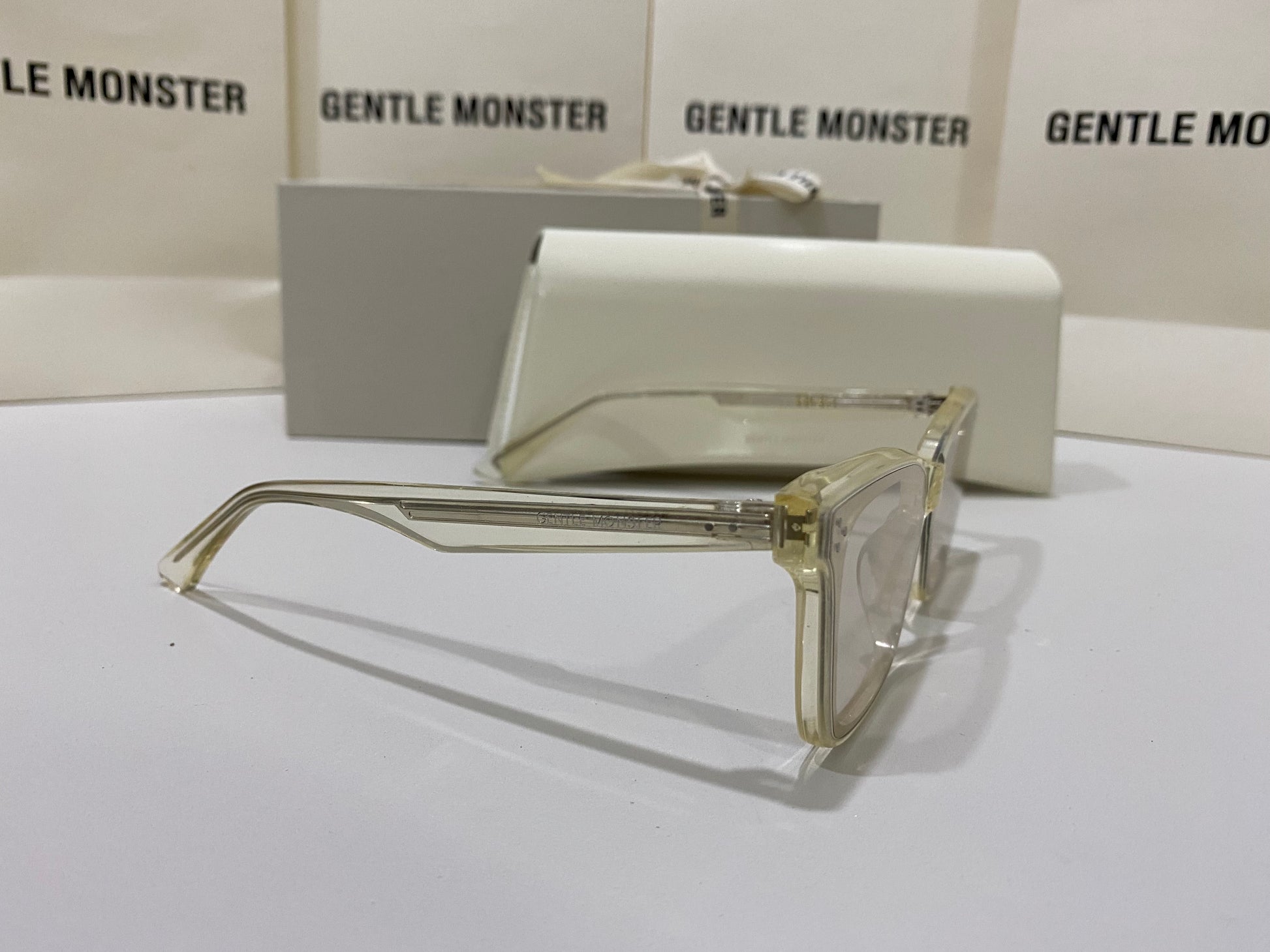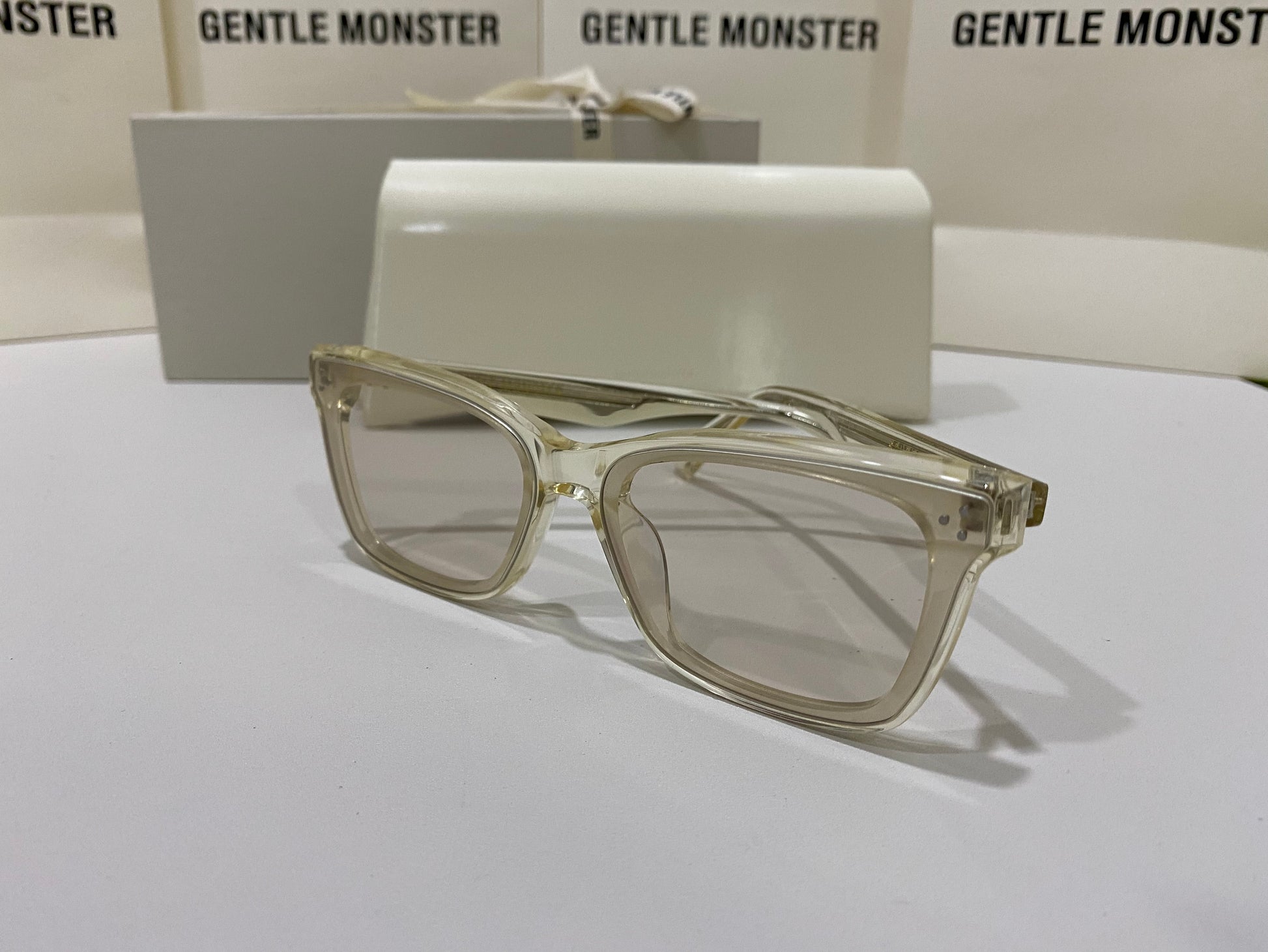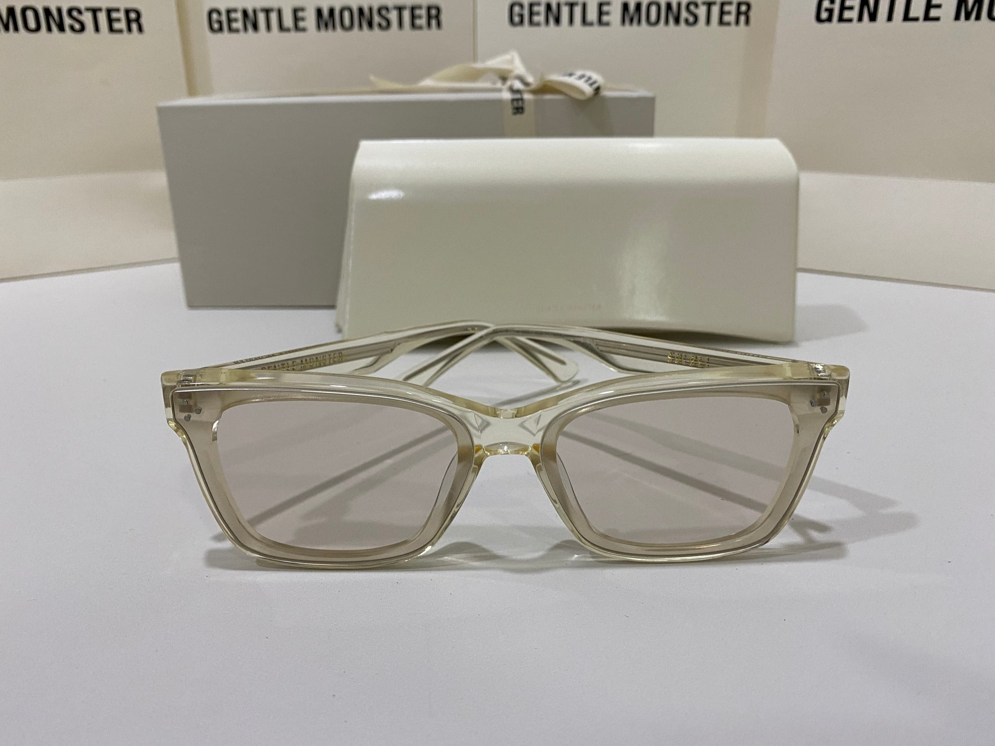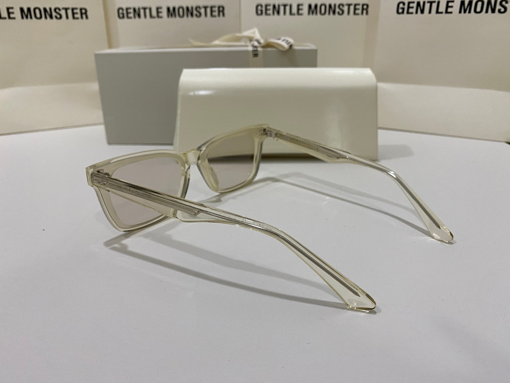 Solbei BRC2 is a beige cat-eye Flatba frame with a barely-there slope over the lenses and frame front to create a sophisticated design. This style is accentuated with three circular silver pins on each of the 99.9% UV protected beige lenses and engraved Gentle Monster logos in silver on the temples.