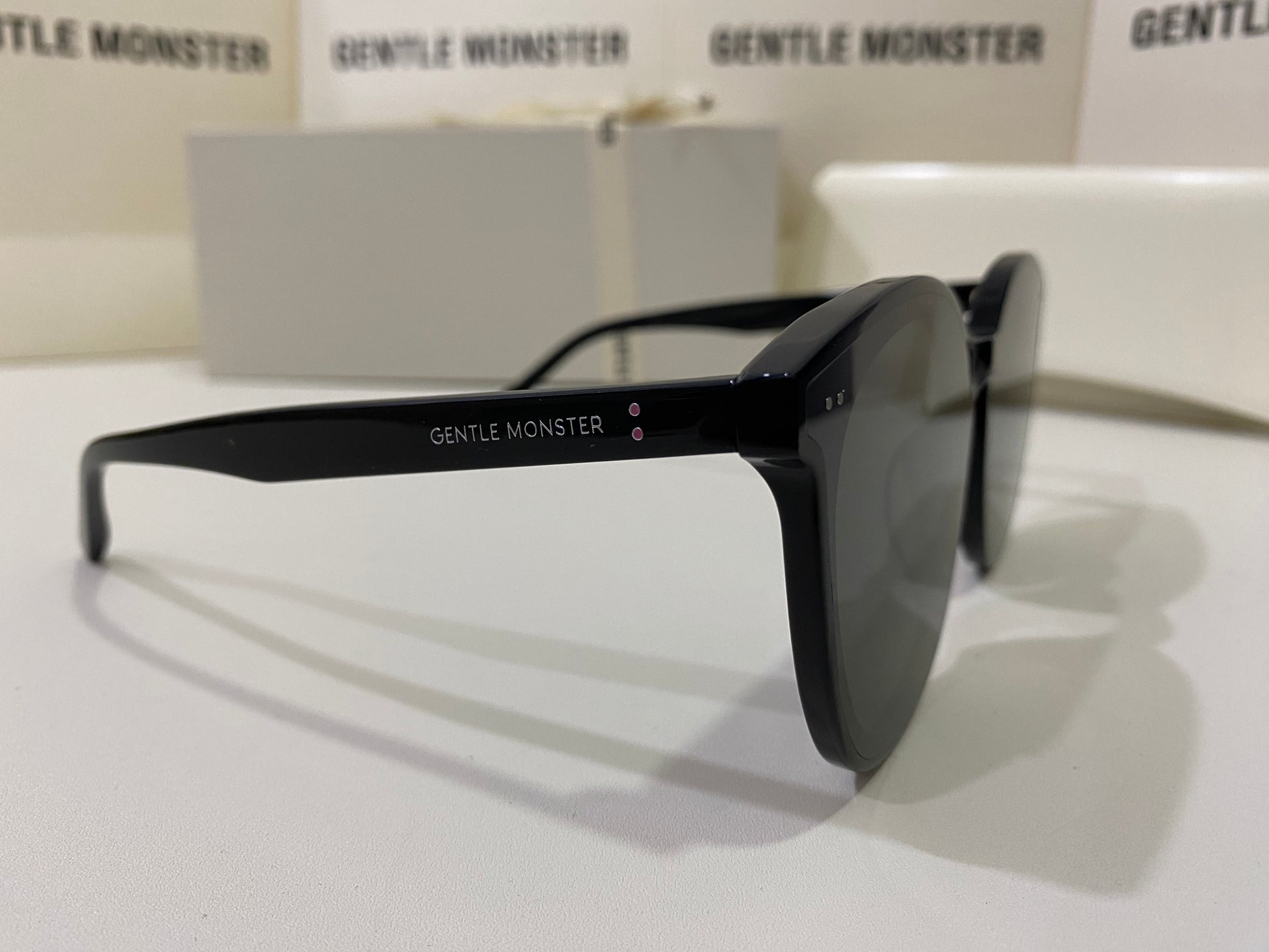 The 2020 New Flatba Series presents Solo 01, an oversized round frame. With 99.9% UV protected nylon lenses, this style is accentuated with two circular silver pins, complemented with engraved Gentle Monster logos in silver on the temples.