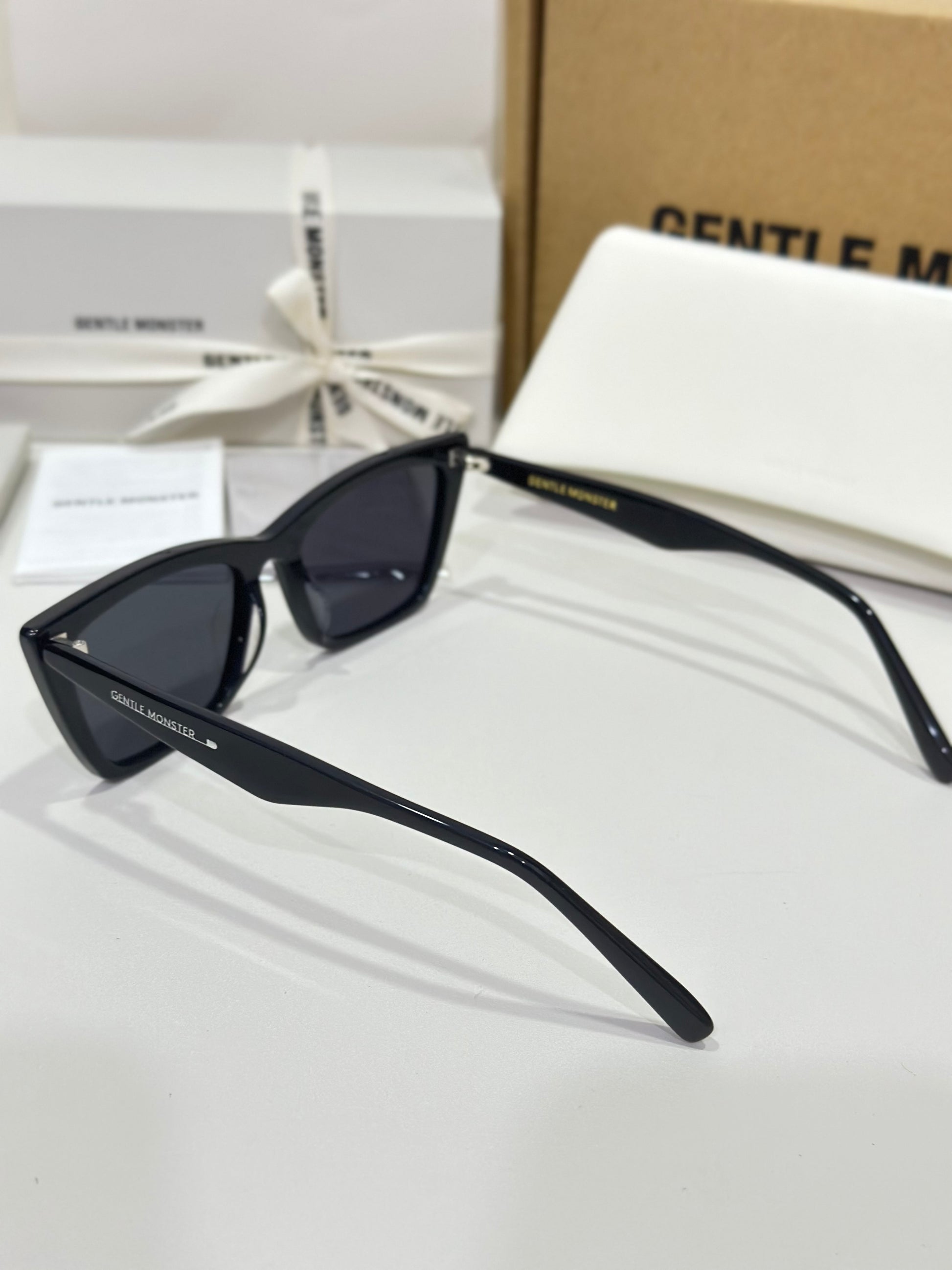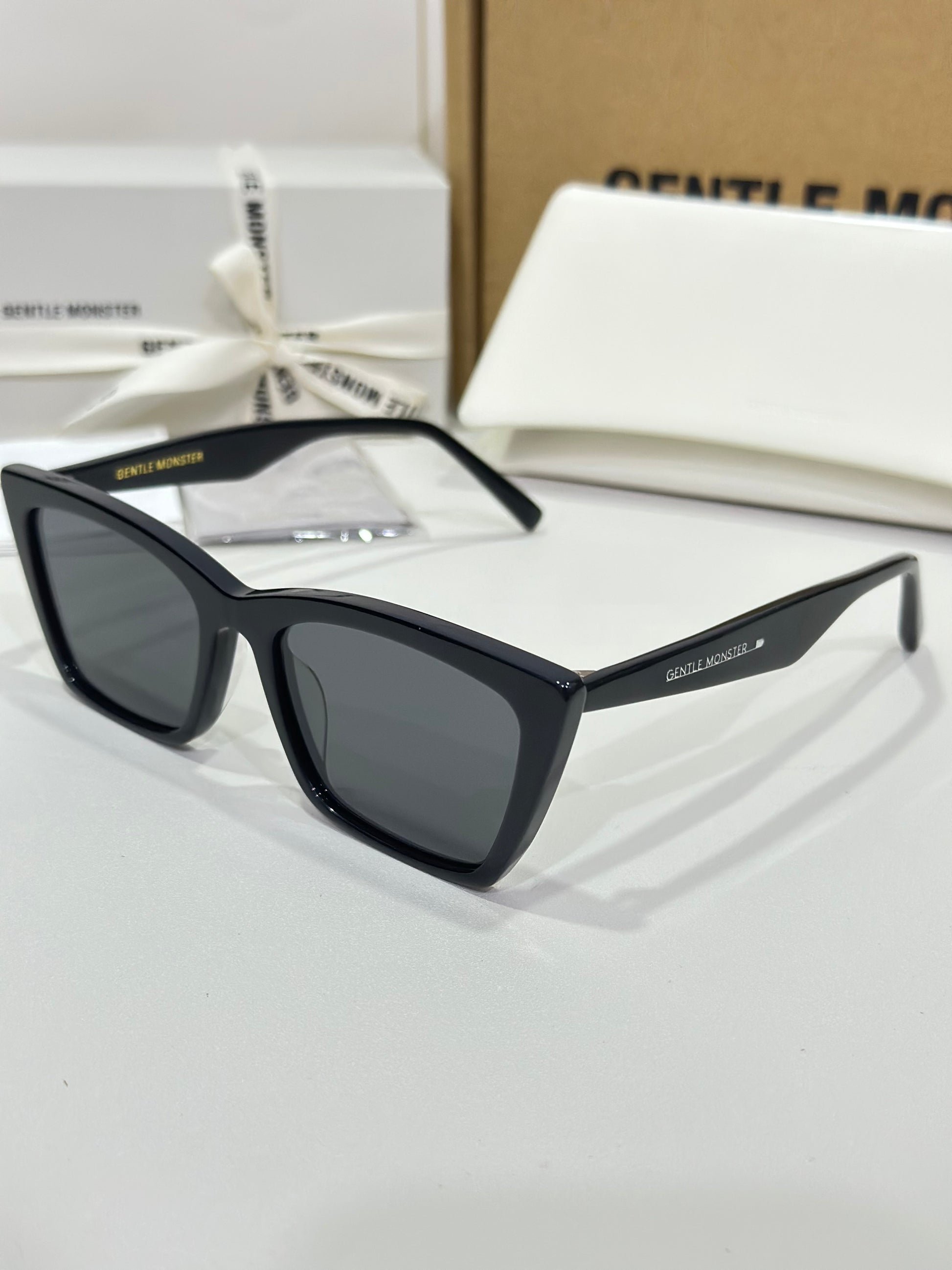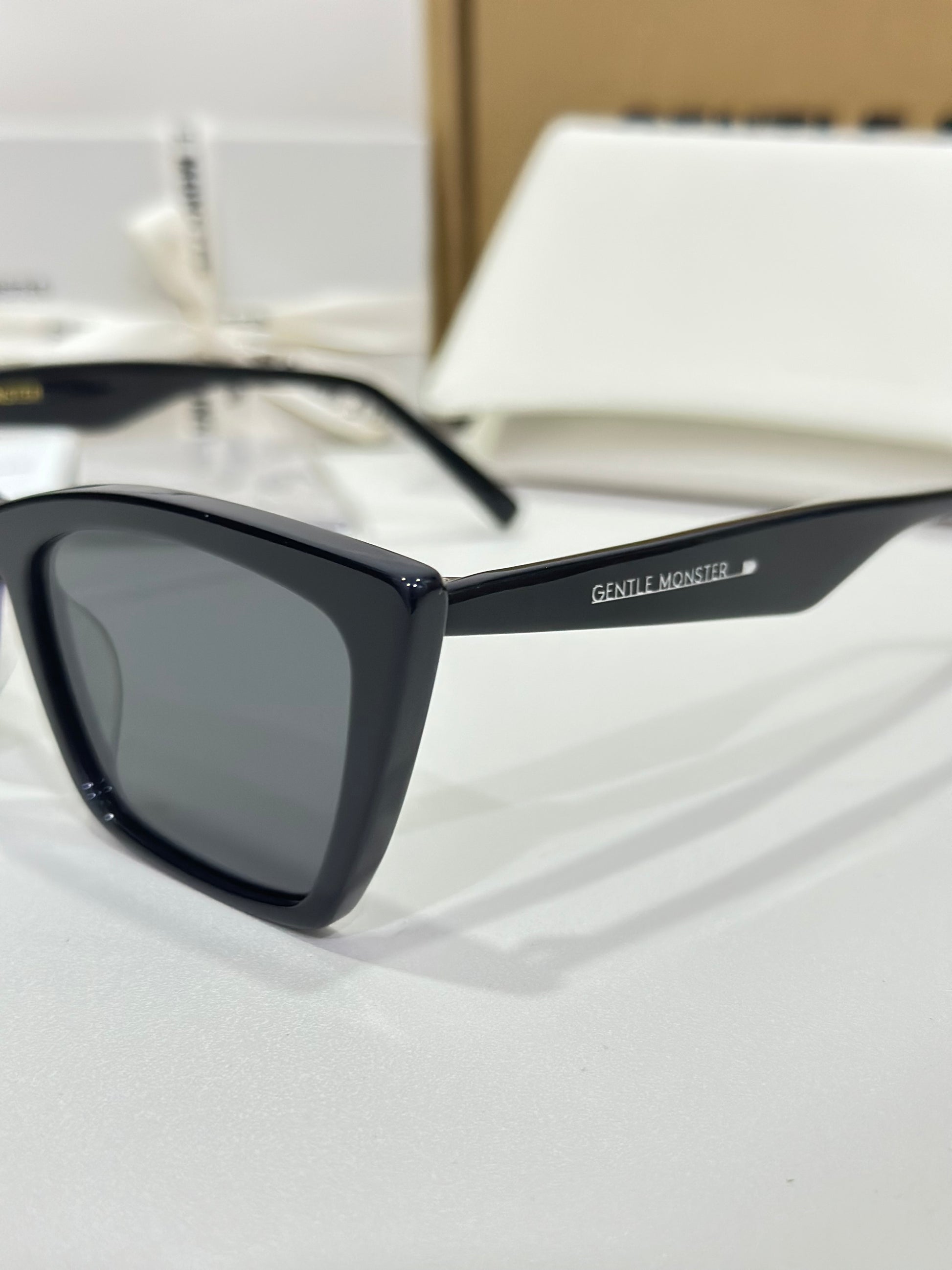 Acetate cat-eye frameLaser engraved logosFrame Front: 148.5mm, Frame Side: 146.6mm