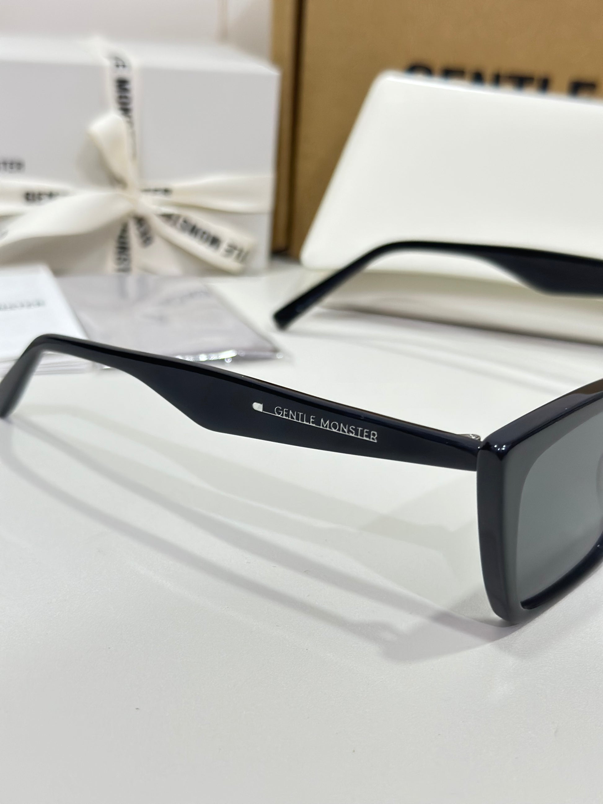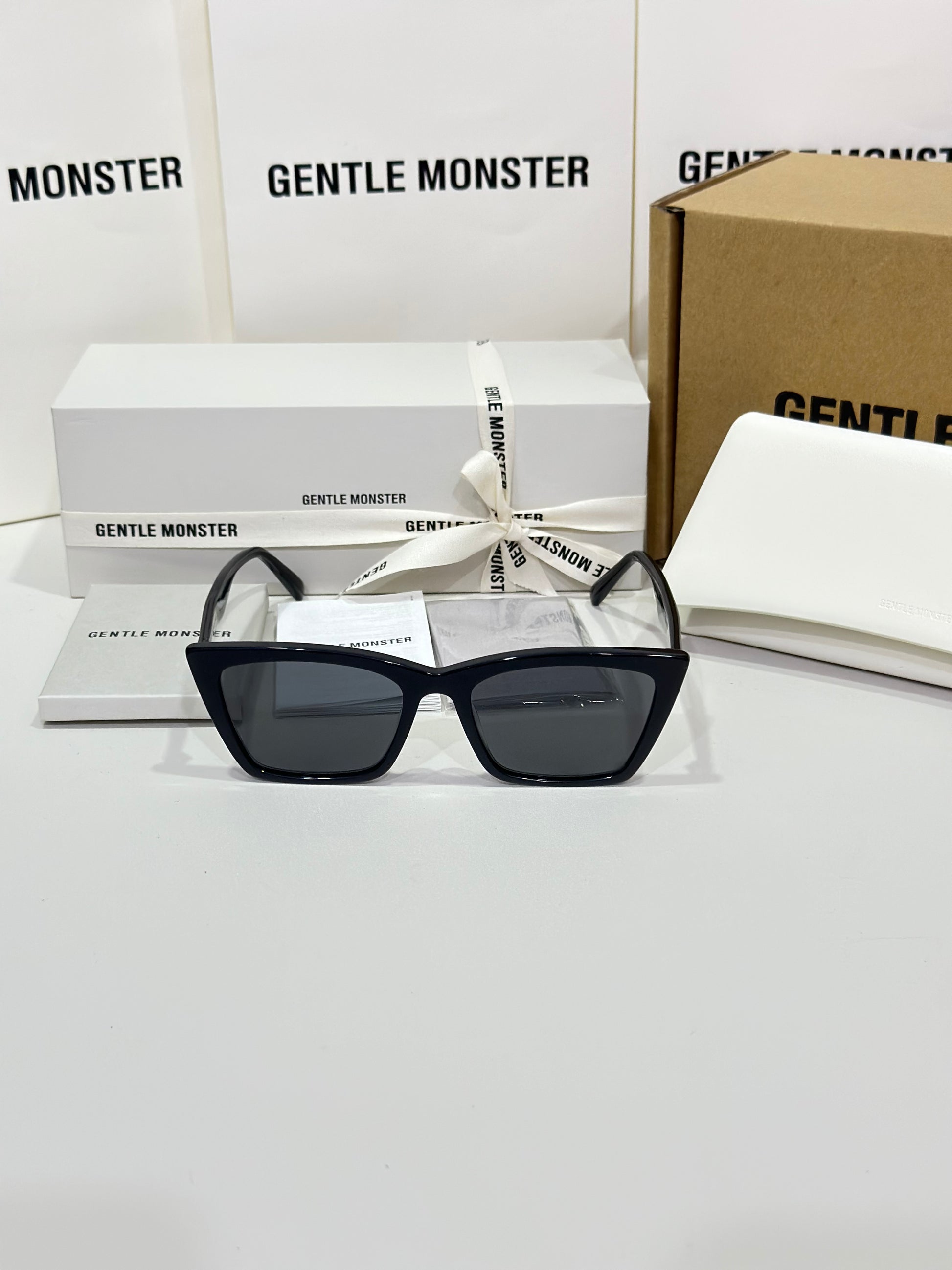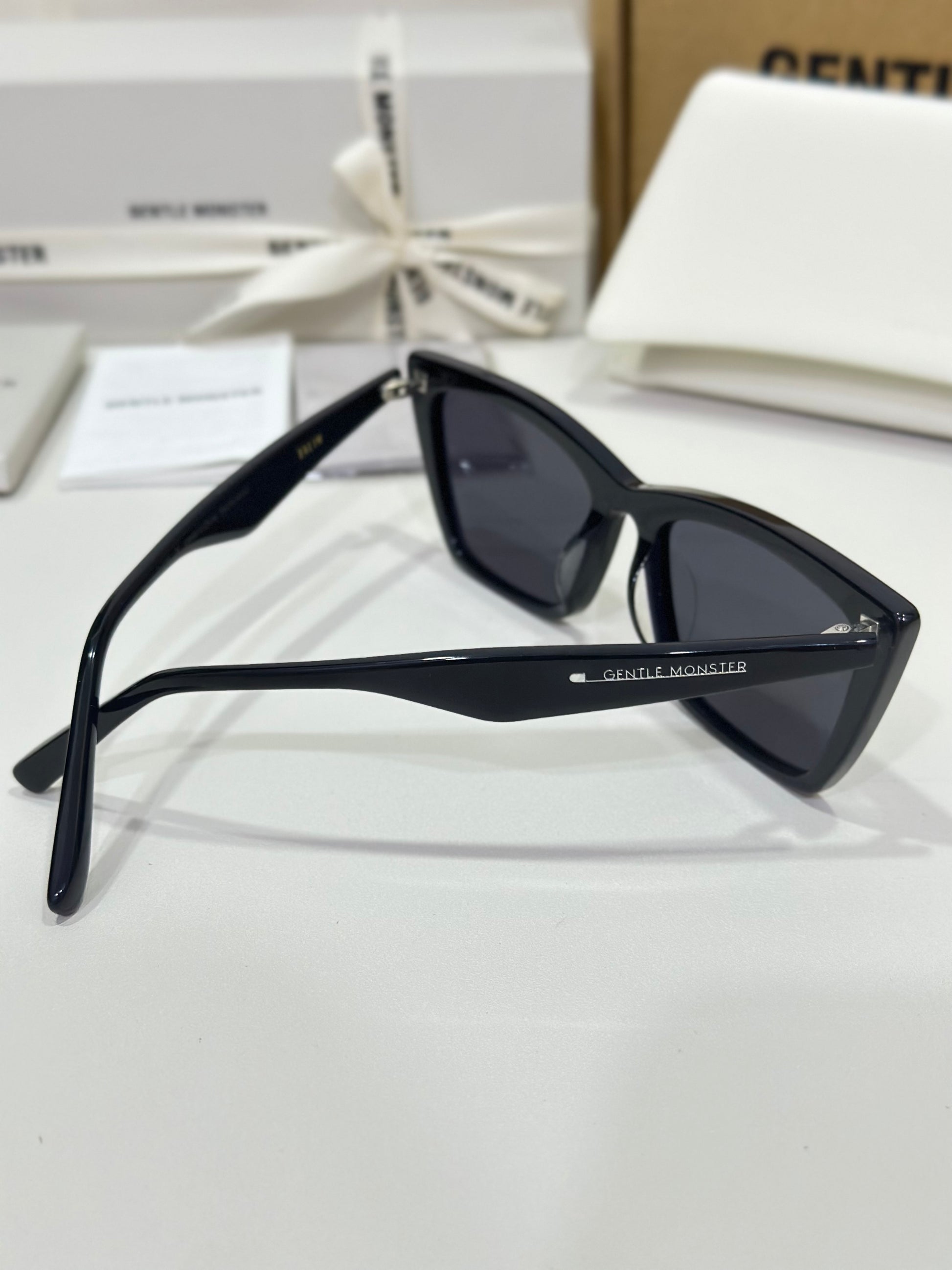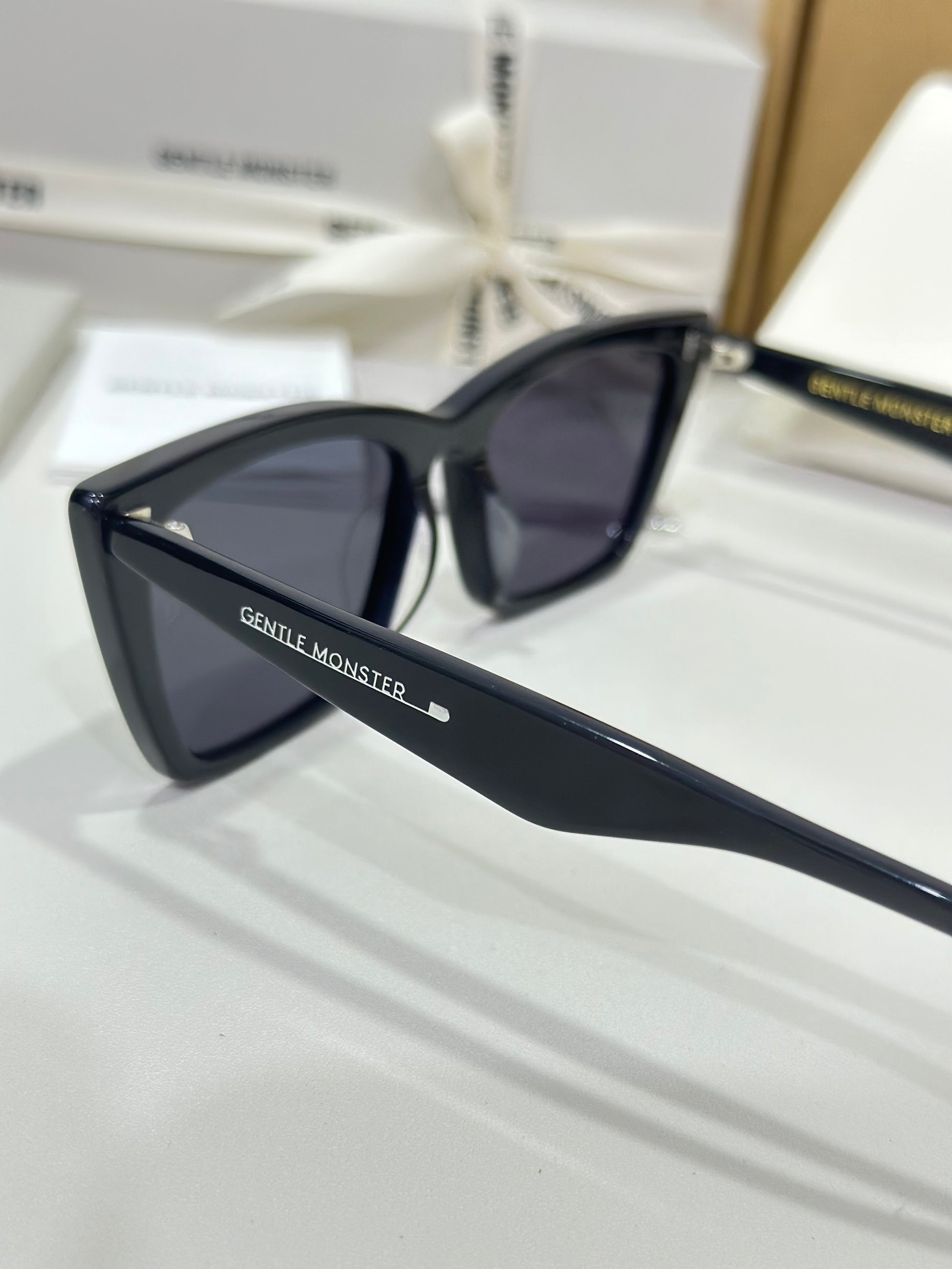 Acetate cat-eye frameLaser engraved logosFrame Front: 148.5mm, Frame Side: 146.6mm