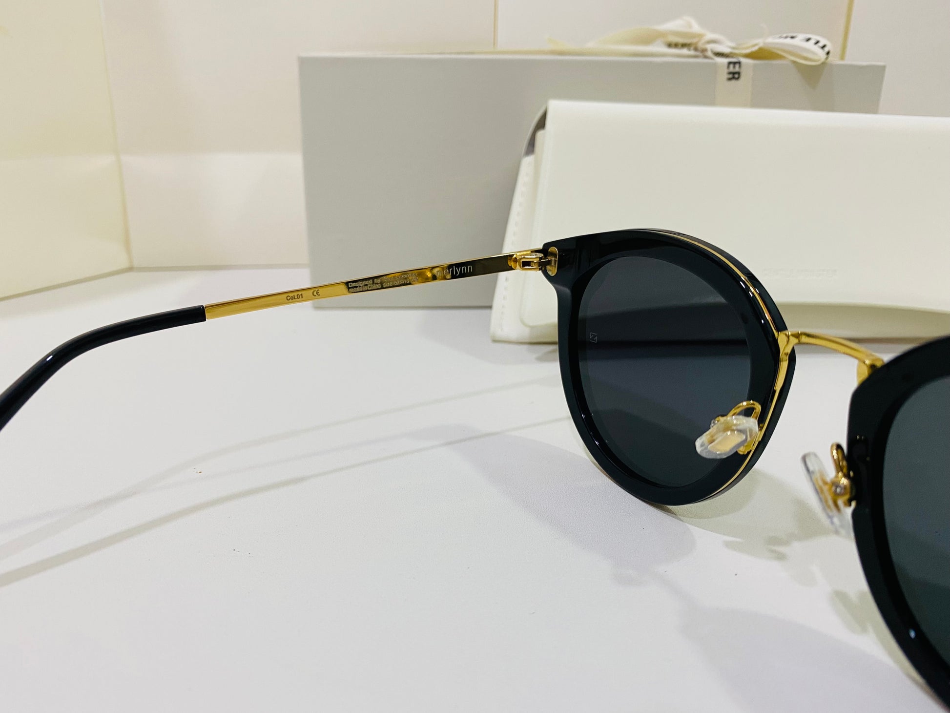 The Merlynn 01 reimagines aspects of our past styles, while falling in line with our FLATBA structural design. This style is composed of a black acetate front and a gold metal nose-bridge with adjustable PVC nose pads. The frame is finished with metal cut-out details at the temple tips and flat black lenses with 99.9% UV Protection.