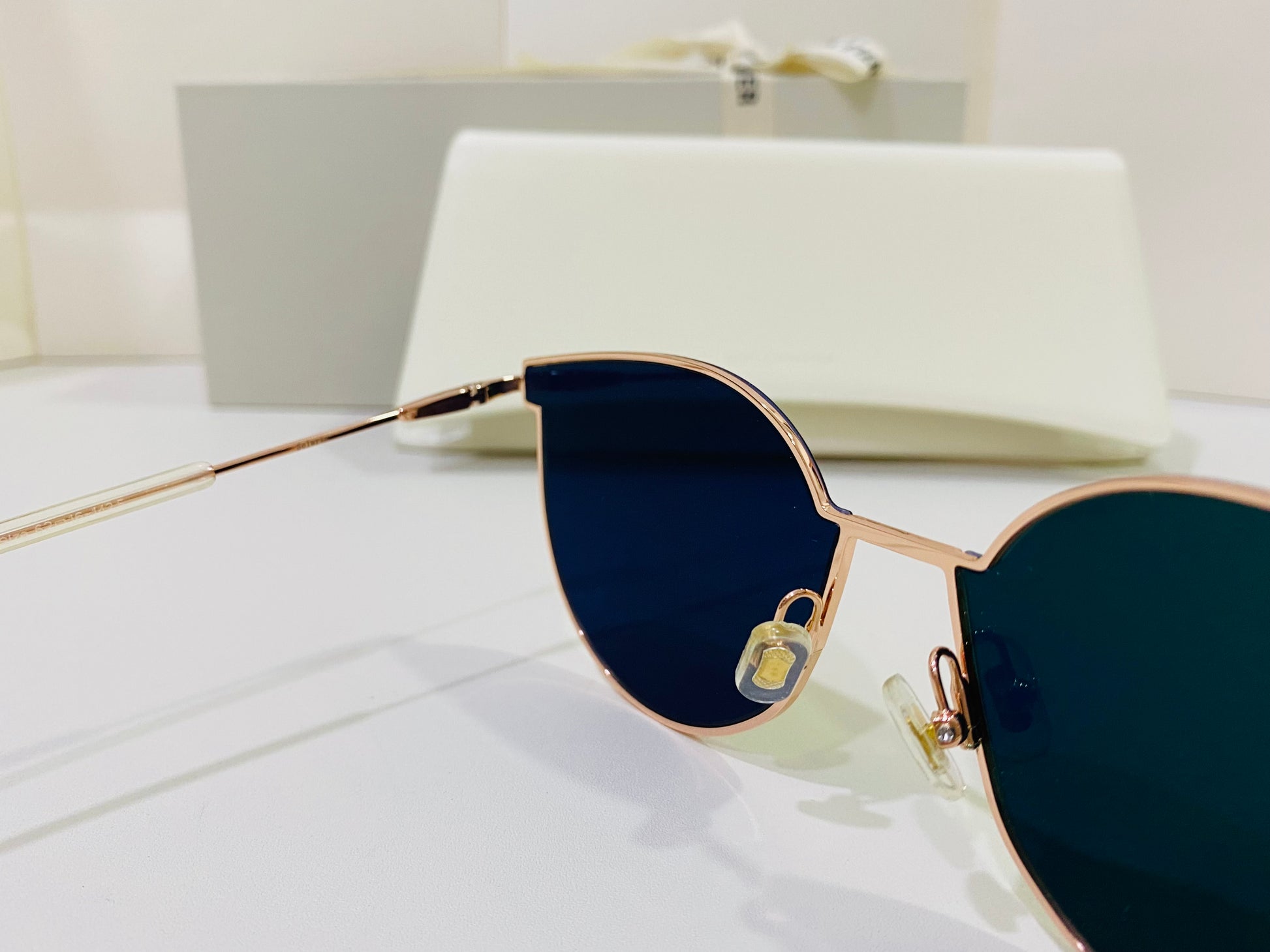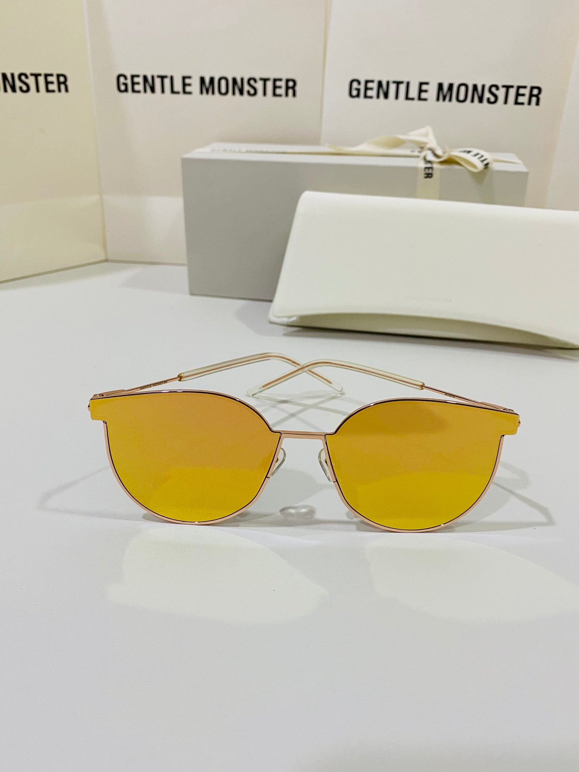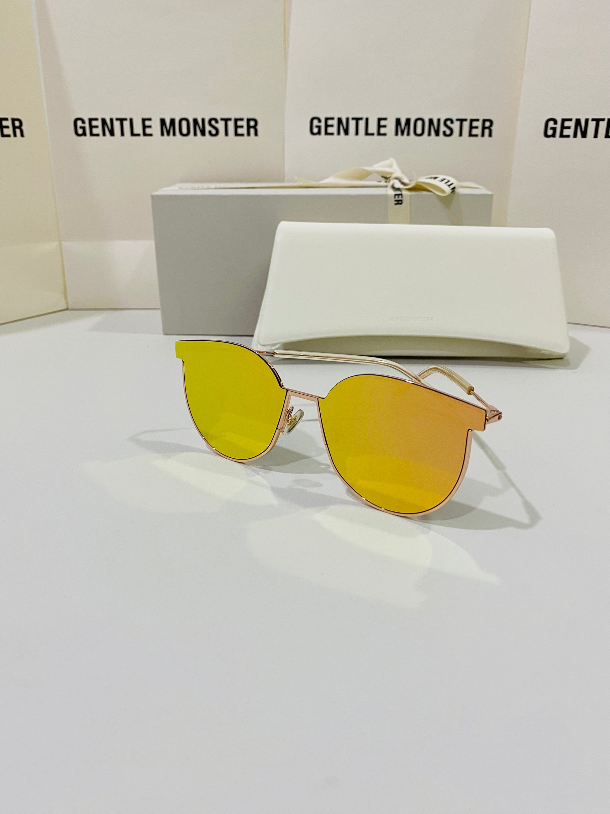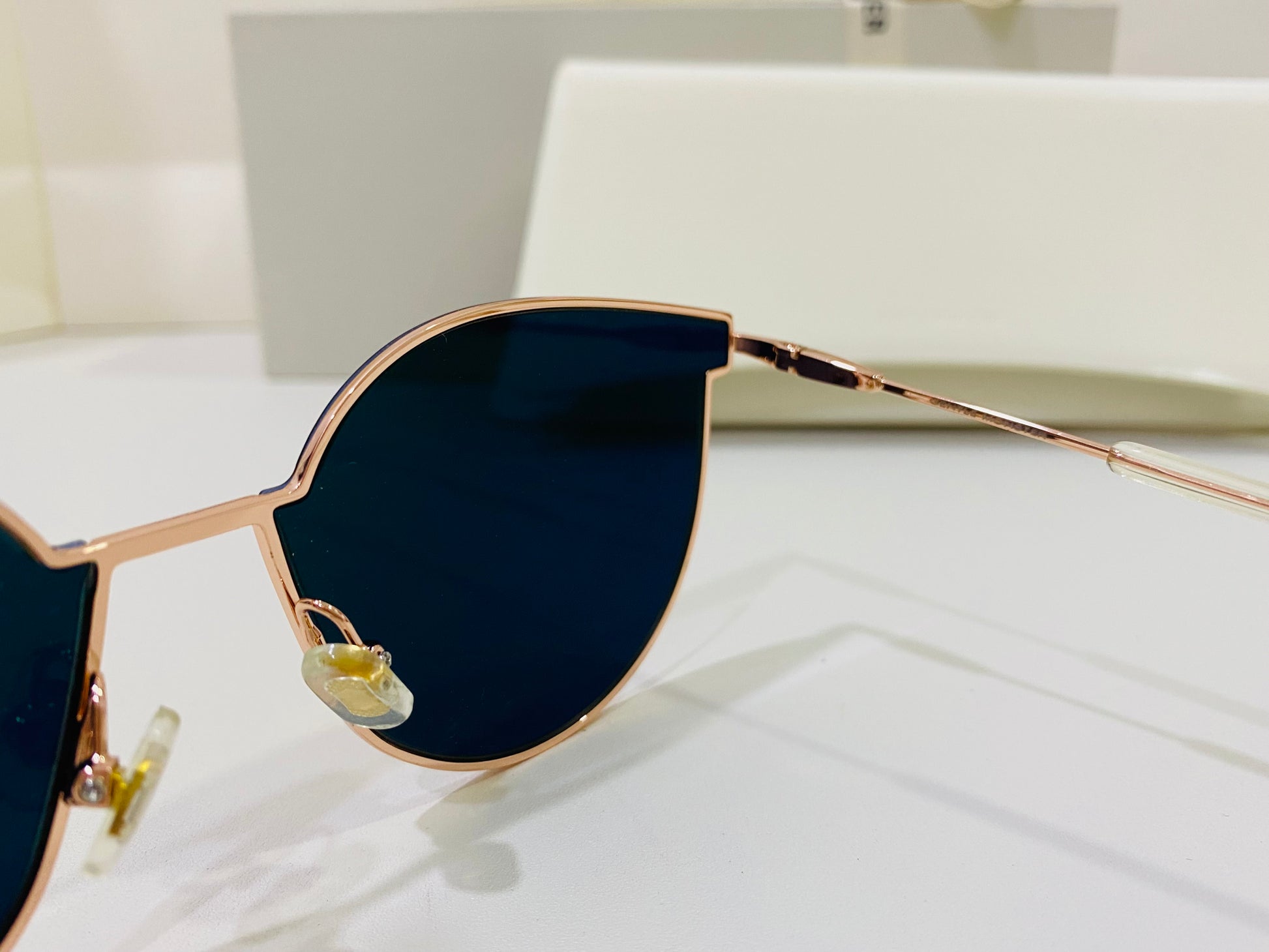 The Solaris 032(14M) is a gold stainless steel frame, featuring monel temples, adjustable PVC nose pads, and acetate temple tips. This style is unique in that only the lower half of the lenses is visibly lined with metal. The frames are complete with flat apricot mirrored lenses that provide 100% UV Protection.