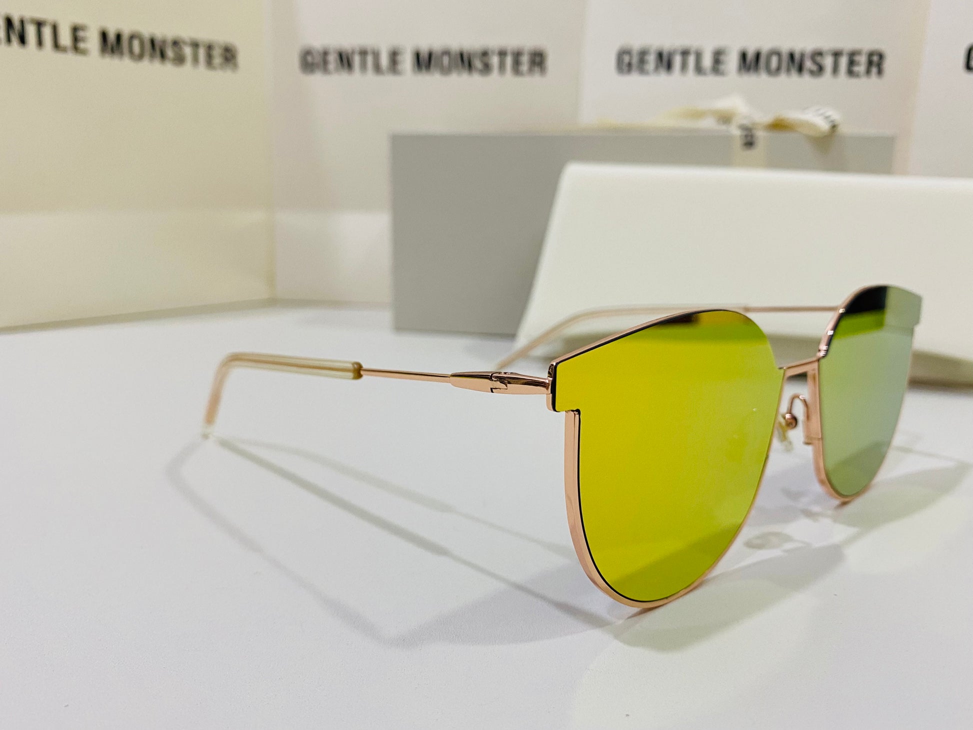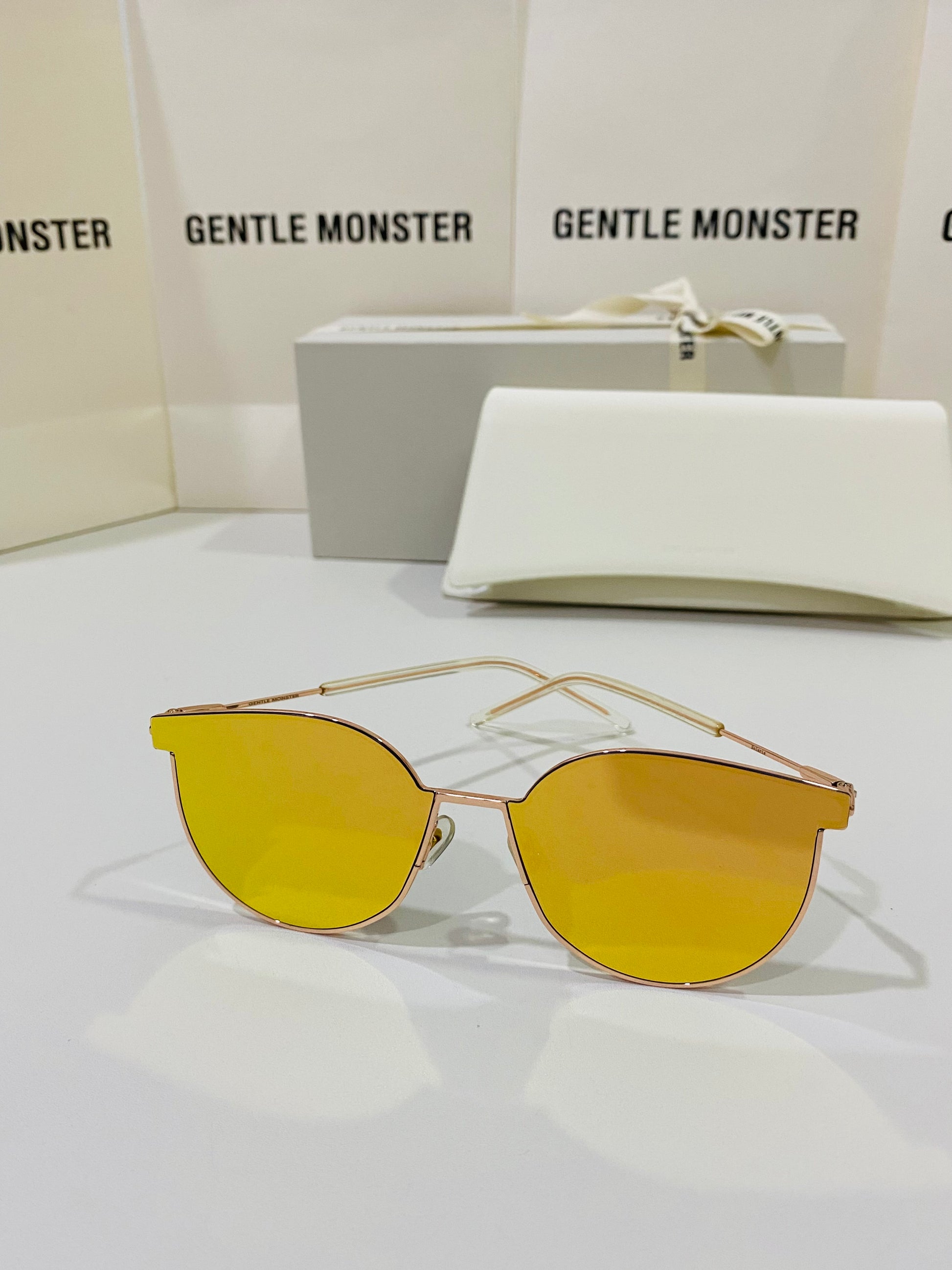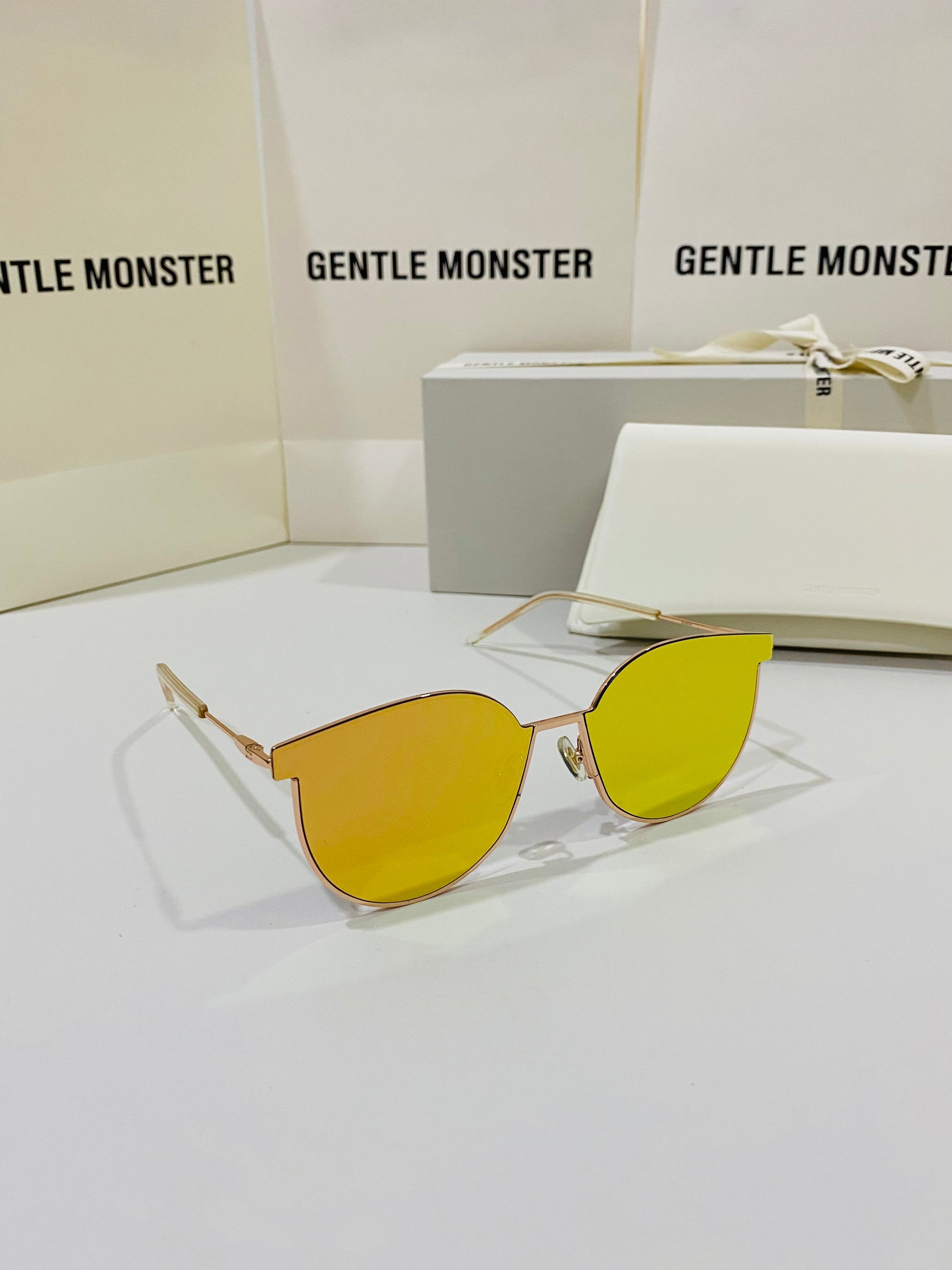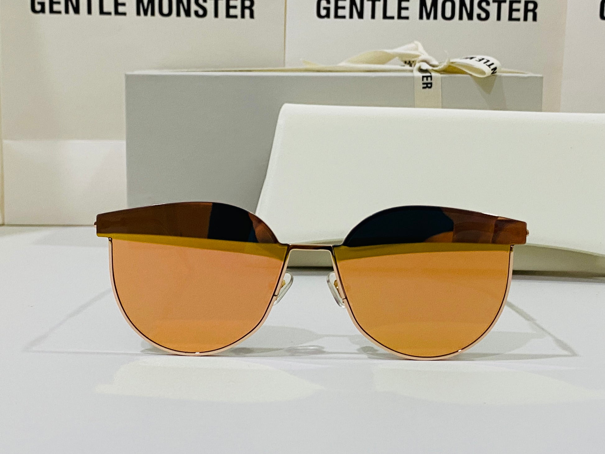 The Solaris 032(14M) is a gold stainless steel frame, featuring monel temples, adjustable PVC nose pads, and acetate temple tips. This style is unique in that only the lower half of the lenses is visibly lined with metal. The frames are complete with flat apricot mirrored lenses that provide 100% UV Protection.