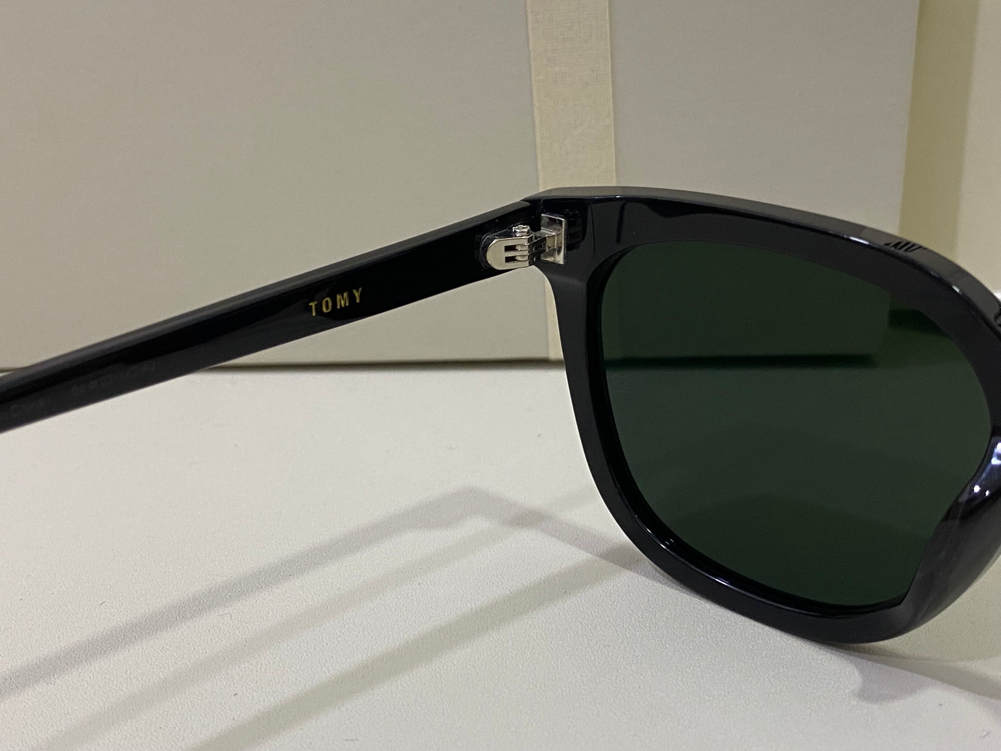 Tomy 01 is a black square acetate frame with 99.9% UV protected black lenses. The rounded edges of the slim silhouetted frame front and thin temples highlight this frame.