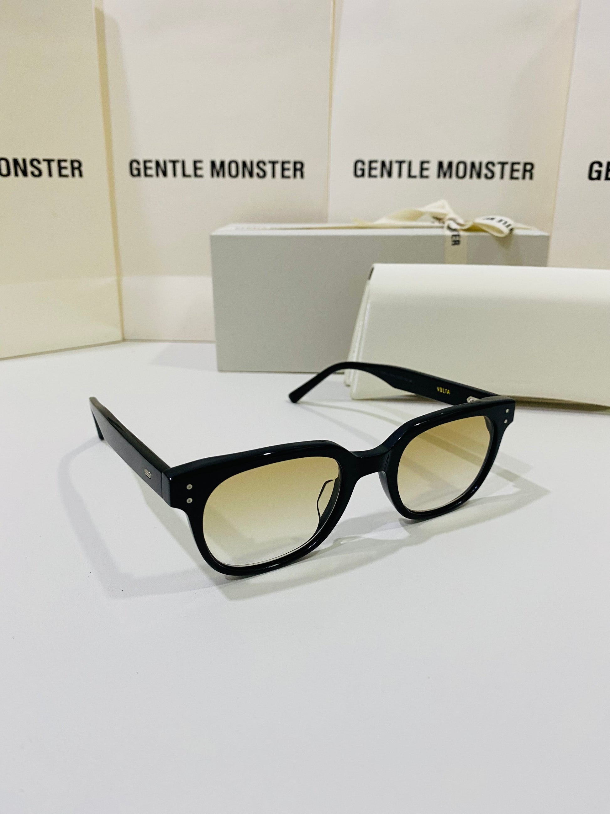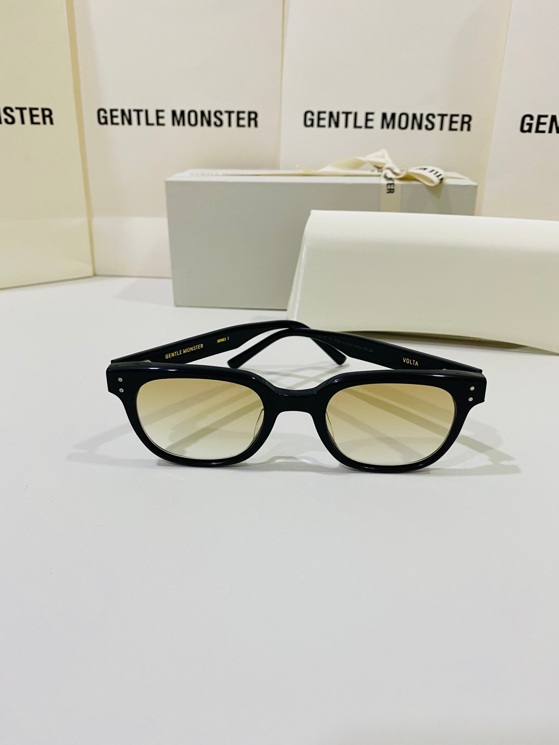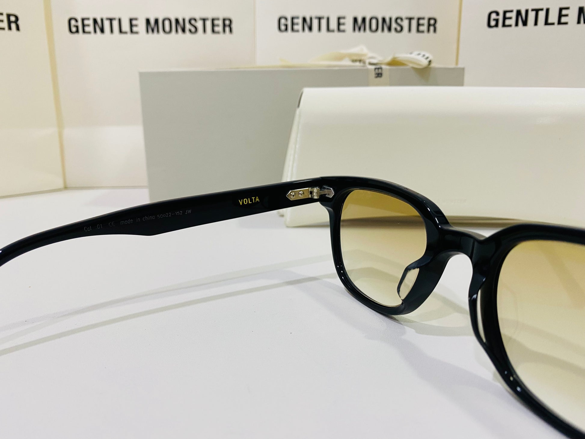 Volta 01(BRG) is a rectangular black acetate frame. Distinguished by the circular studs embellished on the Wellington style inspired front, along with detailed temple tips, this frame is fitted with 99.9% UV protected brown gradient lenses.
