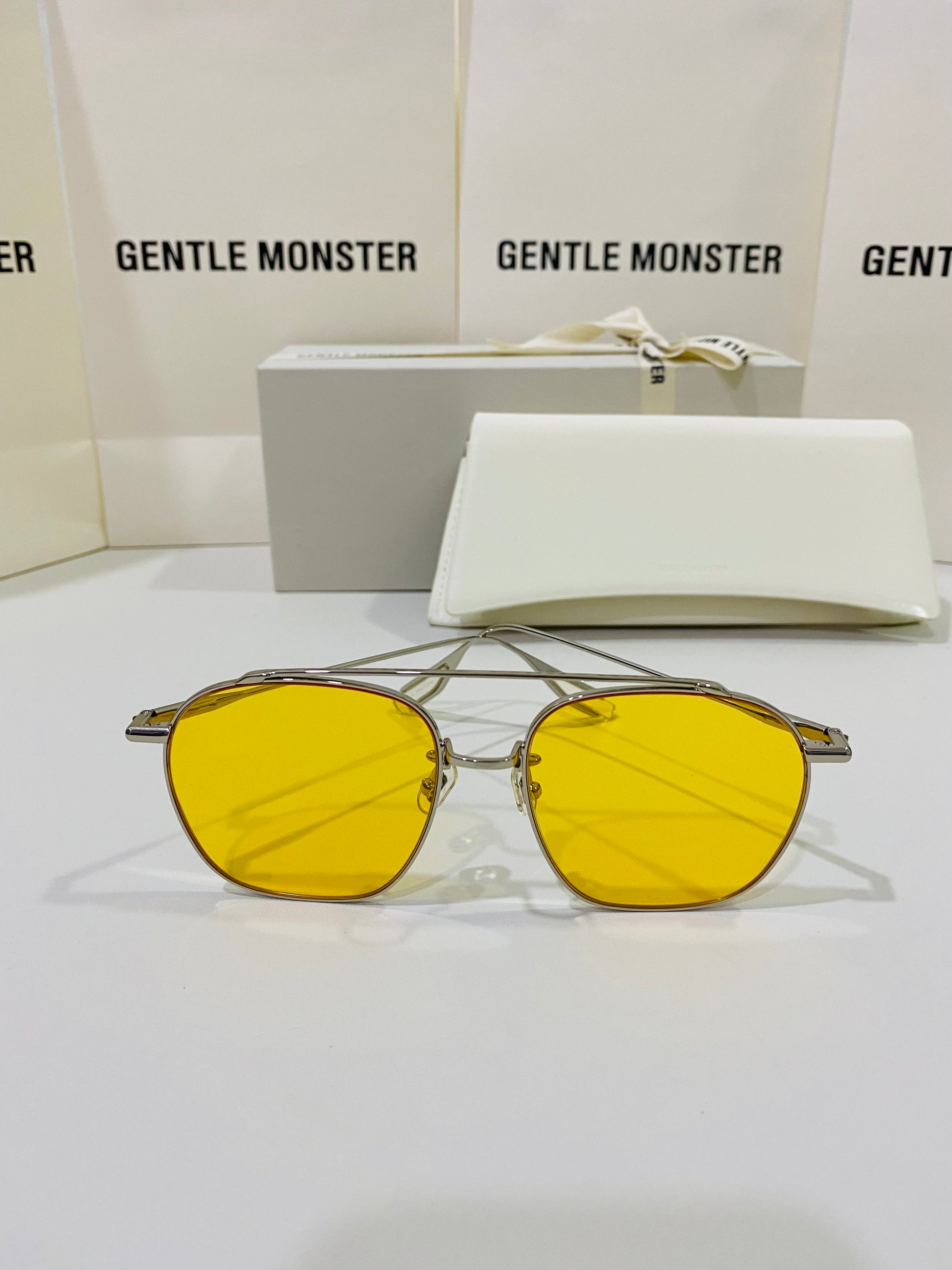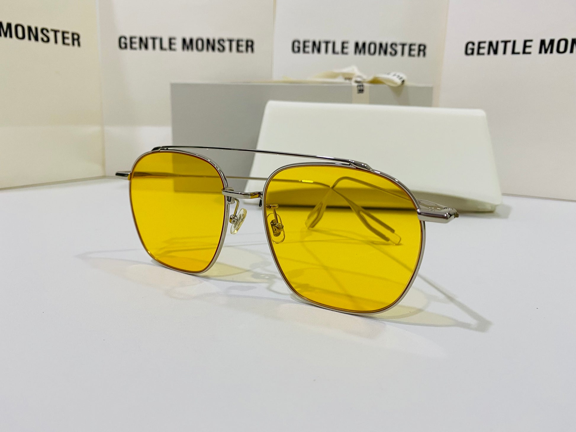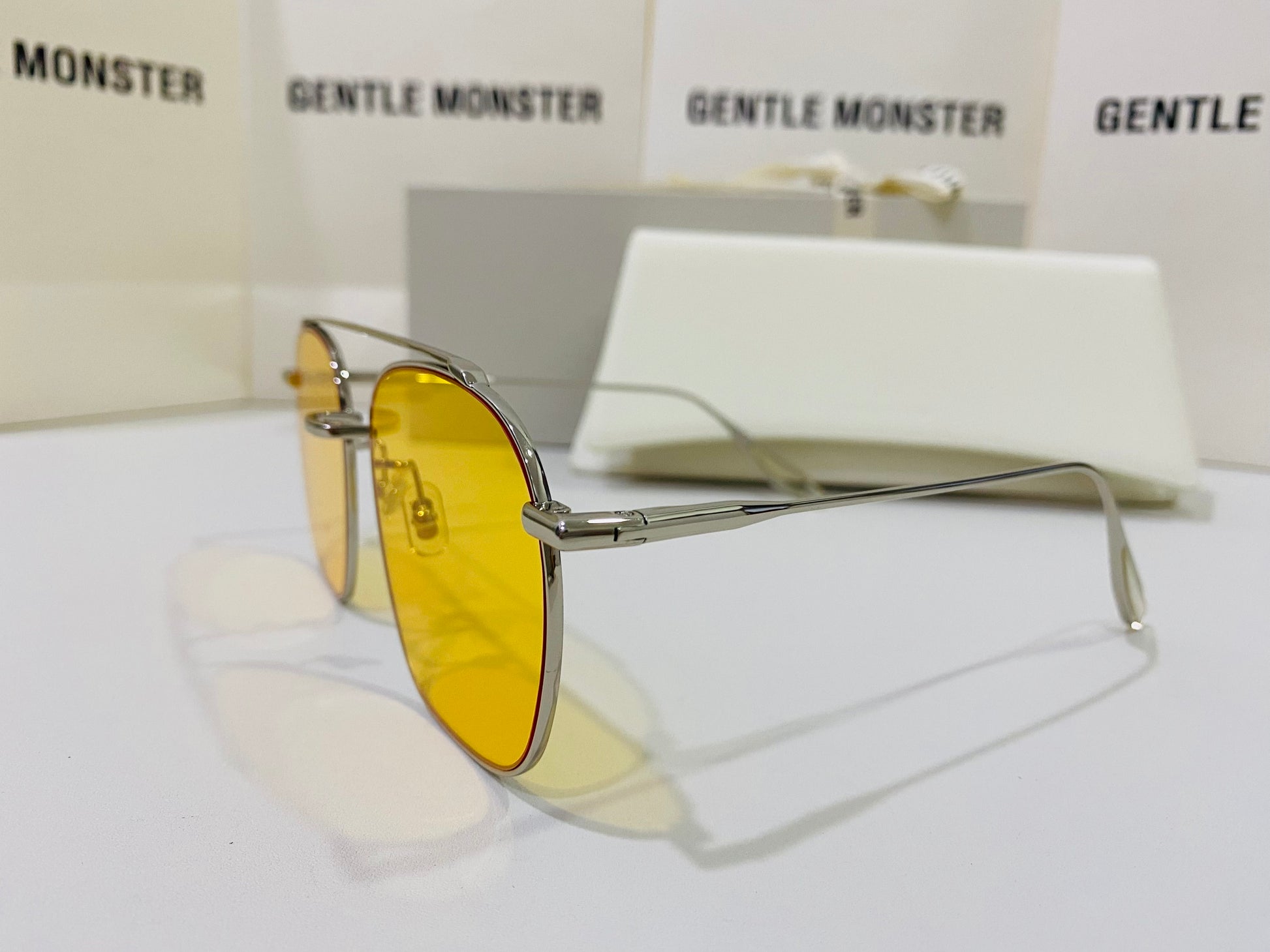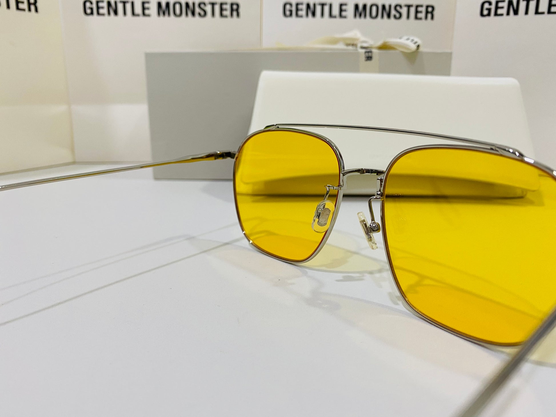 Silver-tone metal Woogie 02 (OR) sunglasses from Gentle Monster featuring oversized frames and yellow tinted lenses.