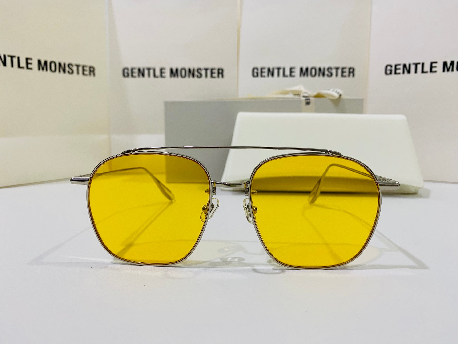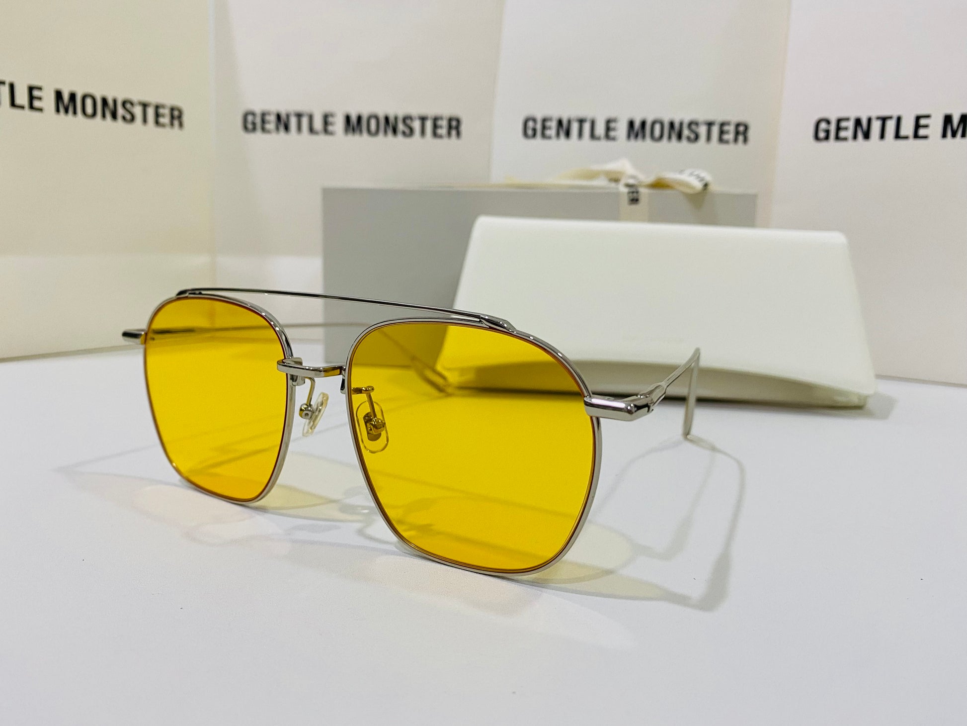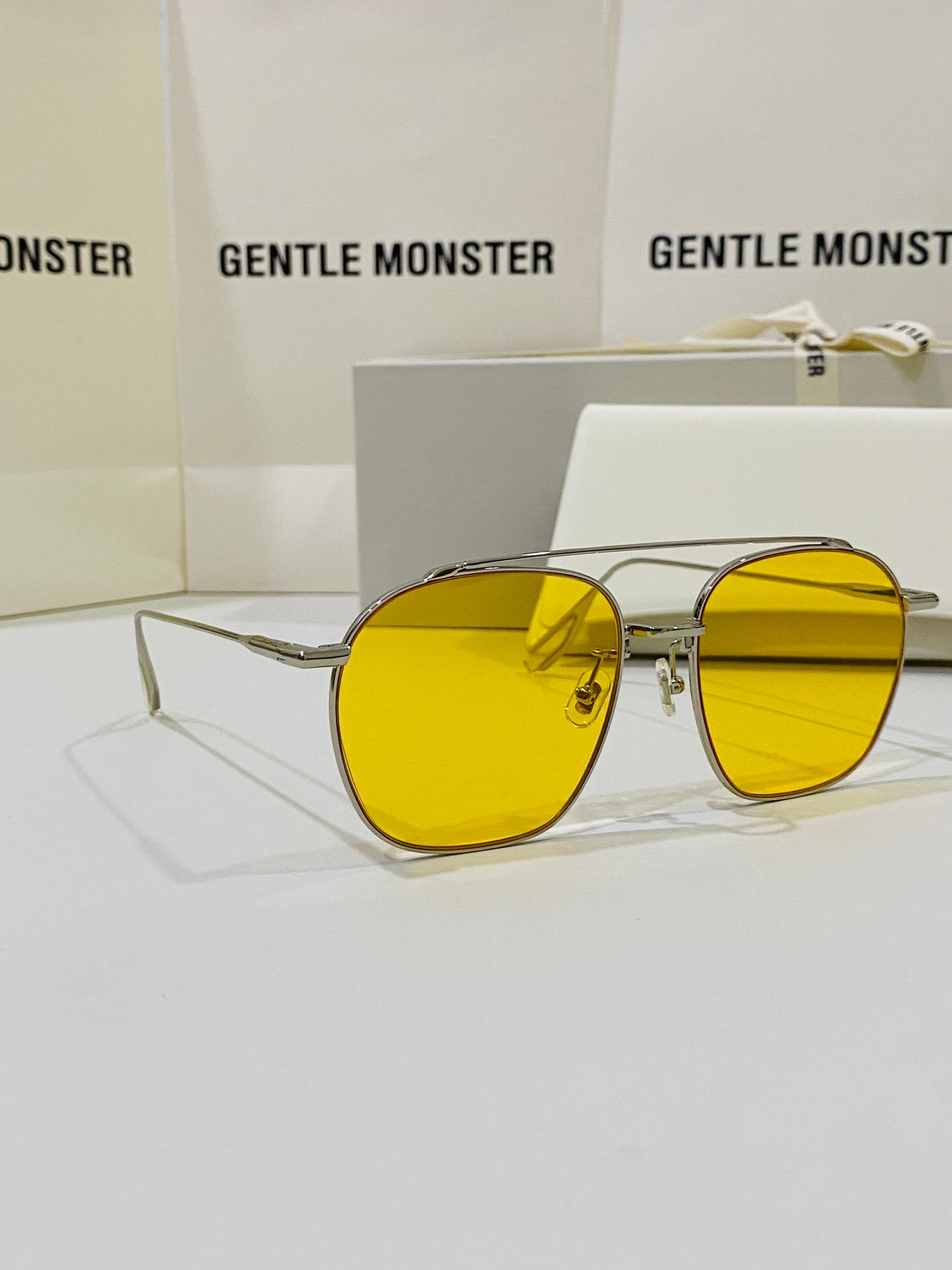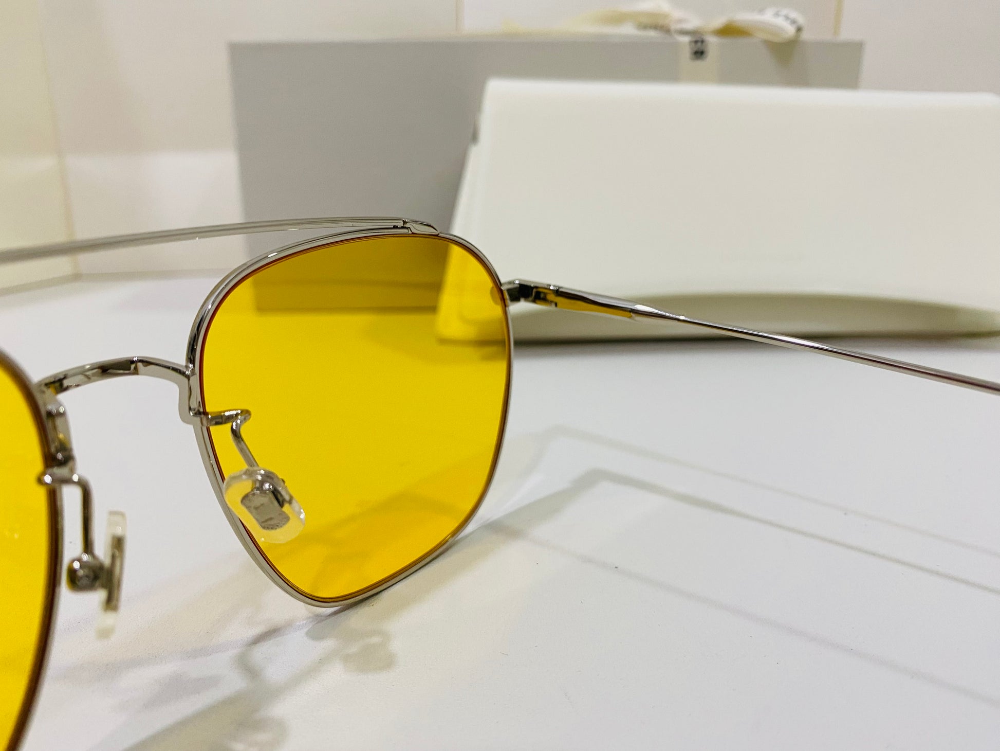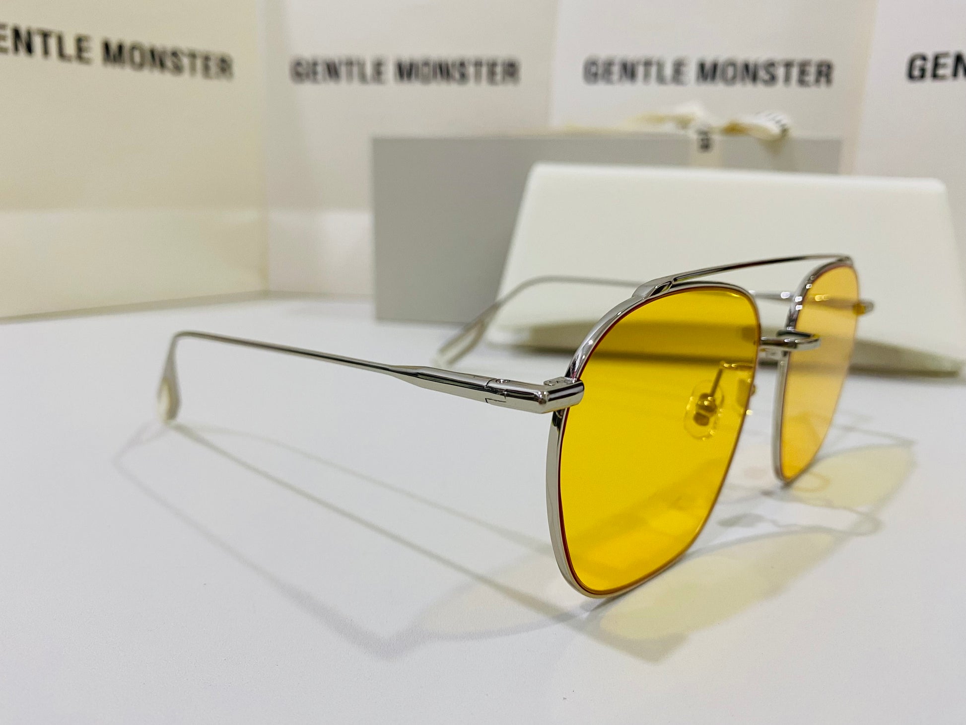 Silver-tone metal Woogie 02 (OR) sunglasses from Gentle Monster featuring oversized frames and yellow tinted lenses.
